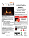 MANUEL D’INSTALLATION, D’UTILISATION ET D’ENTRETIEN Sereno 37 MODÈLE: 37-DVTE36LN-2 AU GAZ À ÉVACUATION DIRECTE N/S 370476 ET SUIVANTS Cet appareil peut être installé dans une maison préfabriquée (É.-U. seulement) ou une maison mobile installée en permanence, là où les codes locaux ne l’interdisent pas. Cet appareil ne doit fonctionner qu’avec le type de gaz spécifié sur la plaque d’homologation et ne peut être converti à un autre gaz, sauf si un kit de conversion certifié est utilisé. AVERTISSEMENT: DANGER D'INCENDIE ET D'EXPLOSION Si ces instructions ne sont pas suivies à la lettre, un incendie ou une explosion peuvent s’ensuivre et causer des dommages matériels, des blessures ou la mort. - N’entreposez pas d’essence ni aucun gaz ou liquide inflammable près de cet appareil ou de tout autre appareil. - QUOI FAIRE SI VOUS SENTEZ DU GAZ : • N’allumez aucun appareil. • Ne touchez à aucun interrupteur électrique; n’utilisez aucun téléphone dans votre bâtiment. • Sortez immédiatement du bâtiment. • Appelez immédiatement votre fournisseur de gaz à partir du téléphone d’un voisin. Suivez les instructions de votre fournisseur de gaz. Si vous ne pouvez pas joindre votre fournisseur de • gaz, appelez les pompiers. - L’installation et l’entretien doivent être faits par un installateur qualifié, une agence d’entretien ou le fournisseur de gaz. English and French Installation Manuals available through your local dealer or visit our website at: www.archgard.com Les manuels d'installation en anglais et en français sont disponibles chez votre détaillant local ou en visitant notre site web: www.archgard.com INSTALLATEUR: LAISSEZ CE MANUEL AVEC L’APPAREIL. PROPRIÉTAIRE: CONSERVEZ CE MANUEL COMME RÉFÉRENCE. ARCHGARD FIREPLACE PRODUCTS 300 Railway Avenue Raymond, AB T0K 2S0 Canada Cote d'efficacité énergétique des foyers à gaz 69,83% Basé sur CSA P.4.1-15 200-0072F-03 07 octobre 2024 TABLE DES MATIÈRES 1.0 Introduction 2.0 Consignes de sécurité 3.0 Informations techniques 3.1 Certification de l’appareil 3.2 Codes d'installation 3.3 Spécifications 3.4 Installations à haute altitude 4.0 Plaque d’homologation 5.0 Liste de vérification d’installation 6.0 Vue d’ensemble de l’appareil 3 4 5 5 5 5 5 6 7 8 8 8 9 11 12 6.1 Vue d’ensemble de l’appareil 6.2 Déballage 6.3 Pare-étincelles (37-BS) 6.4 Installation du cadre vitré 6.5 Accès aux contrôles 6.6 Emplacement de la plaque 13 d'homologation 7.0 Connexions électriques 14 8.0 Dimensions du foyer 15 9.0 Préparation du foyer 16 9.1 Aperçu de l'installation 16 9.2 Installation des brides de clouage 16 10.0 Conduit d’évacuation 19 10.1 Diagramme d’évacuation 21 10.2 Restricteur d'échappement 22 10.3 Composants de cheminée d'autres fabricants 23 10.4 Dégagements des terminaisons 25 10.5 Installation d'une terminaison périscopique 27 11.0 Encadrement dans la charpente 28 11.1 Ouverture brute de l’enceinte murale 28 11.2 Installation en coin typique 29 11.3 Encadrement du conduit d’évacuation 30 12.0 Dégagements des matériaux combustibles 31 12.1 Dégagements du manteau 31 12.2 Dégagements de l'âtre 32 12.3 Dégagements avec les murs latéraux33 12.4 Finition 34 12.5 Installation des façades décoratives 35 13.0 Raccordements de gaz 36 13.1 Vérification du débit calorifique 36 13.2 Alimentation en gaz 37 2 14.0 Instructions du kit de conversion de 38 gaz 14.1 Préparation du foyer 14.2 Conversion de la veilleuse 14.3 Conversion de la valve de gaz 14.4 Pour finaliser la conversion 38 38 39 39 15.0 Installation des panneaux intérieurs du foyer 40 15.1 Installation des panneaux de brique 40 15.2 Installation des panneaux en verre réfléchissant 42 16.0 Installation des jeux de bûches 44 16.1 Jeu de bûches - «Grand Timber» 45 16.2 Jeu de bûches - «Weathered Wood» 48 17.0 Utilisation 52 17.1 Avant d'allumer 52 17.2 Premier feu 52 17.3 Instructions d'allumage 53 17.4 Système d’allumage dynamique (Dynamic Start Advantage) 54 17.5 Utilisation de la télécommande 55 18.0 Entretien 62 18.1 Nettoyage et entretien périodique 62 18.2 Entretien sous garantie 63 18.3 Vérification des pressions de gaz (à l’entrée et à la sortie) 63 18.4 Vérification et réglage de la veilleuse 63 18.5 Réglage de l’air primaire 64 18.6 Remplacement des piles 65 18.7 Remplacement du fusible 65 18.8 Remplacement des ampoules 66 18.9 Remplacement du panneau de contrôle 67 18.10 Schéma de câblage 68 18.11 Retrait de la plaque de masquage 69 18.12 Retrait du contour du brûleur 70 18.13 Remplacement du brûleur 71 18.14 Remplacement du ventilateur 71 18.15 Remplacement de la veilleuse 72 18.16 Remplacement des bases de lampe73 18.17 Dépannage 74 19.0 Foire aux questions 75 20.0 Liste des pièces de rechange 76 Informations générales 1.0 Introduction Félicitations pour votre achat d’un foyer à gaz Archgard ! Sereno (Se-RE-no) - La maîtrise du feu est l'une des grandes réalisations de l'humanité, fournissant chaleur, lumière, protection et alimentation améliorée. Depuis l'aube du genre humain, nous sommes attirés par le feu et le confort que le feu procure. Nous permettons à la chaleur du feu de nous envelopper tandis que nous regardons dans les flammes dansantes, et permettons à nos soucis de se dissiper. Ce qui reste, c'est «sereno», le serein. Le Sereno 37 est l'un des appareils de chauffage à évacuation directe les plus avancés disponibles aujourd'hui. Il est solidement conçu en utilisant les dernières technologies et fabriqué à la plus haute qualité. Notre objectif est de vous fournir un appareil qui apporte de nombreuses années de service fiable sans problème. Ce manuel fournit des informations sur le numéro de modèle 37-DVTE36LN-2. Voici quelques-unes des caractéristiques de votre foyer 37-DVTE36LN-2 : • Classe d’appareil Ce foyer est classé comme appareil de chauffage, donc sa technologie à évacuation direc