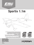 Sportix 1.1m Scan the QR code and select the Manuals and Support quick links from the product page for the most up-to-date manual information. Scannen Sie den QR-Code und wählen Sie auf der Produktseite die Quicklinks Handbücher und Unterstützung, um die aktuellsten Informationen zu Handbücher. Scannez le code QR et sélectionnez les liens rapides Manuals and Support sur la page du produit pour obtenir les informations les plus récentes sur le manuel. Scannerizzare il codice QR e selezionare i Link veloci Manuali e Supporto dalla pagina del prodotto per le informazioni manuali più aggiornate. Instruction Manual Bedienungsanleitung Manuel d’utilisation Manuale di Istruzioni 460868 Created 8/24 EFL10750 EFL10775 FR REMARQUE La totalité des instructions, garanties et autres documents est sujette à modification à la seule discrétion d’Horizon Hobby, LLC. Pour obtenir la documentation à jour de ce produit, veuillez consulter le site www.horizonhobby.com ou towerhobbies.com et cliquez sur l’onglet de support du produit. SIGNIFICATION DE CERTAINS TERMES SPÉCIFIQUES Les termes suivants sont utilisés dans l’ensemble du manuel pour indiquer différents niveaux de danger lors de l’utilisation de ce produit: AVERTISSEMENT: Procédures qui, si elles ne sont pas suivies correctement, peuvent entraîner des dégâts matériels, des dommages collatéraux et des blessures graves OU engendrer une probabilité élevée de blessure superficielle. ATTENTION: Procédures qui, si elles ne sont pas suivies correctement, peuvent entraîner des dégâts matériels ET des blessures graves. REMARQUE: Procédures qui, si elles ne sont pas suivies correctement, peuvent entraîner des dégâts matériels ET potentiellement un risque faible de blessures. AVERTISSEMENT: Lisez la TOTALITE du manuel d’utilisation afin de vous familiariser avec les caractéristiques du produit avant de le faire fonctionner. Une utilisation incorrecte du produit peut entraîner l’endommagement du produit lui-même, ainsi que des risques de dégâts matériels, voire de blessures graves. Ceci est un produit de loisirs perfectionné. Il doit être manipulé avec prudence et bon sens et requiert quelques aptitudes de base en mécanique. Toute utilisation de ce produit ne respectant pas les principes de sécurité et de responsabilité peut entraîner des dégâts matériels, endommager le produit et provoquer des blessures. Ce produit n’est pas destiné à être utilisé par des enfants sans la surveillance directe d’un adulte. N’essayez pas de démonter le produit, de l’utiliser avec des composants plus. Ceci pas un jouet. incompatibles14 ouans d’enetaméliorer lesn’est performances sans l’accord d’Horizon Hobby, LLC. Ce manuel comporte des instructions relatives à la sécurité, au fonctionnement et à l’entretien. Il est capital de lire et de respecter toutes les instructions et avertissements du manuel avant l’assemblage, le réglage ou l’utilisation afin de le manipuler correctement et d’éviter les dommages ou les blessures graves. 14+ 14 ans et plus. Ceci n’est pas un jouet. Précautions et avertissements liés à la sécurité En tant qu’utilisateur de ce produit, il est de votre seule responsabilité de le faire fonctionner d’une manière qui ne mette en danger ni votre personne, ni de tiers et qui ne provoque pas de dommages au produit lui-même ou à la propriété d’autrui. • Gardez une bonne distance de sécurité tout autour de votre modèle, afin d’éviter • Ne faites jamais fonctionner votre modèle lorsque les batteries de l’émetteur les collisions ou les blessures. Ce modèle est contrôlé par un signal radio, qui peut sont faibles. être soumis à des interférences provenant de nombreuses sources hors de votre • Gardez toujours le modèle à vue et gardez-en toujours le contrôle. contrôle. Une interférence peut provoquer une perte momentanée de contrôle. • Utilisez toujours des batteries complètement chargées. • Faites toujours fonctionner votre modèle dans une zone dégagée, à l’écart de • Gardez toujours l’émetteur sous tension lorsque le modèle est en marche. voitures, du trafic et des personnes. • Enlevez toujours les batteries avant le démontage. • Respectez toujours scrupuleusement les instructions et les mises en garde • Veillez toujours à ce que les pièces en mouvement soient propres. concernant ce produit et tous les équipements optionnels/complémentaires • Veillez toujours à ce que toutes les pièces soient sèches. (chargeurs, batteries rechargeables, etc.) que vous utilisez. • Laissez toujours le temps aux pièces de refroidir avant de les toucher. • Tenez tous les produits chimiques, les petites pièces et les composants • Enlevez toujours les batteries après utilisation. électroniques hors de portée des enfants. • Assurez-vous toujours que la sécurité (failsafe) est configurée correctement • Évitez toujours d’exposer à l’eau tout équipement non spécifiquement conçu et avant de voler. protégé à cet effet. L’humidité endommage les composants électroniques. • Ne faites jamais voler un modèle dont le câblage est endommagé. • Ne léchez et ne mettez jamais en bouche quelque partie de votre modèle que ce • Ne touchez jamais des pièces en mouvement. soit - risque de blessures graves voire danger de mort. AVERTISSEMENT CONTRE LES PRODUITS CONTREFAITS: Si un jour vous aviez besoin de remplacer un récepteur Spektrum équipant un produit Horizon Hobby, achetez-le uniquement chez Horizon Hobby, LLC ou chez un revendeur officiel Horizon Hobby, vous serez sûr d’obtenir un produit Spektrum authentique de haute qualité. Horizon Hobby, LLC décline tout service et garantie concernant la compatibilité et les performances des produits contrefaits ou des produits clamant la compatibilité avec la technologie Spektrum ou le DSM. 45 FR Enregistrement Enregistrez votre produit 