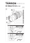 TLM-A058-FR-C/T-2309-02 Model: A058 Owner’s manual 35-150mm F/2-2.8 Di III VXD 14 9 8 13 11 15 12 10 7 6 5 1 Zooming Focusing 3 4 2 Sony 12 11 15 16 16 17 16 17 Nikon 12 For Sony E For Nikon Z 11 15 3 6 6 4 * The Marking is a directive conformity mark of the European Community (EC). * Das -Zeichen entspricht der EC Norm. * La marquage est un marquage de conformité à la direcive CEE (CE). * La marca es marca de conformidad segun directiva de la Comunidad Europea (CE). * Il marchio attesta la conformita alla directtiva della Comunità Europea (CEE). * 标志表示符合欧州共同体 (EC) 指标 The EEC Conformity Report applies to the Council Directive 2014/30/EU, 2011/65/EU and is used by Tamron Co., Ltd., manufacturer of this product. FRANÇAIS Nous vous remercions d’avoir acheté cet objectif Tamron. Avant d’utiliser votre nouvel objectif, veuillez lire attentivement ce mode d’emploi pour vous familiariser avec son utilisation. De plus, il est important de lire le manuel de l’appareil photo auquel vous allez fixer l’objectif. Après avoir lu ce mode d’emploi, rangez-le dans un endroit sûr. Veuillez également lire le document « Précautions pour une utilisation en toute sécurité des objectifs Tamron » fourni avec cet objectif pour connaître les précautions de sécurité détaillées à observer lors de l’utilisation des objectifs Tamron. • Ce symbole indique les précautions à prendre pour éviter des problèmes. • Ce symbole indique des informations à connaître en complément des opérations de base. NOMENCLATURE DES PIÈCES (Voir fig. 1) ① Pare-soleil d’objectif ③ Repère d’alignement du pare-soleil ⑤ Bague de filtre ⑦ Bague de mise au point* ⑨ Repère de distance focale ⑪ Commutateur AF/MF ⑬ Bague de zoom ⑮ Port de connexion ⑰ Contacts d’interface entre l’objectif et l’appareil photo * Correspond à la bague de contrôle sur les montures Nikon Z. ② Bouton de déverrouillage de pare-soleil de l’objectif ④ Repère de verrouillage du pare-soleil ⑥ Repère de déblocage du pare-soleil ⑧ Échelle de distance focale ⑩ Bouton de réglage de la mise au point ⑫ Commutateur personnalisé ⑭ Commutateur de verrouillage de zoom ⑯ Repère de fixation d’objectif SPÉCIFICATIONS PRINCIPALES Modèle Distance focale Ouverture maximale Angle de vue (diagonal) Construction optique Distance focale minimale Rapport de grossissement maximal Taille de filtre Longueur Diamètre maximal Poids Pare-soleil d’objectif Connecteur type A058 35 - 150 mm F/2-2,8 63°26' - 16°25' 15/21 0,33 m (objectif grand angle) / 0,85 m (objectif télescopique) 1:5,7 (Distance focale minimale en utilisant un objectif grand angle) 1:5,9 (Distance focale minimale en utilisant un objectif télescopique) ø 82 mm 158 mm / Sony E, 160,1 mm / Nikon Z ø 89,2 mm 1 165 g / Sony E, 1 190 g / Nikon Z HA058 USB Type-C • Longueur : distance de l’extrémité avant de l’objectif à la surface de la monture. • Les caractéristiques, l’apparence, les fonctions, etc., sont sujettes à modifications sans préavis. FIXATION ET RETRAIT DE L’OBJECTIF Retirez le cache arrière de l’objectif. Alignez le repère de fixation d’objectif ⑯ et le repère de montage sur l’appareil photo, puis insérez l’objectif. Tournez l’objectif dans le sens horaire pour les montures Sony E ou dans le sens antihoraire pour les montures Nikon Z jusqu’à ce qu’il se verrouille. Pour retirer l’objectif, tournez l’objectif dans le sens opposé tout en appuyant sur le bouton de déblocage sur l’appareil photo. • Éteignez l’appareil photo avant de fixer ou de retirer l’objectif. • Pour les détails, veuillez lire le manuel d’instructions de votre appareil photo. COMMUTATION AU MODE DE MISE AU POINT (Voir. fig. 1, 2) Commutateur AF/MF (Voir fig. 1, 2) Pour la prise de vue en mise au point automatique (AF), réglez l’appareil photo et le commutateur AF/MF ⑪ de l’objectif sur « AF ». (Voir fig. 2) (Si l’objectif est réglé sur « MF », la mise au point ne sera pas automatique.) Pour la prise de vue en mise au point manuelle (MF), réglez l’appareil photo et/ou le commutateur AF/MF ⑪ sur « MF ». Pour effectuer une mise au point manuelle, tournez la bague de mise au point ⑦ afin d’obtenir la mise au point. (Voir fig. 1, 2) • En mode AF, la mise au point automatique peut avoir des difficultés de fonctionnement selon le sujet. • Pour Sony E, si votre appareil photo est équipé d’un bouton de commande AF/MF, il est possible de passer temporairement au mode MF depuis le mode AF, en appuyant sur le bouton de commande AF/MF. Lorsque l’objectif est réglé sur « AF » et que l’appareil est réglé sur « MF », en appuyant sur le bouton de commande AF/MF, vous pouvez passer temporairement la mise au point sur AF. • Pour Nikon Z, vous pouvez attribuer des fonctions de l’appareil photo à la bague de mise au point ⑦ (sous Mode de mise au point/AF). • Pour les détails, veuillez lire le manuel d’instructions de votre appareil photo. BOUTON DE RÉGLAGE DE LA MISE AU POINT (Voir fig. 1) Appuyez sur le bouton de réglage de la mise au point ⑩ pour utiliser la fonction qui a été attribuée par l’appareil photo. Consultez le manuel de l’appareil photo pour plus de détails. PORT DE CONNEXION (Voir fig. 1) Les objectifs avec le port de connexion ⑮ peuvent être connectés à un ordinateur en utilisant le câble de connexion TAMRON (vendu séparément). Puis en utilisant l’application « TAMRON Lens Utility TM » dédiée, vous pourrez mettre à jour le micrologiciel et enregistrer les fonctions sur le commutateur personnalisé ⑫. Consultez l’aide en ligne de « TAMRON Lens Utility » en utilisant le lien ci-dessous pour plus de détails. https://www.tamron.com/jp/consumer/support/help/lensutility/fr/ • N’utilisez pas le câble de connexion TAMRON (vendu séparément) à d’autres fins que la connexion de l