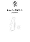 Pure C&G BCT IX Guide d’utilisation Sommaire Bienvenue 4 Vos aides auditives Type d’aide auditive Mieux connaître vos aides auditives Composants Boutons de commande Programmes d’écoute Fonctionnalités 5 5 6 7 9 10 10 Manipulation de vos aides auditives Mise en place et retrait de vos aides auditives Mise sous et hors tension Passage en mode veille Réglage du volume Changement de programme d’écoute Autres réglages (en option) Charge 11 12 17 19 20 21 21 22 Situations d'écoute particulières Au téléphone Diffusion audio Mode Bluetooth Boucles d'induction audio 25 25 26 26 27 2 Maintenance et entretien Aides auditives Embouts Maintenance effectuée par un professionnel 28 28 30 32 Consignes de sécurité importantes 33 Autres informations Accessoires Conditions d’utilisation, de transport et de stockage Informations relatives à la mise au rebut Symboles utilisés dans ce document Dépannage pour l’aide auditive Informations spécifiques au pays Entretien et garantie 36 36 36 38 38 38 40 43 3 Bienvenue Merci d’avoir choisi nos aides auditives pour vous accompagner dans votre vie quotidienne. Comme avec toute chose nouvelle, il vous faudra un peu de temps pour vous y habituer. Ce guide, ainsi que l’assistance fournie par votre audioprothésiste, vous aideront à comprendre les avantages et la meilleure qualité de vie offerts par vos aides auditives. Pour profiter au maximum de vos aides auditives, il est recommandé de les porter tous les jours, toute la journée. Cela vous aidera à vous y habituer. L’appareil peut ne pas ressembler exactement aux illustrations de ces instructions. Nous nous réservons le droit d’apporter toute modification que nous jugeons nécessaire. ATTENTION Il est important de bien lire l’intégralité de ce guide d’utilisation et du manuel de sécurité. Suivez les informations de sécurité pour éviter des dommages ou des blessures. Avant d’utiliser vos aides auditives pour la première fois, rechargez-les complètement. Suivez les instructions contenues dans le guide d’utilisation du chargeur. 4 Vos aides auditives Ce guide d’utilisation décrit les fonctionnalités optionnelles dont vos aides auditives peuvent ou non être pourvues. Demandez à votre audioprothésiste de vous indiquer les fonctionnalités qui s’appliquent à vos aides auditives. Type d’aide auditive Vos aides auditives sont un modèle RIC (Écouteur intra-auriculaire). L’écouteur est placé à l’intérieur du conduit auditif et connecté à l’aide auditive par le câble de l’écouteur. Ces aides auditives ne sont pas prévues pour appareiller les enfants de moins de 3 ans ou toute personne dont l’âge de développement est inférieur à 3 ans. Vos aides auditives intègrent dès leur sortie d’usine une batterie (batterie rechargeable lithium-ion). Cela permet de la charger facilement avec Standard Charger ou le Portable Charger ou Dry&Clean Charger disponible en option. La fonctionnalité sans fil permet d’utiliser les fonctions audiologiques avancées et de synchroniser les deux aides auditives. 5 Vos aides auditives disposent de la technologie Bluetooth® Low Energy* pour échanger des données avec vos appareils mobiles et Bluetooth Classic pour le streaming audio depuis des appareils comme les smartphones, les ordinateurs, etc. Mieux connaître vos aides auditives Pour utiliser instinctivement vos aides auditives, nous vous conseillons de prendre votre temps pour apprendre à les connaître. Tenez les aides auditives dans votre main, essayez d’utiliser les boutons de commande et repérez leur emplacement sur l’aide auditive. Ainsi, vous pourrez utiliser les boutons de commande plus facilement lorsque vous porterez les aides auditives. Si vous avez du mal à utiliser les boutons de commande de vos aides auditives lorsque vous les portez, vous pouvez demander à votre audioprothésiste si une télécommande ou une application smartphone est disponible en option pour la commande des aides auditives. * La marque et les logos Bluetooth sont la propriété de Bluetooth SIG, Inc. Leur utilisation par WS Audiology Denmark A/S se fait sous licence. Les autres marques déposées et noms commerciaux sont ceux de leurs propriétaires respectifs. 6 Composants ➍ ➊ Embout ➏ Boutons-poussoirs ➋ Écouteur ➐ Indicateur de côté ➌ Câble de l’écouteur ➍ Entrées du microphone ➎ Voyant ➐ (rouge = oreille droite, bleu = oreille gauche) et connexion de l’écouteur ➑ Numéro de série et niveau de performance ➒ Contacts de charge 7 Vous pouvez utiliser les embouts standard suivants : Embouts standard Taille Sleeve 3.0 Vented/Closed/ Power Eartip 3.0 Open Eartip 3.0 Tulip Il est facile de remplacer des embouts standard. Plus d'informations dans le paragraphe « Maintenance et entretien ». Embouts personnalisés Earmold 3.0 8 Boutons de commande Les boutons-poussoirs vous permettent, par exemple, de changer de programme d’écoute. Votre audioprothésiste a programmé les fonctions de votre choix sur les boutons-poussoirs. Fonctionnement du bouton-poussoir G D Appui bref : Défilement des programmes Volume +/‒ Niveau du signal du traitement antiacouphènes +/− Activer/désactiver la diffusion de la télévision Appuyez pendant 2 secondes environ : Défilement des programmes Volume +/‒ Niveau du signal du traitement antiacouphènes +/− Activer/désactiver la diffusion de la télévision Appuyez sur le bouton inférieur pendant plus de 3 secondes : Marche/Arrêt G = gauche, D = droite 9 Vous pouvez aussi utiliser une télécommande pour changer de programme d’écoute et ajuster le volume de vos aides auditives. Avec notre application smartphone, vous disposez d’encore plus d’options de contrôle. Programmes d’écoute 1 2 3 4 5 6 Consultez le chapitre « Changement du programme d'écoute » pour obtenir de plus amples informations. Fonctionnalités Le traitement anti-acouphènes génère un bruit doux pour vous d