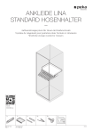 ANKLEIDE LINA STANDARD HOSENHALTER Aufbewahrungssystem für Hosen im Kleiderschrank Système de rangement pour pantalons dans l‘armoire à vêtements Wardrobe storage system for trousers Art.Nr. 600.0364.xx 1× 950.0571.MA Rev. e 1× 10.02.2014 hrm 07.11.2022 ao 1× 9× 6× 1× 01/03 i min. 720 min. 720 min. 1030 min. 1030 1× 1 16 1× 46 1 16 16 60 16 6× min. 720 max. 15 kg n. mi mi n. 0 53 44 5 Links dargestellt, Montage rechts ist spiegelbildlich Right pictured, left assembly laterally reversed Illustration pour le montage à droite, montage à gauche inversé latéralement 950.0571.MA Rev. e peka 02/03 2 1× b a 3 a 1× b 950.0571.MA Rev. e 0 www.peka.com [email protected] T +41 41 919 94 00 F +41 41 919 94 10 Luzernerstrasse 20 6295 Mosen, Switzerland 0 03/03 ">
