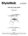 Item #1001 916 031 Model #9278096HDCS USE AND CARE GUIDE DRYING RACK Questions, problems, missing parts? Before returning to the store, call StyleWell Customer Service 1-877-527-0313 HOMEDEPOT.COM THANK YOU Drying Rack. create quality products designed to enhance your home. Visit us online to see our full line of products available for your home improvement needs. Thank you for choosing StyleWell! Table of Contents Pre-Installation . . . . . . . . . . . . . . . . . . . . . . . . . . . . . . . . . . . . . . .2 Package Contents . . . . . . . . . . . . . . . . . . . . . . . . . . . . . . . . . . .2 Assembly . . . . . . . . . . . . . . . . . . . . . . . . . . . . . . . . . . . . . . . . . 3-5 Pre-Installation PACKAGE CONTENTS (A) x 1 (B) x 2 NO ADDITIONAL TOOLS REQUIRED WARNING: Never use this product as a support. Do not shake, lean, or climb on the product at any time. Do not allow children to climb or play in or around. LABEL A B Quantity 1 1 Part number T9278096010EH T9278096020EH 2 Assembly 1 STEP 1. Unlock part (A) as shown. 2 STEP 2. Unfold part (A) and insert parts (B) into (A) as shown, pay attention to the correct sides of (B) as pic. 3 HOMEDEPOT.COM Please contact StyleWell at 1-877-527-0313 for further assistance. Assembly (continued) 3 STEP 3. Expand the drying rack as shown. 4 STEP 4. Lock the plastic parts as shown to stabilize . the dry rack. 4 Assembly (continued) 5 STEP 5. Fold and lock the drying rack as shown when not in use. CAUTION: Two wings maximum safe load: 30 lbs (13.6kg) Two pairs of shoe hangers maximum safe load: 4.4 lbs (2kg) Fabric maximum safe load: 5.5 lbs (2.5kg) 5 HOMEDEPOT.COM Please contact StyleWell at 1-877-527-0313 for further assistance. Questions, problems, missing parts? Before returning to the store, call Stylewell Customer Service 1-877-527-0313 HOMEDEPOT.COM Retain this manual for future use. Article n° #1001 916 031 Modelo #9278096HDCS GUIDE D’UTILISATION ET D’ENTRETIEN SÉCHOIR À VÊTEMENTS Des questions, des problèmes, des pièces manquantes? Avant de retourner au magasin, appelez le service à la clientèle de StyleWell. 1-877-527-0313 HOMEDEPOT.COM MERCI Séchoir à vêtements. Nous nous efforçons de continuellement créer des produits de qualité conçus pour agrémenter votre maison. Vous pouvez visiter notre site Web pour consulter notre gamme complète de produits répondant à vos besoins de rénovation résidentielle. Merci d’avoir choisi StyleWell! Table des matières Instructions de montage . . . . . . . . . . . . . . . . . . . . . . . . . . . . 9-11 Pré-Installation . . . . . . . . . . . . . . . . . . . . . . . . . . . . . . . . . . . . . . . Contenu Du Colis . . . . . . . . . . . . . . . . . . . . . . . . . . . . . . . . . . . . Pré-installation CONTENU DU COLIS (A) x 1 (B) x 2 AUCUN OUTIL SUPPLÉMENTAIRE REQUIS AVERTISSEMENT: N’utilisez jamais ce produit comme support. Ne secouez pas, ne vous appuyez pas et ne grimpez pas sur le produit à aucun moment. Ne laissez pas les enfants grimper ou jouer à l’intérieur ou à proximité. étiquette A B La quantité 1 1 Numéro de pièce T9278096010EH T9278096020EH 8 Instructions de montage 1 ÉTAPE 1. Déverrouier la partie (A) comme indigué. 2 ÉTAPE 2. Étendre le Sous - ensemble (A) et insérer le Sous - ensemble (B) dans (A), comme indigué, en notant le cote correct du (B). 9 HOMEDEPOT.COM Veuillez contacter le 1-877-527-0313 pour obtenir de l’aide. Instructions de montage (suite) 3 ÉTAPE 3. Etendre le séchoir comme indiqué. 4 ÉTAPE 4. Verrouiller les composants en plastique . comme indiqué pour stabiliser le cadre de séchage. 10 Instructions de montage (suite) 5 ÉTAPE 5. Lorsqu'il n'est pas utilisé, pliez et verrouillez le séchoir comme indiqué. Charge maximale sécuritaire des deux ailes : 30 lb(13,6 kg) Charge maximale securitaire pour deux paires de cintres a chaussures : 4.4 lb(2 kg) Charge maximale sécuritaire du tissu : 5.5 lb(2,5 kg) 11 HOMEDEPOT.COM Veuillez contacter le 1-877-527-0313 pour obtenir de l’aide. Des questions, des problèmes, des pièces manquantes? Avant de retourner au magasin, appelez le service à la clientèle de StyleWell. 1-877-527-0313 HOMEDEPOT.COM Conservez ce guide afin de pouvoir vous y reporter plus tard au besoin. ">