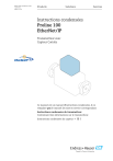 KA01332D/14/FR/02.24-00 71693376 2024-12-20 Products Solutions Services Instructions condensées Proline 100 EtherNet/IP Transmetteur avec Capteur Coriolis Ce manuel est un manuel d'Instructions condensées, il ne remplace pas le manuel de mise en service correspondant. Instructions condensées du transmetteur Contiennent des informations sur le transmetteur. Instructions condensées du capteur → 3 Proline 100 EtherNet/IP 1. Order code: XXXXX-XXXXXX Ser. no.: XXXXXXXXXXXX Ext. ord. cd.: XXX.XXXX.XX Serial number 2. www.endress.com/deviceviewer Endress+Hauser Operations App 3. A0023555 2 Endress+Hauser Proline 100 EtherNet/IP Instructions condensées pour l'appareil Instructions condensées pour l'appareil L'appareil se compose du transmetteur et du capteur. La procédure de mise en service de ces deux composants est décrite dans deux manuels séparés : • Instructions condensées du capteur • Instructions condensées du transmetteur Veuillez vous référer à ces deux manuels d'Instructions condensées lors de la mise en service de l'appareil, car ils sont complémentaires : Instructions condensées du capteur Les Instructions condensées du capteur sont destinées aux spécialistes en charge de l'installation de l'appareil de mesure. • Réception des marchandises et identification du produit • Stockage et transport • Montage Instructions condensées du transmetteur Les Instructions condensées du transmetteur sont destinées aux spécialistes en charge de la mise en service, de la configuration et du paramétrage de l'appareil de mesure (jusqu'à la première valeur mesurée). • Description du produit • Montage • Raccordement électrique • Options de configuration • Intégration système • Mise en service • Informations de diagnostic Documentation complémentaire relative à l'appareil Ces Instructions condensées sont les Instructions condensées du transmetteur. Les "Instructions condensées du capteur" sont disponibles via : • Internet : www.endress.com/deviceviewer • Smartphone/tablette : Endress+Hauser Operations App Vous trouverez des informations détaillées sur l'appareil dans son manuel de mise en service et les autres documentations : • Internet : www.endress.com/deviceviewer • Smartphone/tablette : Endress+Hauser Operations App Endress+Hauser 3 Sommaire Proline 100 EtherNet/IP Sommaire 1 Informations relatives au document . . . . . . . . . . . . . . . . . . . . . . . . . . . . . . . . . . . . . . . . . . . . . . 5 1.1 Symboles utilisés . . . . . . . . . . . . . . . . . . . . . . . . . . . . . . . . . . . . . . . . . . . . . . . . . . . . . . . . . . . . . . . . . . . . . . . 5 2 Consignes de sécurité fondamentales . . . . . . . . . . . . . . . . . . . . . . . . . . . . . . . . . . . . . . . . . . . . . 7 2.1 2.2 2.3 2.4 2.5 2.6 Exigences imposées au personnel . . . . . . . . . . . . . . . . . . . . . . . . . . . . . . . . . . . . . . . . . . . . . . . . . . . . . . . . . . 7 Utilisation conforme . . . . . . . . . . . . . . . . . . . . . . . . . . . . . . . . . . . . . . . . . . . . . . . . . . . . . . . . . . . . . . . . . . . . 7 Sécurité du travail . . . . . . . . . . . . . . . . . . . . . . . . . . . . . . . . . . . . . . . . . . . . . . . . . . . . . . . . . . . . . . . . . . . . . . 8 Sécurité de fonctionnement . . . . . . . . . . . . . . . . . . . . . . . . . . . . . . . . . . . . . . . . . . . . . . . . . . . . . . . . . . . . . . . 8 Sécurité du produit . . . . . . . . . . . . . . . . . . . . . . . . . . . . . . . . . . . . . . . . . . . . . . . . . . . . . . . . . . . . . . . . . . . . . 9 Sécurité informatique . . . . . . . . . . . . . . . . . . . . . . . . . . . . . . . . . . . . . . . . . . . . . . . . . . . . . . . . . . . . . . . . . . . 9 3 Description du produit . . . . . . . . . . . . . . . . . . . . . . . . . . . . . . . . . . . . . . . . . . . . . . . . . . . . . . . . . . . . 9 4 Montage . . . . . . . . . . . . . . . . . . . . . . . . . . . . . . . . . . . . . . . . . . . . . . . . . . . . . . . . . . . . . . . . . . . . . . . . . . 9 5 Raccordement électrique . . . . . . . . . . . . . . . . . . . . . . . . . . . . . . . . . . . . . . . . . . . . . . . . . . . . . . . . 11 4.1 5.1 5.2 5.3 5.4 5.5 5.6 5.7 6 Montage de l'appareil . . . . . . . . . . . . . . . . . . . . . . . . . . . . . . . . . . . . . . . . . . . . . . . . . . . . . . . . . . . . . . . . . . . 9 Sécurité électrique . . . . . . . . . . . . . . . . . . . . . . . . . . . . . . . . . . . . . . . . . . . . . . . . . . . . . . . . . . . . . . . . . . . . . 11 Exigences de raccordement . . . . . . . . . . . . . . . . . . . . . . . . . . . . . . . . . . . . . . . . . . . . . . . . . . . . . . . . . . . . . . 11 Raccordement de l'appareil . . . . . . . . . . . . . . . . . . . . . . . . . . . . . . . . . . . . . . . . . . . . . . . . . . . . . . . . . . . . . . 14 Instructions de raccordement spéciales . . . . . . . . . . . . . . . . . . . . . . . . . . . . . . . . . . . . . . . . . . . . . . . . . . . . . 17 Réglages hardware . . . . . . . . . . . . . . . . . . . . . . . . . . . . . . . . . . . . . . . . . . . . . . . . . . . . . . . . . . . . . . . . . . . . 17 Garantir l'indice de protection . . . . . . . . . . . . . . . . . . . . . . . . . . . . . . . . . . . . . . . . . . . . . . . . . . . . . . . . . . . . 18 Contrôle du raccordement . . . . . . . . . . . . . . . . . . . . . . . . . . . . . . . . . . . . . . . . . . . . . . . . . . . . . . . . . . . . . . . 19 Options de configuration . . . . . . . . . . . . . . . . . . . . . . . . . . . . . . . . . . . . . . . . . . . . . . . . . . . . . . . . 20 6.1 6.2 6.3 6.4 Aperçu des options de configuration . . . . . . . . . . . . . . . . . . . . . . . . . . . . . . . . . . . . . . . . . . . . . . . . . . . . . . . 20 Structure et principe du menu de configuration . . . . . . . . . . . . . . . . . . . . . . . . . . . . . . . . . . . . . . . . . . . . . . . 21 Accès au menu de configuration via le 