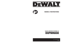 MANUEL D'INSTRUCTIONS RADIO BIDIRECTIONNELLE DXPMR800 Pièce n° PMR-PUM-800-FR01 V1.0 Français Français Français Caractéristiques du produit Définitions: symboles et termes d'alarmes sécurité Ces guides d'utilisation utilisent les symboles et termes d'alarmes sécurité suivants pour vous prévenir de situations dangereuses et de risques de dommages corporels ou matériels. DANGER: ndique une situation dangereuse imminente qui, si elle n'est pas évitée, entraînera la mort ou des blessures graves. AVERTISSEMENT: indique une situation potentiellement 1 ATTENTION: indique une situation potentiellement dangereuse qui, 2 (Si utilisé sans aucun terme) Indique un message propre á la sécurité. 3 14 13 16 7 dangereuse qui, si elle n'est pas évitée, pourrait entraîner la mort ou des blessures graves. 12 si elle n'est pas évitée, pourrait entraîner des blessures légéres ou modérées. AVIS: indique une pratique ne posant aucun risque de dommages corporels mais qui par contre, si rien n'est fait pour l'éviter, pourrait poser des risques de dommages matériels. 11 10 4 5 Call Mode Mem 6 1.Antenne 2.Bouton Haut 3.Bouton Bas 4.Microphone 5.Bouton Appel / Verrouillage 6.Port de Charge USB 7.Vis du Couvercle des Piles 8.Haut-parleur 9. Bouton Mémoire A-1 15 9 8 10.Bouton Mode 11.Ecran LCD Rétro-éclairé 12.Bouton Parler 13.Manette de Mise sous tension/Arrêt/Volume 14.Haut-parleur Externe / Prise Microphone 15.Étui avec Clip Pivotant 16.Compartiment à Piles A-2 Français Français Ecran LCD Rétro-éclairé 4 5 3 6 7 8 2 9 10 11 1 12 16 15 14 13 1.Numéros des Canaux 9. Icône de tonalité de touche 2. Icône de Transmission 10. Icône de mémoire 3. Icône de Réception 11. Icône de balayage 4. Icône VOX 12.Numéros des Codes Confidentiels 5. Icône Roger Beep DCS / CTCSS 6. Icône de double veille 13.Icône DCS 7. Numéro du canal de mémoire 14. Icône CTCSS 8. Alerte par vibration 15.Indicateur du Niveau de la Batterie 16.Icône de Verrouillage Caractéristiques • 16 Canaux • 121 Codes Confidentiels (38 codes CTCSS/83 codes DCS) • Alerte d'Appel • Verrouillages des Boutons • Roger Beep • Indice de Protection IP67 contre l’Eau et la Poussière • Économiseur de Piles/d'Énergie • Fonctionnement mains libres (VOX) • Indicateur du Niveau de la Batterie • Balayage • Double veille • 10 Emplacements de mémoire • Tonalité des Touches • Alerte Sonore de Batterie Faible • Squelch Automatique • Étui Consignes Importantes de Sécurité AVERTISSEMENT: Pour réduire les risques de blessures : Avant toute utilisation, assurez-vous que toute personne utilisant cet appareil lise et comprenne toutes les consignes de sécurité et autres informations contenues dans ce manuel. Conservez ces instructions et relisez-les fréquemment. 1. Seuls les accessoires inclus dans cette boîte ou spécifiés par le fabricant doivent être utilisés avec la radio. Le port de charge USB-C 5V est compatible avec la plupart des chargeurs USB-C de haute qualité qui sont entièrement conformes aux normes USB. 2. N'utilisez pas de nettoyants ou de solvants pour nettoyer l'extérieur de la radio. Utilisez uniquement un chiffon humide ou sec. 3. N'exposez pas ce produit à des éclaboussures ou à des gouttes d'eau. 4. N'essayez pas de réparer le récepteur vous-même. Le retrait du couvercle annule la garantie. Les changements ou modifications non expressément approuvés par DEWALT peuvent annuler l'autorisation accordée par la FCC à l'utilisateur de faire fonctionner cet appareil et ne doivent pas être effectués. 5. Ne pas brancher l'adaptateur mural sur la prise électrique si celle-ci est humide. 6. N'utilisez pas de radio portable dont l'antenne est endommagée. Si une antenne endommagée entre en contact avec votre peau, vous risquez de vous brûler légèrement. 7. Recyclez votre appareil. Le logo DEEE figurant à gauche) apparaît sur le produit pour indiquer que ce produit ne doit pas être jeté ou mis en décharge avec vos autres déchets ménagers. Vous êtes tenu de vous débarrasser de tous vos déchets électroniques ou électriques en les déposant au point de collecte spécifié pour le recyclage de ces déchets dangereux. Instructions de Sécurité Importantes Concernant les Piles AVERTISSEMENT: Lisez tous les avertissements de sécurité et toutes les instructions : Le non-respect des avertissements et des instructions peut entraîner un incendie et/ou des blessures graves • Utilisez les piles prévues à cet effet. En cas de risque d'explosion, veuillez vous débarrasser de la pile usagée en suivant les instructions. • Ne stockez pas et n'utilisez pas le produit dans des endroits où la température peut atteindre ou dépasser 40°C (comme les hangars extérieurs ou les bâtiments métalliques en été). Pour une durée de vie optimale, conservez le produit dans un endroit frais et sec. • N'incinérez pas les piles, même si elles sont gravement endommagées ou complètement usées. • Ne jetez pas les piles dans un feu. Le bloc-piles peut exploser dans un incendie. • Ne remplacez pas les piles dans une zone à "Atmosphère Dangereuse". Toute étincelle créée dans une atmosphère potentiellement explosive peut provoquer une explosion ou un incendie. • Ne démontez pas, n'écrasez pas, ne perforez pas, ne broyez pas et ne tentez pas de modifier la forme de vos piles. • Ne séchez pas des piles mouillées ou humides avec un appareil ou une source de chaleur, comme un sèche-cheveux ou dans un micro-ondes. • Une petite fuite de liquide au niveau des piles peut se produire dans des conditions d'utilisation ou de température extrêmes. Cela n'indique pas une défaillance. N'ouvrez pas, ne déformez pas et n'abîmez pas les piles, car elles peuvent contenir des matières corrosives susceptibles de provoquer des lésions oculaires ou cutanées et d'être toxiques en cas d'ingestion. Cependant, si le joint extérieur est cassé et que c