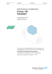 KA01336D/14/FR/02.24-00 71693411 2024-12-20 Products Solutions Services Instructions condensées Proline 100 PROFINET Transmetteur avec Capteur Coriolis Ce manuel est un manuel d'Instructions condensées, il ne remplace pas le manuel de mise en service correspondant. Instructions condensées du transmetteur Contiennent des informations sur le transmetteur. Instructions condensées du capteur → 2 Proline 100 PROFINET 1. Order code: XXXXX-XXXXXX Ser. no.: XXXXXXXXXXXX Ext. ord. cd.: XXX.XXXX.XX Serial number 2. www.endress.com/deviceviewer Endress+Hauser Operations App 3. A0023555 Instructions condensées pour l'appareil L'appareil se compose du transmetteur et du capteur. La procédure de mise en service de ces deux composants est décrite dans deux manuels séparés : • Instructions condensées du capteur • Instructions condensées du transmetteur Veuillez vous référer à ces deux manuels d'Instructions condensées lors de la mise en service de l'appareil, car ils sont complémentaires : 2 Endress+Hauser Proline 100 PROFINET Documentation complémentaire relative à l'appareil Instructions condensées du capteur Les Instructions condensées du capteur sont destinées aux spécialistes en charge de l'installation de l'appareil de mesure. • Réception des marchandises et identification du produit • Stockage et transport • Montage Instructions condensées du transmetteur Les Instructions condensées du transmetteur sont destinées aux spécialistes en charge de la mise en service, de la configuration et du paramétrage de l'appareil de mesure (jusqu'à la première valeur mesurée). • Description du produit • Montage • Raccordement électrique • Options de configuration • Intégration système • Mise en service • Informations de diagnostic Documentation complémentaire relative à l'appareil Ces Instructions condensées sont les Instructions condensées du transmetteur. Les "Instructions condensées du capteur" sont disponibles via : • Internet : www.endress.com/deviceviewer • Smartphone/tablette : Endress+Hauser Operations App Vous trouverez des informations détaillées sur l'appareil dans son manuel de mise en service et les autres documentations : • Internet : www.endress.com/deviceviewer • Smartphone/tablette : Endress+Hauser Operations App Endress+Hauser 3 Sommaire Proline 100 PROFINET Sommaire 1 Informations relatives au document . . . . . . . . . . . . . . . . . . . . . . . . . . . . . . . . . . . . . . . . . . . . . . 5 1.1 Symboles utilisés . . . . . . . . . . . . . . . . . . . . . . . . . . . . . . . . . . . . . . . . . . . . . . . . . . . . . . . . . . . . . . . . . . . . . . . 5 2 Consignes de sécurité fondamentales . . . . . . . . . . . . . . . . . . . . . . . . . . . . . . . . . . . . . . . . . . . . . 6 2.1 2.2 2.3 2.4 2.5 2.6 Exigences imposées au personnel . . . . . . . . . . . . . . . . . . . . . . . . . . . . . . . . . . . . . . . . . . . . . . . . . . . . . . . . . . 6 Utilisation conforme . . . . . . . . . . . . . . . . . . . . . . . . . . . . . . . . . . . . . . . . . . . . . . . . . . . . . . . . . . . . . . . . . . . . 7 Sécurité du travail . . . . . . . . . . . . . . . . . . . . . . . . . . . . . . . . . . . . . . . . . . . . . . . . . . . . . . . . . . . . . . . . . . . . . . 8 Sécurité de fonctionnement . . . . . . . . . . . . . . . . . . . . . . . . . . . . . . . . . . . . . . . . . . . . . . . . . . . . . . . . . . . . . . . 8 Sécurité du produit . . . . . . . . . . . . . . . . . . . . . . . . . . . . . . . . . . . . . . . . . . . . . . . . . . . . . . . . . . . . . . . . . . . . . 8 Sécurité informatique . . . . . . . . . . . . . . . . . . . . . . . . . . . . . . . . . . . . . . . . . . . . . . . . . . . . . . . . . . . . . . . . . . . 9 3 Description du produit . . . . . . . . . . . . . . . . . . . . . . . . . . . . . . . . . . . . . . . . . . . . . . . . . . . . . . . . . . . . 9 4 Montage . . . . . . . . . . . . . . . . . . . . . . . . . . . . . . . . . . . . . . . . . . . . . . . . . . . . . . . . . . . . . . . . . . . . . . . . . . 9 5 Raccordement électrique . . . . . . . . . . . . . . . . . . . . . . . . . . . . . . . . . . . . . . . . . . . . . . . . . . . . . . . . 11 4.1 5.1 5.2 5.3 5.4 5.5 5.6 6 Montage de l'appareil . . . . . . . . . . . . . . . . . . . . . . . . . . . . . . . . . . . . . . . . . . . . . . . . . . . . . . . . . . . . . . . . . . . 9 Sécurité électrique . . . . . . . . . . . . . . . . . . . . . . . . . . . . . . . . . . . . . . . . . . . . . . . . . . . . . . . . . . . . . . . . . . . . . 11 Exigences de raccordement . . . . . . . . . . . . . . . . . . . . . . . . . . . . . . . . . . . . . . . . . . . . . . . . . . . . . . . . . . . . . . 11 Raccordement de l'appareil . . . . . . . . . . . . . . . . . . . . . . . . . . . . . . . . . . . . . . . . . . . . . . . . . . . . . . . . . . . . . . 14 Réglages hardware . . . . . . . . . . . . . . . . . . . . . . . . . . . . . . . . . . . . . . . . . . . . . . . . . . . . . . . . . . . . . . . . . . . . 16 Garantir l'indice de protection . . . . . . . . . . . . . . . . . . . . . . . . . . . . . . . . . . . . . . . . . . . . . . . . . . . . . . . . . . . . 18 Contrôle du raccordement . . . . . . . . . . . . . . . . . . . . . . . . . . . . . . . . . . . . . . . . . . . . . . . . . . . . . . . . . . . . . . . 19 Options de configuration . . . . . . . . . . . . . . . . . . . . . . . . . . . . . . . . . . . . . . . . . . . . . . . . . . . . . . . . 19 6.1 6.2 6.3 6.4 Aperçu des options de configuration . . . . . . . . . . . . . . . . . . . . . . . . . . . . . . . . . . . . . . . . . . . . . . . . . . . . . . . 19 Structure et principe du menu de configuration . . . . . . . . . . . . . . . . . . . . . . . . . . . . . . . . . . . . . . . . . . . . . . . 20 Accès au menu de configuration via le navigateur web . . . . . . . . . . . . . . . . . . . . . . . . . . . . . . . . . . . . . . . . . . 20 Accès au menu de configuration via l'outil de conf