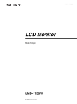 3-296-138-24 (1) LCD Monitor Mode d’emploi LMD-1750W © 2008 Sony Corporation AVERTISSEMENT Afin de réduire les risques d’incendie ou d’électrocution, ne pas exposer cet appareil à la pluie ou à l’humidité. Afin d’écarter tout risque d’électrocution, garder le coffret fermé. Ne confier l’entretien de l’appareil qu’à un personnel qualifié. AVERTISSEMENT CET APPAREIL DOIT ÊTRE RELIÉ À LA TERRE. AVERTISSEMENT Lors de l’installation de l’appareil, incorporer un dispositif de coupure dans le câblage fixe ou brancher la fiche d’alimentation dans une prise murale facilement accessible proche de l’appareil. En cas de problème lors du fonctionnement de l’appareil, enclencher le dispositif de coupure d’alimentation ou débrancher la fiche d’alimentation. Pour les clients européens Ce produit portant la marque CE est conforme à la fois à la Directive sur la compatibilité électromagnétique (EMC) et à la Directive sur les basses tensions émises par la Commission de la Communauté Européenne. La conformité à ces directives implique la conformité aux normes européennes suivantes : • EN60950-1 : Sécurité des produits • EN55103-1 : Interférences électromagnétiques (émission) • EN55103-2 : Sensibilité électromagnétique (immunité) Ce produit est prévu pour être utilisé dans les environnements électromagnétiques suivants : E1 (résidentiel), E2 (commercial et industrie légère), E3 (urbain extérieur) et E4 (environnement EMC contrôlé, ex. studio de télévision). Pour les clients en Europe Le fabricant de ce produit est Sony Corporation, 1-7-1 Konan, Minato-ku, Tokyo, Japon. Le représentant autorisé pour EMC et la sécurité des produits est Sony Deutschland GmbH, Hedelfinger Strasse 61, 70327 Stuttgart, Allemagne. Pour toute question concernant le service ou la garantie, veuillez consulter les adresses indiquées dans les documents de service ou de garantie séparés. 2 Table de matières Précautions d’emploi ............................................. 4 Sécurité ............................................................... 4 Installation .......................................................... 4 Manipulation de l’écran LCD (à cristaux liquides) .......................................... 4 Tube fluorescent ................................................. 4 Nettoyage ........................................................... 4 Remballage ......................................................... 5 Montage en rack ................................................. 5 Erreur de ventilateur ........................................... 5 Caractéristiques ..................................................... 5 Emplacement et fonction des composants et des commandes ............................................................. 7 Panneau avant ..................................................... 7 Signaux d’entrée et points réglables/ paramétrables ................................................... 9 Panneau arrière/inférieur .................................. 10 Montage en rack (avec le support MB-530) ...... 12 Montage du socle (avec le support SU-561) ...... 12 Raccordement du cordon d’alimentation secteur ................................................................... 13 Installation de l’adaptateur d’entrée ................. 14 Sélection des réglages par défaut ....................... 14 Sélection de la langue de menu ........................... 16 Utilisation du menu ............................................. 17 Réglage au moyen des menus ............................. 18 Options ............................................................. 18 Ajustement et modification des réglages ......... 18 Menu STATUT ............................................ 18 Menu TEMP COULEUR/ESPACE............. 19 Menu CONTROLE UTIL ............................ 19 Menu CONFIG UTILISAT ......................... 22 Menu TELECOMMANDE.......................... 27 Menu INVALID DE TOUCHE ................... 28 Dépannage ............................................................ 29 Spécifications ....................................................... 29 Dimensions ........................................................... 34 Table de matières 3 Précautions d’emploi Sécurité • Ne branchez l’appareil que sur une source d’alimentation conforme aux directives de la section « Spécifications ». • Une plaquette signalétique indiquant la tension de fonctionnement, etc., est située sur le panneau arrière. • Si du liquide ou un objet quelconque venait à pénétrer dans le boîtier, débranchez l’appareil et faites-le vérifier par un technicien qualifié avant de le remettre en service. • Ne posez pas et ne laissez pas tomber d’objets lourds sur le cordon d’alimentation. Si le cordon d’alimentation est endommagé, mettez immédiatement l’appareil hors tension. Il est dangereux d’utiliser l’appareil avec un cordon d’alimentation endommagé. • Débranchez l’appareil de la prise murale si vous n’avez pas l’intention de l’utiliser pendant plusieurs jours. • Débranchez le cordon d’alimentation de la prise secteur en saisissant la fiche, jamais en tirant le cordon. • La prise secteur doit se trouver à proximité de l’appareil et être facile d’accès. Tube fluorescent Un tube fluorescent conçu spécialement est installé comme dispositif lumineux de l’appareil. Si l’écran LCD s’assombrit, devient instable ou ne s’allume pas, consultez votre revendeur Sony. Installation Nettoyage • Assurez une circulation d’air adéquate afin d’éviter toute surchauffe interne. Ne placez pas l’appareil sur des surfaces textiles (tapis, couvertures, etc.) ni à proximité de matières (rideaux, draperies) susceptibles d’obstruer les orifices de ventilation. • Ne placez pas l’appareil à proximité de sources de chaleur comme des radiateurs ou des cond