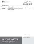 ® Au Fournisseur : À l’Usager : ® Ce manuel doit être remis à l’usager de ce fauteuil roulant. Veuillez lire tout le manuel et le conserver pour rérérence ultérieure. Ma n u e l d’instructions P/N 253470 Rév. C Manuel d’utilisation QUICKIE Q200 R ® Manuel général ® I. INTRODUCTION 253470 Rév. C 2 II. TABLE DES MATIÈRES 3 253470 Rév. C 1.0 INFORMATIONS DESTINÉES À L’UTILISATEUR . 253470 Rév. C 4 2.0 SÉCURITÉ IUD (01) 0000000000000 (21) XXX-##### N° DE SÉRIE : XXX-##### ASSEMBLÉ AU MEXIQUE Poids maximal de l’utilisateur : XXX kg FABRIQUÉ EN AAAA-MM AVERTISSEMENT Poids maximal de l’occupant du fauteuil roulant Capacité de 136 kg N/P : --- Fabriqué pour Sunrise Medical Par LINDCO Motor Co. N° DE SÉRIE : ???????-@SM Type : ------------------------------------------Moteur : 22,5 V CC Frein : 12 V CC Rapport de transmission -- --- -Puissance : -------Rév. ? 5 tr/min. : --- Code de la date : --------- N/P kit de brosse : --- ------------ 253470 Rév. C 2.0 SÉCURITÉ 253470 Rév. C 6 3.0 USAGE PRÉVU DU FAUTEUIL ROULANT 12 1 11 3 2 10 4 8 7 6 7 9 5 253470 Rév. C 3.0 USAGE PRÉVU DU FAUTEUIL ROULANT 253470 Rév. C 8 4.0 CONFIGURATION DU FAUTEUIL ROULANT 9 253470 Rév. C 5.0 UTILISATION DU FAUTEUIL ROULANT 253470 Rév. C 10 5.0 UTILISATION DU FAUTEUIL ROULANT 11 253470 Rév. C 5.0 UTILISATION DU FAUTEUIL ROULANT 253470 Rév. C 12 5.0 UTILISATION DU FAUTEUIL ROULANT 13 253470 Rév. C 5.0 UTILISATION DU FAUTEUIL ROULANT 253470 Rév. C 14 6.0 BATTERIES, CHARGE ET AUTONOMIE 15 253470 Rév. C 6.0 BATTERIES, CHARGE ET AUTONOMIE 253470 Rév. C 16 6.0 BATTERIES, CHARGE ET AUTONOMIE 17 253470 Rév. C 6.0 BATTERIES, CHARGE ET AUTONOMIE Q200 R A A Points A d’arrimage avant Points d’arrimage B arrière Sens de la C marche B B C 253470 Rév. C 18 7.0 TRANSPORT 1. 2. 3. 4. 5. 6. 7. 8. 9. 10. 11. 12. 13. 14. 15. La sécurité de l’utilisateur pendant le transport dépend de la diligence de la personne qui fixe les dispositifs d’arrimage. Celle-ci doit avoir reçu des instructions et/ou une formation appropriées pour leur utilisation. Dans la mesure du possible, retirez et rangez en toute sécurité à l’écart du fauteuil roulant tous les équipements auxiliaires, par exemple : béquilles, coussins détachés, tablettes, etc. a. Retirés et immobilisés séparément dans le véhicule, ou b. Fixés au fauteuil roulant, mais avec un rembourrage absorbant l’énergie placé entre la tablette et l’utilisateur. Le repose-jambes articulé/élévateur ne doit pas être utilisé en position élevée lorsque le fauteuil roulant et l’utilisateur sont transportés. Le cas échéant : les dossiers inclinables doivent être remis en position verticale. Le cas échéant : les élévateurs d’assise doivent être dans la position la plus basse. Le cas échéant : les freins manuels doivent être fermement serrés. N’utilisez que des dispositifs d’arrimage des fauteuils roulants et de retenue des occupants (WTORS) qui ont été installés conformément aux instructions du fabricant et à la norme SAE J2249. Fixez les dispositifs d’arrimage (A) (B) des fauteuils roulants et de retenue des occupants (WTORS) aux points de fixation conformément aux instructions du fabricant et à la norme SAE J2249. Fixez les dispositifs de retenue des occupants aux points de fixation conformément aux instructions du fabricant et à la norme SAE J2249. Assurez-vous que les guides de positionnement des hanches sont verrouillés en place. N’utilisez que des dispositifs d’arrimage des fauteuils roulants (A, B) et de retenue des occupants (WTORS) qui répondent aux exigences de la norme SAE J2249 « Recommended PracticeWheelchair Tie-down and Occupant Restraint Systems For Use in Motor Vehicles » (Pratique recommandée – Dispositifs d’arrimage des fauteuils roulants et de retenue des occupants utilisés dans les véhicules à moteur). N’utilisez pas de WTORS conçus pour compter sur la structure du fauteuil roulant pour transférer les charges de retenue des occupants au véhicule. Le fauteuil roulant a été testé dynamiquement en mode face à la route pour un essai de choc frontal à 48 km/h. Le fauteuil roulant doit être orienté face à la route au cours du transport. Les supports posturaux et les dispositifs de positionnement ne doivent pas être utilisés comme dispositif de retenue de l’occupant. Ne modifiez pas et ne remplacez pas les pièces du châssis, les composants ou l’assise du fauteuil roulant. Les arrêts brusques, les impacts ou les collisions avec des véhicules peuvent endommager la structure de votre fauteuil. Les fauteuils soumis à de tels incidents doivent être remplacés. Instruction sur le dispositif de retenue des occupants 1. 2. 3. 4. 5. Utilisez un système de retenue des occupants à 3 points pour sécuriser l’occupant. Il convient d’utiliser les ceintures de maintien du bassin et du torse pour retenir l’occupant en vue de réduire les risques de chocs au niveau de la tête et du torse contre les éléments du véhicule. Les dispositifs de retenue doivent être montés sur le montant approprié du véhicule et ne doivent pas être maintenus à distance du corps par des éléments du fauteuil roulant tels que l’accoudoir ou les roues (Fig. 7.5). Utilisez un appui-tête bien positionné lorsque vous êtes transporté en fauteuil roulant. Les supports posturaux (sangles abdominales, ceintures abdominales) ne doivent pas être utilisés pour retenir les occupants d’un véhicule en mouvement, sauf s’ils sont étiquetés comme répondant aux exigences spécifiées dans la norme ISO 7176-19:2008 ou SAE J2249. Positionnement du dispositif de retenue des occupants 1. 2. 3. 4. La ceinture de retenue du bassin doit être portée bas sur l’avant du bassin de façon à ce que l’angle de la ceinture se situe dans la zone préconisée de 30 à 75° par rapport à l’horizontale. Il est souhaitable que l’angle soit plus prononcé (pl