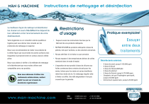 MAN & MACHINE Instructions de nettoyage et désinfection Restrictions d’usage La meilleure façon de nettoyer et désinfecter les claviers et souris Man&Machine dépend de leur utilisation et de l’environnement de votre établissement. Votre hygiéniste ou un conseiller externe qualifié en • Nous vous recommandons de traiter nos produits de la même façon que vous traitez les autres surfaces avec lesquelles le personnel entre en contact, dans la même pièce. fabricant de vos produits nettoyants. • NE PAS UTILISER de produits nettoyants à base de pétrole, tels que l’acétone, ou des solutions abrasives. • Ne pas stériliser à la chaleur ou par pression. • Ne pas exposer à des températures dehors de celles Nous vous aidons à vérifier si la méthode de nettoyage et le désinfectant que vous voulez utiliser sont compatibles avec nos produits. Essuyer entre deux traitements Toujours suivre les instructions fournies par le hygiène peut vous donner des conseils sur les protocoles de nettoyage à respecter. Pratique exemplaire! mentioné dans le mode d’emploi. • L’exposition de tout produit à base de silicone aux huiles contenues dans certains alcools pour les mains, lotions pour les mains et autres émollients Nous nous abstenons d’utiliser des réduit leur durée de vie. Un nettoyage régulier aide revêtements antimicrobiens, mettant à limiter cet effet. Une telle dégradation n’est pas plutôt l’accent sur le besoin de couverte par la garantie. Désinfectants autorisés •A base de javel, jusqu’à 100.000 ppm •A base d’alcool • A base de Glutaraldéhyde • A base de phénol •A base de formol, jusqu’à 370.000 ppm •Oxydants, tel que l’hydrogène peroxydé, jusqu’à 30.000 ppm •Ammonium quaternaire, jusqu’à 20.000 ppm désinfecter régulièrement. www.man-machine.com USA: Europe: [email protected] [email protected] +1 301 341 4900 +31 (0) 23 5450185 MAN & MACHINE Instructions de nettoyage et désinfection Notre programme de lavage C Mouse Essuyer C Mouse Wireless Vous pouvez essuyer le produit avec un chiffon doux non-abrasif, par exemple en microfibre, des lingettes imprégnées, une brosse souple dont les poils ont une rigidité semblable à un pinceau ou une éponge, mais n’utilisez aucune sorte Its Cool Its Cool Drape Its Cool Flat Laptop drapes and mousepads Mighty Mouse Vaporiser Rincer Utilisez Couvercle Vous pouvez vaporiser le produit au spray, avec de l’eau et du savon ou un désinfectant approuvé. Vous pouvez rincer le produit avec de l’eau et du savon ou un désinfectant approuvé. Débrancher et fermer le port du cable entièrement pendant le lavage ou rinçage. Petite Mouse Ctrl Ctrl Really Cool | Really Cool Touch Ctrl Really Cool Drape Slim Cool | Slim Cool+ Ctrl Universal keyboard Drape Immerger Exposer aux HVP Steriliser Avec verrouillage Vous pouvez submerger le produit dans l’eau et du savon ou un désinfectant. Le produit peut être exposé aux vapeurs d’hydrogène peroxydé (HPV). Le produit résiste à la stérilisation en autoclave ou thermo-désinfecteur (jusqu’à 134 ºC, testé 200 cycles). Maintenez enfoncée la touche de nettoyage ou les deux touches Ctrl pendant 3 secondes pour verrouiller ou déverrouiller. Blockage signalisé. Ctrl Very Cool Very Cool Flat www.man-machine.com USA: Europe: [email protected] [email protected] +1 301 341 4900 +31 (0) 23 5450185 MAN & MACHINE Désinfectants autorisés Désinfectants autorisés liste Cette liste contient les produits qui ont été approuvés par leurs fabricants pour un quelles les produits pourraient être exposés). Par conséquent, aucune réclamation ne usage sur des produits en silicone. Bien qu’il s’agisse de la meilleure indication que pourra être faite en se basant uniquement sur cette liste. Nous recommandons toujours à nous pouvons donner concernant l’adéquation entre le produit désinfectant et les nos clients de procéder à un test sur un exemplaire isolé avant d’inclure un désinfectant claviers et souris en silicone, de nombreux facteurs subsistent expliquant les effets dans vos protocoles de nettoyage et de désinfection. qu’ils peuvent avoir sur nos produits (seuls ou combinés avec d’autres substances aux Pour plus d’information, veuillez contacter le fabricant du désinfectant. Produit Fabricant Site 1 5 0 6 7 1 Antibac Keyboard Wipes (80 wipes) Abena A/S www.abena.dk Acrylan Antiseptica chem.-pharm. Produkte GmbH www.antiseptica.de Alpet D2 SARAYA Europe www.saraya-europe.com Alpha Guard Laboratorium Dr.Deppe GmbH www.dr-deppe.de Anios DDSH Anios Laboratories www.anios.com Aniosurf Citron Anios Laboratories www.anios.com Antiseptica Kombi Liquid Antiseptica chem.-pharm. Produkte GmbH www.antiseptica.de Apesin AP 100 Tana Chemie GmbH www.tana.de Apesin AP 3 Tana Chemie GmbH www.tana.de www.man-machine.com USA: Europe: [email protected] [email protected] +1 301 341 4900 +31 (0) 23 5450185 MAN & MACHINE Désinfectants autorisés Produit Fabricant Site Apesin AP 300 Tana Chemie GmbH www.tana.de Apesin combi DR Tana Chemie GmbH www.tana.de Apesin rapid Tana Chemie GmbH www.tana.de B 10 Wischdesinfektion Orochemie GmbH + Co. KG www.orochemie.de B 20 Wischdesinfektion Orochemie GmbH + Co. KG www.orochemie.de B 30 Schnelldesinfekton Orochemie GmbH + Co. KG www.orochemie.de B 40 Schnelldesinfekton Orochemie GmbH + Co. KG www.orochemie.de B 45 Schnelldesinfektion Orochemie GmbH + Co. KG www.orochemie.de B 60 Desinfektionstücher Orochemie GmbH + Co. KG www.orochemie.de Banicide Plus Pascal International Inc. www.pascalinternational.net Biguacid Liquid Antiseptica chem.-pharm. Produkte GmbH www.antiseptica.de Biguacid Plus Antiseptica chem.-pharm. Produkte GmbH www.antiseptica.de Biguacid-S Antiseptica chem.-pharm. Produkte GmbH www.antiseptica.de Buraton 10F 1% Schülke & Mayr GmbH www.schuelke.com CaviCideTM Metrex Research Corporation www.metrex.com www.man-machine.com USA: Europe: [email protected] [email prote