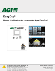 EasyDry® Manuel d’utilisation des commandes Apex EasyDry® EMERGENCY EMERGENC ON POWER POWE INST LOC LO OFF OF ON INST LOC LO STOP INST LOC LO POWER POWE Lire ce manuel avant d’utiliser l’équipement. Le non-respect des consignes et mesures de sécurité peut engendrer des blessures graves ou mortelles, en plus de dommages collatéraux. Conserver ce manuel pour consultation future. Numéro de pièce : 250054 R2 Révisé : Le 7 mai 2021 Instructions d’origine Ce produit a été conçu et fabriqué conformément aux normes techniques générales. D’autres règlements locaux peuvent s’appliquer, auquel cas les utilisateurs doivent s’y conformer. Tout le personnel doit suivre une formation sur les procédures d’utilisation et de sécurité applicables à ce produit. Utiliser la fiche d’enregistrement et de signature ci-dessous pour vérifier que ce manuel a été passé en révision initiale et périodique avec tout le personnel. Date Nom et signature de l’employé Nom et signature de l’employeur Nouveau dans ce manuel Les changements suivants ont été apportés au cours de la révision du manuel : Description Section Corrections mineures Plusieurs sections EASYDRY® – COMMANDES APEX EASYDRY® 4 250054 R2 EASYDRY® – COMMANDES APEX EASYDRY® CONTENU 1. Introduction ............................................................................................................................................ 7 1.1 Utilisation prévue ...................................................................................................................... 7 1.2 Lire tous les manuels de commandes de séchoir de silo ......................................................... 7 2. Sécurité ................................................................................................................................................... 8 2.1 Symbole d’alerte de sécurité et mentions d’avertissement..................................................... 8 2.2 Respecter les consignes de sécurité ......................................................................................... 9 3. Caractéristiques .................................................................................................................................... 10 3.1 Dessin de vue générale des systèmes de commande et capteurs du séchoir de silo ........... 10 3.2 Séchage en lots........................................................................................................................ 11 3.3 Séchage à débit continu .......................................................................................................... 11 4. Utilisation.............................................................................................................................................. 12 4.1 Sécurité du fonctionnement ................................................................................................... 12 4.2 Commande EMERGENCY STOP (arrêt d’urgence) .................................................................. 13 4.3 Description simplifiée du fonctionnement du système.......................................................... 14 4.4 Identification des boutons, icônes et fonctionnalités du HMI ............................................... 15 4.5 L’interface homme-machine (HMI)......................................................................................... 16 4.5.1 Le clavier contextuel ................................................................................................ 17 4.5.2 L’écran MAIN (principal) .......................................................................................... 18 4.5.3 L’écran STATUS (état)............................................................................................... 20 4.5.4 L’écran TRANSPORTS................................................................................................ 21 4.5.5 L’écran TIMERS (minuteries) .................................................................................... 23 4.5.6 L’écran ADVANCED TIMERS 1 (minuteries avancées 1) .......................................... 25 4.5.7 L’écran ADVANCED TIMERS 2 (minuteries avancées 2) .......................................... 28 4.5.8 L’écran TEMPS (températures) ................................................................................ 30 4.5.9 L’écran TEMPERATURE LIMITS (limites de température)........................................ 32 4.5.10 L’écran TEMPERATURE TRENDS GRAPHS (graphiques de tendance des températures).............................................................................................................. 34 4.5.11 L’écran graphique STATIC PRESSURE TRENDS (tendances de la pression statique)....................................................................................................................... 36 4.5.12 L’écran ALARMS (alarmes) ..................................................................................... 37 4.5.13 L’écran ALARM HISTORY (historique des alarmes)................................................ 38 4.5.14 L’écran MANUAL (manuel)..................................................................................... 39 4.5.15 L’écran SETUP (configuration)................................................................................ 41 4.5.16 L’écran ADVANCED SETUP (configuration avancée).............................................. 43 4.5.17 L’écran RECIPES (recettes) ..................................................................................... 45 4.5.18 L’écran TECHNICIAN (technicien)........................................................................... 47 4.5.19 L’écran HELP MENU (menu d’aide)........................................................................ 48 4.5.20 L’écran ALARM CODES (codes d’alarme).....................................................