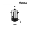6L 200085 Bartscher GmbH Franz-Kleine-Str. 28 D-33154 Salzkotten Allemagne tél. +49 5258 971-0 fax : +49 5258 971-120 Hotline technique : +49 5258 971-197 www.bartscher.com Version: 4.0 Date de création : 2025-04-03 FR Manuel d'utilisation original 1 2 3 4 5 6 7 Sécurité ......................................................................................................... 2 1.1 Explication des avertissements ................................................................ 2 1.2 Consignes de sécurité ............................................................................. 3 1.3 Utilisation conforme à l’usage .................................................................. 6 1.4 Utilisation non conforme à l’usage ........................................................... 6 Généralités .................................................................................................... 7 2.1 Responsabilité et garantie ....................................................................... 7 2.2 Protection des droits d’auteur .................................................................. 7 2.3 Déclaration de conformité ........................................................................ 7 Transport, emballage et stockage ................................................................. 8 3.1 Inspection suite au transport .................................................................... 8 3.2 Emballage ................................................................................................ 8 3.3 Stockage .................................................................................................. 8 Paramètres techniques .................................................................................. 9 4.1 Indications techniques ............................................................................. 9 4.2 Éléments de l’appareil............................................................................ 10 4.3 Fonctions de l’appareil ........................................................................... 11 Installation et utilisation ............................................................................... 12 5.1 Installation.............................................................................................. 12 5.2 Utilisation ............................................................................................... 13 Nettoyage .................................................................................................... 16 6.1 Consignes de sécurité pour le nettoyage ............................................... 17 6.2 Nettoyage .............................................................................................. 17 6.3 Détartrage .............................................................................................. 17 Élimination des déchets ............................................................................... 18 200085 1 / 20 Sécurité Diese Bedi enungsanlei tung besc hrei bt di e Installation, Bedi enung und Wartung des Geräts und gilt als wic htige Inform ationsquelle und N achschl agew erk. Z najom ość w szystkich zaw artyc h w ni ej wsk az ówek dotycz ącyc h bezpi ecz eńs twa i obsł ugi stanowi w arunek bez pi ecz nej i prawi dłow ej pr acy z urządz eni em. Ponadto należy przestrzeg ać odpowi ednio do mi ejsca użytk owani a urządz eni a l okal nyc h przepis ów dotycz ącyc h z apobieg ani a wy padk om oraz og ólnyc h zas ad BH P. Dies e Bedi enungsanleitung is t Bes tandteil des Produkts und m uss i n unmittelbarer N ähe des Ger äts für das In¬s tall ations-, Bedi enungs-, W artungs- und R einigungspers onal j ederzei t z ugänglich auf¬bewahrt w erden. W enn das Ger ät an eine dritte Pers on weitergegeben wird, muss die Bedi enungsanlei tung mit ausgehändigt wer den. Avant d’utiliser l’appareil, lire attentivement la notice et la conserver dans un endroit facilement accessible, à proximité de l’appareil ! La présente notice d’utilisation décrit l’installation, la manipulation et la maintenance de l’appareil, elle est une source d’informations importante et un ouvrage de référence. La connaissance de toutes les consignes de sécurité et d’utilisation comprises dans la présente notice est une condition indispensable pour assurer le fonctionnement correct et en toute sécurité de l’appareil. Avant de mettre en marche l’appareil, lire la présente notice d’utilisation, pour éviter les blessures et les dommages matériels. Une utilisation incorrecte peut endommager l’appareil. À chaque étape d’utilisation de l’appareil, toutes les informations essentielles contenues dans le mode d’emploi doivent être accessibles pour le personnel. C’est l’opérateur qui est responsable de leur disponibilité. Outre le mode d’emploi, il est impératif de respecter les règles générales et la loi en en vigueur, relatives à la sécurité du travail et à la protection de l’environnement. FR 1 Sécurité L’appareil est conçu d’après les règles techniques en vigueur. Cependant, l’appareil peut constituer une source de dangers, s’il n’est pas utilisé correctement ou conformément à son usage. Toutes les personnes qui utilisent l’appareil doivent se tenir aux indications mentionnées dans la présente notice d’utilisation et respecter les consignes de sécurité. 1.1 Explication des avertissements Les indications importantes relatives à la sécurité ainsi que les avertissements sont désignés dans la présente notice par des mentions d’avertissement adéquates. Ces indications doivent être impérativement respectées, pour éviter les accidents, les blessures et les dommages matériels. DANGER ! La mention d’avertissement DANGER avertit contre les risques qui peuvent entraîner des blessures graves ou la mort, s’ils ne sont pas évités. 2 / 20 200085 Sécurité AVERTISSEMENT ! 