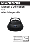Manuel d‘utilisation CB-1 Mini-chaîne portable HOTLINE SAV 0 800917435 [email protected] AN: FR 2006050171170 37/2025 Aperçu Aperçu A 7 8 9 1 2 3 4 5 6 B 13 15 14 12 11 16 M/EQ V V 10 /RPT 17 18 PLAY/RECORD 19 3 Aperçu Contenu de la livraison / Pièces de l‘appareil Contenu de la livraison / Pièces de l‘appareil C COOL 1 Pause (cassette) 12V 220-240V 2 Arrêt/Ouverture (cassette) DC AC 3 Retour rapide (cassette) 4 Avance rapide (cassette) 5 Lecture (cassette) 6 Enregistrement (cassette) 7 Antenne 8 Poignée 9 Compartiment CD OFF HEAT 20 21 22 23 10 Bouton VOLUME11 M/EQ (Sélection de fonction) 12 Bouton POWER/SOURCE (Interrupteur d'alimentation/Sélection de mode) 13 Bouton/TUN - (Station précédente/Chanson précédente) 14 Affichage LCD 15 Bouton/TUN + (Station suivante/Chanson suivante) 16 Bouton (LECTURE/PAUSE) 17 STOP/RÉPÉTER 18 Bouton VOLUME+ 19 Compartiment cassette 20 Prise AC 21 Prise d'entrée AUX IN 25 24 4 22 Prise USB 23 Prise pour écouteurs/casque 5 Contenu de la livraison / Pièces de l‘appareil Table des matières 24 Compartiment à piles Table des matières 25 Cordon d‘alimentation Aperçu���������������������������������������������������������������������������������������������3 Contenu de la livraison / Pièces de l‘appareil ������������������������������5 Préface���������������������������������������������������������������������������������������������8 Généralités��������������������������������������������������������������������������������������9 Lire et conserver les instructions de la notice d’utilisation������������������������������������������������ 9 Légende des symboles����������������������������������������������������������������������10 Sécurité������������������������������������������������������������������������������������������12 Utilisation prévue������������������������������������������������������������������������������� 12 Consignes de sécurité������������������������������������������������������������������������13 Mise en service������������������������������������������������������������������������������18 Contenu de l‘emballage��������������������������������������������������������������������18 Utilisation���������������������������������������������������������������������������������������������18 Radio�����������������������������������������������������������������������������������������������������22 Fonctionnement de la Cassette�������������������������������������������������������27 Nettoyage��������������������������������������������������������������������������������������28 Stockage����������������������������������������������������������������������������������������29 Transport���������������������������������������������������������������������������������������29 Données techniques���������������������������������������������������������������������30 Déclaration de Conformité de l‘UE�����������������������������������������������32 Élimination���������������������������������������
