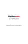 G7 BRIDGE Manuel technique d’utilisation CONTENU PRÉSENTATION Station de base mobile et satellite portable............................................................................. 2 Réseau Blackline Safety ........................................................................................................................ 3 Portail Internet Blackline Live............................................................................................................. 3 Technologie de communication...................................................................................................... 4 Contenu de la boîte ............................................................................................................................... 5 Informations sur le matériel................................................................................................................ 6 INTERACTION Boutons.......................................................................................................................................................... 7 NOTIFICATIONS Témoin de connectivité vert.............................................................................................................. 8 Témoin de charge..................................................................................................................................... 9 Alerte de rassemblement TeamAlert............................................................................................. 10 UTILISATION Conditions d’utilisation......................................................................................................................... 11 Mise en charge ......................................................................................................................................... 11 Mise en marche ........................................................................................................................................ 12 Lire l’écran LCD........................................................................................................................................... 13 Lire le menu................................................................................................................................................. 13 Caractéristiques......................................................................................................................................... 14 Alerte de rassemblement TeamAlert.................................................................................. 14 Messages............................................................................................................................................ 15 Paramètres.................................................................................................................................................... 16 Jumeler de nouveaux dispositifs ......................................................................................... 16 Outils de diagnostic..................................................................................................................... 16 Mode de veille de l’écran LCD........................................................................................................... 16 Arrêt.................................................................................................................................................................. 17 MONTAGE Montage général...................................................................................................................................... 18 Socle magnétique......................................................................................................................... 18 Socle multifonction...................................................................................................................... 19 Accessoires de montage en option............................................................................................... 22 Support de montage du G7 Bridge (non inclus).......................................................... 22 Points d’ancrage pour camion (non inclus).................................................................... 24 Support à plaquette interne pour tableau de bord (non inclus)........................ 25 Accessoires de câblage en option.................................................................................................. 26 Kit de câblage externe (non inclus)..................................................................................... 26 Extenseur de fusible de câblage interne (non inclus)............................................... 27 MISES À JOUR DU MICROLOGICIEL Mises à jour du micrologiciel par liaison radio (OTA)............................................................ 28 ENTRETIEN DU G7 BRIDGE Fiche d’étanchéité anti-intempéries.............................................................................................. 28 SPÉCIFICATIONS Spécifications détaillées........................................................................................................................ 29 PRÉCAUTIONS DE SÉCURITÉ Danger............................................................................................................................................................ 30 Mise en garde............................................................................................................................................. 30 Mentions légales....................................................................................................................................... 31 ASSISTANCE En savoir plus.............................................................................................................................................. 32 Service à la clientèle..........................................................................