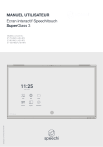 Sommaire 1. Mesures de sécurité 4 1.1. Déplacement et installation de l’écran 4 1.2. Alimentation 4 1.3. Télécommande 4 1.4. Précautions d’utilisation 4 2. Installer l’écran 5 2.1. Déballage de l’écran 5 2.2. Pose de l’écran 6 2.3. Brancher l’alimentation 6 3. Commandes et connectiques 7 3.1. Avant de l’écran 7 3.2. Côtés de l’écran (connectiques) 10 3.3. Télécommande 12 4. Connecter l’écran 14 5. Utiliser l’écran – manipulations principales 17 5.1. Allumer et éteindre l’écran 17 5.2. Se connecter à internet 18 5.2.1. Via câble Ethernet 5.2.2. Via réseau sans fil Wi-Fi 18 18 5.3. Interagir avec l’écran tactile 18 5.4. Barre d’outils latérale 19 5.5. Raccourcis 21 6. Régler l’écran – menu tactile 22 6.1. Accéder au menu de réglages 22 6.2. Menu « Réglage général » de l’écran 23 6.2.1. Changer le canal 6.2.2. Eye Care 6.2.3. Ajuster le volume 6.2.4. Régler la luminosité 6.2.5. Réglages avancés 23 23 23 24 24 7. Interface Android et applications principales 28 7.1. Note 29 7.2. Les barres d’outils principales 29 7.3. Le menu en détails 30 7.4. L’outil sélection en détails 30 7.5. La fonction crayon en détails 31 7.6. La fonction règle 31 7.7. La fonction Aperçu 31 7.8. Finder 32 7.9. Chrome 33 7.10. Bytello Share (application de mirroring) 33 7.11. Applications 34 7.12. Visualiseur 35 7.13. SpeechiStore (inclus) 36 7.14. Interface de visioconférence 37 8. Dépannage 38 8.1. Image et son 38 8.2. Fonction tactile 38 8.3. Matériel 38 8.4. Ordinateur externe 39 9. Entretien 39 1. Mesures de sécurité 1.1. Déplacement et installation de l’écran Ne pas soulever l’écran seul. Assurez-vous d’être accompagné ou équipé d’un chariot pour son transport. A déplacer avec une grande précaution. Ne pas placer sur une surface instable ou inclinée. Ne pas exposer directement aux rayons de soleil ou toute autre source de chaleur. Ne pas installer près de tout appareil pouvant créer des champs magnétiques. Ne pas poser de liquide près ou sur l’écran et faites attention à ne pas en faire couler à l’intérieur ou à l’exposer (pluie, éclaboussure…). Si vous déplacez l’écran d’un lieu froid à un lieu chaud, le débrancher et ne pas l’allumer pendant au moins deux heures pour éviter les risques de moisissures. Ne pas poser d’objet lourd sur l’écran. N’utiliser que des supports et accessoires agréés ou vendus par Speechi. 1.2. Alimentation Vérifier avant toute chose que le voltage de l’appareil est identique à celui de votre source électrique. Utiliser une prise secteur standard avec la mise à terre (prise munie d’une broche en plus des deux ports) pour brancher votre écran. Toute autre utilisation peut vous exposer à des dangers de mort. Eviter tous piétinements et pressions sur le cordon d’alimentation, notamment au niveau de la prise. Débrancher l’écran en cas d’orage ou d’inutilisation longue durée. Ne pas utiliser d’autre câble d’alimentation que celui fourni avec l’écran et ne pas le modifier d’une quelconque manière. Ne pas utiliser le câble d’alimentation de l’écran pour un autre appareil. 1.3. Télécommande Manipuler la télécommande avec précaution : évitez toute chute, tout contact avec du liquide ou une chaleur forte. Vérifier l’absence d’obstacle entre la télécommande et le capteur de l’écran pouvant entraver le signal. Utiliser des piles adaptées et identiques. Ne pas mélanger piles neuves et usées. Remplacer les piles dès que la télécommande ne fonctionne pas ou mal. Retirer les piles si la télécommande n’est pas utilisée pendant longtemps. Ne pas l’écraser. 1.4. Précautions d’utilisation Respecter à la lettre les indications de ce manuel. Conserver le manuel. Ne pas obstruer les fentes de ventilation. Eviter d’installer l’écran interactif ainsi que tout accessoire électronique près de sources de chaleur ou d’humidité. Confiez l’installation de l’écran à un professionnel. © Speechi (29/08/2023) Manuel utilisateur l Ecran interactif SpeechiTouch SuperGlass 3 | HP3 4 2. Installer l’écran 2.1. Déballage de l’écran Déballez intégralement l’écran en vérifiant que tout le contenu indiqué ci-dessous soit présent. S’il manque un élément, veuillez contacter votre revendeur rapidement. Pensez à vérifier que vous avez bien tout sorti de son emballage avant de vous en débarrasser. Pensez à trier les emballages, notamment à recycler le carton. Vous pouvez aussi conserver l’emballage en cas de besoin de transport de l’écran. CONTENU DU PACK : Ecran SpeechiTouch Câbles Câble d’alimentation (3m) x1 Câble USB Touch de Type A-B (3m) x1 Câble HDMI (3m) x1 Autres Piles AAA/LR3 x2 Télécommande x1 Adaptateur plaque support pour caméras © Speechi (29/08/2023) Stylet x2 (pointes différenciées) Guide de démarrage rapide x 1 (FR-EN-DE) En option : module WiFi Manuel utilisateur l Ecran interactif SpeechiTouch SuperGlass 3 | HP3 5 2.2. Pose de l’écran Pour installer l’écran, vous avez d’abord besoin d’un support : fixe ou mobile, inclinable, motorisé ou non… Renseignez-vous sur les différents modèles proposés. Pensez à vérifier que le support soit compatible avec votre écran. Il est vivement conseillé de faire appel à un installateur professionnel qualifié pour ce type de manœuvre. Mal installé, l’écran peut tomber ou mal fonctionner. Laissez un espace d’au moins 15mm à l’arrière de l’écran pour une bonne ventilation. 2.3. Brancher l’alimentation Branchez l’extrémité dans le port alimentation de l’écran et l’autre extrémité (avec la fiche électrique) dans la prise secteur compatible. © Speechi (29/08/2023) Manuel utilisateur l Ecran interactif SpeechiTouch SuperGlass 3 | HP3 6 3. Commandes et connectiques 3.1. Avant des écrans 75’’ et 86’’ © Speechi (29/08/2023) Manuel utilisateur l Ecran interactif Sp