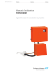 8030775/AE00/V2-0/2017-11 Products Solutions Manuel d’utilisation FWE200DH Appareil de mesure de concentration en poussières Services FWE200DH Produit décrit Nom du produit : FWE200DH Fabricant Endress+Hauser SICK GmbH+Co. KG Bergener Ring 27 01458 Ottendorf-Okrilla Allemagne Informations légales Ce document est protégé par des droits d'auteur. Les droits ainsi obtenus restent acquis à la société Endress+Hauser SICK GmbH+Co. KG. La reproduction complète ou partielle de ce document n'est autorisée que dans les limites des dispositions légales de la loi sur les droits d'auteur. Toute modification, résumé ou traduction de ce document est interdit sans autorisation expresse écrite de la société Endress+Hauser SICK GmbH+Co. KG. Toutes les marques citées dans ce document sont la propriété de leurs propriétaires respectifs. © Endress+Hauser SICK GmbH+Co. KG. Tous droits réservés. Document original Ce document est un document original du fabricant Endress+Hauser SICK GmbH+Co. KG. 2 MA NU EL D’ U T ILI SAT I O N 8030775/AE00/V2-0/2017-11 Endress+Hauser CONTENU Contenu Contenu 1 Informations importantes ........................................................................ 7 1.1 1.2 1.3 1.4 2 Description du produit.............................................................................11 2.1 2.2 2.3 2.4 Endress+Hauser Risques principaux.......................................................................................... 7 1.1.1 Risques dus aux gaz brûlants et/ou agressifs et/ou aux hautes pressions......................................................................................... 7 1.1.2 Risque dû au matériel électrique................................................... 7 1.1.3 Danger dû à un rayonnement laser ............................................... 7 1.1.4 Danger dû à des pièces en mouvement ........................................ 7 Symboles et conventions dans ce document ................................................ 8 1.2.1 Symboles d'avertissement ............................................................ 8 1.2.2 Degrés d'avertissement/Glossaire de signalisation ..................... 8 1.2.3 Symboles des remarques ............................................................... 8 Utilisation normale .......................................................................................... 8 Responsabilité de l'utilisateur ........................................................................ 9 1.4.1 Généralités...................................................................................... 9 1.4.2 Prescriptions de sécurité et mesures de protection ..................... 9 Propriétés du système et domaines d'utilisation ........................................11 2.1.1 Caractéristiques du système et avantages .................................11 2.1.2 Domaines d'utilisation ..................................................................11 Principe de fonctionnement du FWE200DH................................................12 2.2.1 Principe de fonctionnement .........................................................12 2.2.2 Extraction isocinétique .................................................................14 2.2.3 Principe de mesure par diffusion optique ...................................14 2.2.4 Temps d'amortissement ...............................................................15 2.2.5 Fonctions de contrôle automatiques ...........................................15 Composants de l'appareil .............................................................................18 2.3.1 Sonde de mesure..........................................................................18 2.3.2 Bride à tube ..................................................................................18 2.3.3 Tuyau de prélèvement et de tuyau de refoulement ....................19 2.3.4 Armoire de mesure et commande ...............................................19 2.3.4.1 Thermocyclone ..........................................................22 2.3.4.2 Capteur de mesure ...................................................22 2.3.4.3 Armoire de commande .............................................24 2.3.4.4 Fonction étendue d'étalonnage................................26 2.3.5 Soufflerie.......................................................................................27 2.3.6 Options ..........................................................................................27 2.3.6.1 Dispositif de rétro-soufflage .....................................27 2.3.6.2 Tuyau d'aspiration chauffant....................................28 2.3.6.3 Armoire de contrôle à distance ................................28 2.3.6.4 Couvercle inférieur....................................................29 2.3.6.5 Dispositif de test de linéarité ...................................29 SOPAS ET (Programme PC)...........................................................................30 M A NU EL D’ U TI LISA T IO N 8030775/AE00/V2-0/2017.11 3 CONTENU 3 Montage et installation........................................................................... 31 3.1 3.2 3.3 4 Mise en service et paramétrage............................................................ 47 4.1 4.2 4.3 4.4 4 MA NU EL D’ U T ILI SAT I O N 8030775/AE00/V2-0/2017.11 Planification du projet .................................................................................. 31 Montage ........................................................................................................ 32 3.2.1 Monter la bride à tube ................................................................. 32 3.2.2 Montage de l'armoire de mesure et commande,........................ 33 3.2.3 Montage de la soufflerie. ............................................................. 35 3.2.4 Montage de l'option contrôle à distance..................................... 36 Installation ...............................