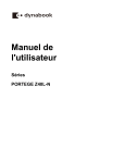 Manuel de l'utilisateur Séries PORTEGE Z40L-N Table des matières Chapitre 1 Mentions légales Copyright, responsabilités et marques ............................................... 1-1 Règlements ............................................................................................ 1-2 Avis concernant les normes vidéo ...................................................... 1-9 OpenSSL Toolkit License Issues ......................................................... 1-9 FreeType License Issues .................................................................... 1-12 Programme ENERGY STAR® ............................................................. 1-15 Mise au rebut de l'ordinateur et de sa batterie ................................. 1-15 Précautions générales ........................................................................ 1-16 Icônes de sécurité ............................................................................... 1-19 Chapitre 2 Prise en main Liste de contrôle de l'équipement ....................................................... 2-1 Conventions ........................................................................................... 2-1 Première utilisation de l'ordinateur ..................................................... 2-2 Prise en main de Windows ................................................................... 2-7 Arrêt de l'ordinateur ............................................................................ 2-10 Récupération du système ................................................................... 2-14 Chapitre 3 Présentation Vue avant écran fermé .......................................................................... 3-1 Vue de gauche ....................................................................................... 3-1 Vue de droite .......................................................................................... 3-3 Retour ..................................................................................................... 3-5 Vue de dessous ..................................................................................... 3-5 Vue avant avec écran ouvert ................................................................ 3-6 Composants matériels internes ......................................................... 3-10 Descriptions des conditions d'alimentation ..................................... 3-12 Chapitre 4 Concepts de base Utilisation de l'écran tactile .................................................................. 4-1 Utilisation du TouchPad ....................................................................... 4-2 Clavier .................................................................................................... 4-4 Utilisation du lecteur d'empreintes ...................................................... 4-7 Batterie ................................................................................................... 4-8 Cartes mémoire ................................................................................... 4-16 Port de sortie HDMI™ ......................................................................... 4-19 Adaptateurs USB Type-C™ ................................................................ 4-20 Manuel de l'utilisateur ii Réseau local ........................................................................................ 4-23 WiDi (Wireless Display) ...................................................................... 4-25 Prise de sécurité .................................................................................. 4-25 Accessoires en option ........................................................................ 4-26 Système audio et mode vidéo ............................................................ 4-27 Chapitre 5 Utilitaires et fonctions avancées Utilitaires et applications ...................................................................... 5-1 Fonctions spéciales .............................................................................. 5-9 Chapitre 6 Résolution des problèmes Processus de résolution des problèmes ............................................ 6-1 Liste de contrôle du matériel et du système ...................................... 6-4 Assistance technique ......................................................................... 6-17 Chapitre 7 Annexe Spécifications ........................................................................................ 7-1 Cordons et connecteurs d'alimentation .............................................. 7-2 Appareils sans fil ................................................................................... 7-3 Informations sur Intel AMT® .............................................................. 7-14 Accessibilité ........................................................................................ 7-18 Options d'ergonomie des ordinateurs portables Dynabook ........... 7-18 Remarques légales .............................................................................. 7-22 Glossaire .............................................................................................. 7-24 Index Manuel de l'utilisateur iii Chapitre 1 Mentions légales Le présent chapitre regroupe les remarques légales et de sécurité qui s'appliquent à votre ordinateur. Copyright, responsabilités et marques Copyright © 2025 Dynabook Inc. Tous droits réservés. Selon la loi du Copyright, le présent guide ne peut pas être reproduit, sous quelque forme que ce soit, sans l'autorisation écrite préalable de Dynabook Inc. Dynabook n'engage aucunement sa responsabilité quant à l'utilisation qui peut être faite des informations contenues dans le présent ouvrage. Première édition : janvier 2025 Les droits d'auteur sur la musique, les films, les programmes informatiques, les bases de données ou toute autre propriété intellectuelle soumise à la législation sur les droit