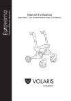 Manuel d'utilisation Important ! Lire attentivement avant l'utilisation. COMPACT Félicitations pour votre nouveau déambulateur ! Veuillez lire attentivement le présent manuel pour pouvoir vous familiariser avec votre nouveau déambulateur. Une utilisation et un entretien appropriés contribuent à une sécurité accrue et à une durée de vie plus longue de votre déambulateur. Le Volaris est un déambulateur stable et facile à manœuvrer. Il peut facilement se replier pour prendre moins de place ou pour la manipulation lors du transport. Le produit peut être équipé de divers accessoires en fonction des besoins personnels. Les déambulateurs Volaris sont développés et fabriqués en Suède pour un meilleur fonctionnement et un niveau de qualité élevé. Utilisation prévue Le déambulateur fournit un soutien lors du déplacement et ne doit être utilisé que comme aide à la marche pour les personnes à mobilité réduite. Le produit peut être utilisé tant à l’intérieur qu’à l’extérieur. Le siège peut être utilisé pour le repos quand le déambulateur est en position stationnaire. Le Volaris (modèles SMART, Discover et Patrol) est destiné à une utilisation par des adultes. Les interventions ou adaptations propres, autres que celles décrites dans le présent manuel, ne sont pas autorisées. Restrictions d’utilisation Le déambulateur ne peut être utilisé par des personnes trop faibles pour marcher ou se tenir debout à l’aide du déambulateur. Le produit ne peut être utilisé par des personnes au poids excédant le poids maximal du modèle spécifique. Normes Les déambulateurs Volaris (modèles SMART, Discover et Patrol) répondent aux exigences de la norme suédoise SS-EN 11199-2:2021 (produits d’assistance à la marche manipulés avec les deux bras). Le Volaris porte le marquage CE et répond aux exigences du règlement (UE) 2017/745 relatif aux dispositifs médicaux. Garantie La garantie est de deux (2) ans, pour les défauts de matériau et vices d’exécution. La garantie est d’un (1) an pour les pièces d’usures, telles que les roues, les freins et les poignées. La garantie suppose que le produit a été utilisé de la façon prévue, conformément au présent mode d’emploi. La durée de vie escomptée est de sept (7) ans si le produit est utilisé conformément aux instructions et aux intervalles de maintenance réguliers. Contact En cas de questions sur le produit et son utilisation, veuillez contacter votre revendeur ou votre service d’assistance. Eurovema Mobility AB Baldersvägen 38, 332 35 Gislaved (Suède) Téléphone : 0371 39 01 00 E-mail : [email protected] Site : www.eurovema.se Consignes de sécurité Avertissement ! Soyez vigilant à l’utilisation afin d’éviter toute blessure corporelle. Important ! Lisez les instructions pour éviter d’endommager le produit. P P Symbole indiquant que le frein de stationnement est serré. Symbole indiquant que le frein de stationnement est desserré. Avertissement ! Le déambulateur doit être en position de stationnement (avec frein de stationnement) quand vous vous asseyez et quand vous vous levez du siège. Avertissement ! Ne jamais utiliser le déambulateur avec une personne assise sur le siège. Important ! Le siège doit être à niveau, c’est-à-dire à la même hauteur de chaque côté quand le déambulateur est replié. 2 Sommaire Utilisation prévue p. 2 Conseils d’utilisation - « châssis confort » p. 8 Garantie p. 2 La « technique du zigzag » p.8 Normes p. 2 Entretien : Contact p. 2 Nettoyage p. 9 Consignes de sécurité p. 2 Remise en état p. 9 Table des matières p. 3 Lubrification du câble p. 9 Marquage p. 3 Dépannage p. 9 Réglage de la hauteur du siège p. 4 Accessoires p. 10-13 Réglage de la hauteur des poignées p. 4 Caractéristiques techniques Dépliage et pliage du déambulateur p. 5 Sangle de transport fixe p. 5 Utilisation des freins p. 6 Réglage des freins p. 6 Réglage du frein à frottement p. 7 Marquage XXX = Nom du produit XXXX-XX-X = Référence Étiquette 3 = Marquage CE = Dispositif médical = Numéro de série = Lire le mode d’emploi = Fabricant/Date de fabrication = Poids max. de l’utilisateur p. 16 Réglez votre déambulateur Réglage de la hauteur d'assise Modifiez un côté à la fois. Tirez sur le bouton sous le siège. Relevez ou abaissez simultanément le siège à la hauteur souhaitée. Veillez à ce que le bouton s’encliquette pour garantir le verrouillage du siège. Répétez l’opération de l’autre côté. Veillez soigneusement à ce que le siège soit à niveau avant d’utiliser le déambulateur. Appuyez sur la plaque centrale du siège. x2 Avertissement ! Ne jamais utiliser le déambulateur avec une personne assise sur le siège. Réglage de la hauteur des poignées Enlevez les déflecteurs éventuels (voir page 9). En tirant sur le bouton, vous pouvez modifier la hauteur des poignées, voir les intervalles à la page 16. Assurez-vous que la poignée de frein est relevée, puis ajustez la hauteur et vérifiez que le bouton reprend sa position (clic audible). Testez le bon fonctionnement du frein après le réglage, avant d'utiliser le déambulateur ! Tenez-vous debout près du déambulateur. La hauteur des poignées est correcte lorsque vos mains sont au niveau de celles-ci. Après un certain temps d'utilisation, vous découvrirez vous-même si vous avez besoin d'ajuster encore votre déambulateur. Vous devez vous sentir à l'aise lorsque vous marchez avec votre Smart. Une butée mécanique de hauteur maximale est prévue. Les trous visibles représentent les intervalles de hauteur. Hauteur des poignées Lorsque vous vous déplacez avec le déambulateur, vous ne devez pas vous pencher et vous devez garder le déambulateur près du corps, marcher le dos droit en regardant devant vous. 4 x2 P Conseils Châssis confort Le déambulateur Volaris est construit sur un Comfort Frame™, un « châssis confort » qui permet