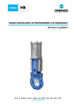 MODÈLE HB MANUEL D'INSTALLATION, DE FONCTIONNEMENT & DE MAINTENANCE HB Vanne à guillotine SPAIN · UK · GERMANY · FRANCE · CANADA · USA · BRAZIL · CHILE · PERU · INDIA · CHINA www.orbinox.com MODÈLE HB MANUEL D'INSTALLATION, DE FONCTIONNEMENT & DE MAINTENANCE HB Vanne à guillotine 0. INTRODUCTION 1. MANIPULATION 2. INSTALLATION 3. COMMANDE 3.1. Volant 3.2. Réducteur 3.3. Pneumatique 3.4. Motorisée 4. ENTRETIEN 4.1. Remplacement de la garniture 4.2. Remplacement du joint torique principal et du joint torique secondaire entre les corps 4.3. Graissage 5. STOCKAGE 6. CONSIDERATIONS ENVIRONNEMENTALES 7. LISTE DES PIÈCES Se réserve le droit de modifier les données à tout moment sans préavis www.orbinox.com . HB_fr_10_2024 2/13 MODÈLE HB 0. INTRODUCTION Le modèle HB est une vanne bidirectionnelle d´utilisation générale pour des fluides chargés de solides en suspension. La conception du corps et du siège assure une fermeture sans obstruction pour fluides chargés de solides. La vanne HB est conforme aux Directives Européennes suivantes : • Directive Machine Quand applicable, la vanne EB est également conforme aux directives suivantes : • Directive Equipement sous Pression • Atmosphères Potentiellement Explosives (ATEX) Il est de la responsabilité de l’utilisateur de vérifier les conditions de travail (PS, TS), fluide (gaz ou liquide) et le groupe de dangerosité (1 ou 2) et si le fluide est instable pour classifier correctement la vanne suivant la directive PED. ORBINOX offre, fournit et certifie les vannes en fonction des informations reçues du client. Le client est tenu de s’assurer que ces informations sont exactes et conformes aux conditions spécifiques de travail où la vanne sera installée. Pour connaître les directives et des certificats UE, veuillez consulter le document : Conformité aux Directives et Certificats - Vannes à Guillotine – Manual d’installation 1. MANIPULATION Les vannes sont emballées conformément aux normes de transport appropriées. Si le paquet que vous recevez est endommagé, veuillez informer la société de transport par lettre et contactez votre représentant ORBINOX. Lors de la manipulation d’une vanne ORBINOX, soyez attentif aux points suivants : • NE FIXEZ PAS L’ENGRENAGE DE LEVAGE AUX POUSSOIRS OU AUX VANNES DE GARDE. Ils ne sont pas conçus pour supporter le poids et peuvent facilement être endommagés • NE SOULEVEZ PAS LA VANNE PAR L’ALÉSAGE DE LA VANNE. Ceci peut endommager les surfaces d’appui et les joints. • Vérifiez que l’engrenage de levage sélectionné soit évalué pour supporter le poids de la vanne. La vanne peut être manipulée à l’aide de boulons à œillet, de sangles élastiques ou d’élingues. Se réserve le droit de modifier les données à tout moment sans préavis www.orbinox.com . HB_fr_10_2024 3/13 MODÈLE HB • BOULONS À ŒILLET : Assurez-vous que les boulons à œillet aient le même filetage que les trous de boulon et qu’ils sont tous solidement fixés. Lors de l’utilisation d’un engrenage de levage pour déplacer une vanne ORBINOX, elle doit être, de préférence, maintenue par deux ou plusieurs boulons à œillet vissés dans les orifices de fixation taraudés • SANGLES ÉLASTIQUES : lorsque la vanne est en position fermée, les sangles doivent être placées entre la zone du presse-étoupe et l’alésage de sorte que la vanne soit équilibrée. Fig. 1 Manipulation avec boulons à œillet Fig. 2 Manipulation avec sangles élastiques VANNES AVEC ACTIONNEUR PNEUMATIQUE (les vannes hors standards doivent être étudiées au cas par cas) Les actionneurs pneumatiques ORBINOX (avec cylindre Ø125 et supérieur) sont fournis avec 2 anneaux de levage pour un manipulation sécurisée de la vanne durant les mouvements verticaux. AVERTISSEMENT sur les manipulations : Les anneaux de levage ne sont pas usinés et peuvent donc présenter des angles vifs ; les sangles ou élingues souples sont interdites d’utilisation avec ces anneaux de levage. Se réserve le droit de modifier les données à tout moment sans préavis www.orbinox.com . HB_fr_10_2024 4/13 MODÈLE HB Le tableau ci-dessous indique le poids maximum de la vanne + vérin pneumatique que les 2 anneaux de levage peuvent supporter en fonction de l’angle de la chaîne de lavage (X) : CYLINDRE 125 160 200 250 300 350 400 Avec 2 anneaux de levage : poids max. vanne + cylindre (kg) L: longueur minimale de la chaine de levage X: 60° X: 75° Kg. Lmin (mm) Kg. Lmin (mm) 170 130 310 220 270 170 500 280 390 220 710 380 740 300 1335 500 1140 360 2030 600 1615 440 2835 720 2105 500 3660 830 • En mouvement horizontal, la vanne doit être soulevée principalement par le corps et le pont. Voir les instructions ci-dessous • Les anneaux de levage du vérin ne peuvent être utilisés que pendant les mouvements horizontaux de la vanne pour aider à équilibrer la vanne, étant donné que le poids est maintenu au point de levage du corps (le centre de gravité est approximativement centré sur le corps) • La vanne peut être abaissée de la verticale à l’horizontale lorsqu’elle est suspendue aux anneaux de levage du vérin La table ci-dessous indique le poids approximatif des vannes pneumatique HB standard (en kg) : DN (mm) DN 80 DN 100 DN 150 DN 200 DN 250 DN 300 DN 350 DN 400 DN 450 DN 500 DN 600 Se réserve le droit de modifier les données à tout moment sans préavis www.orbinox.com . Kg. 20 25 43 86 146 175 235 375 480 750 825 HB_fr_10_2024 5/13 MODÈLE HB 2. INSTALLATION Pour connaître les directives et des certificats UE, veuillez consulter le document : Conformité aux Directives et Certificats - Vannes à Guillotine – Manual d’installation Pour éviter d'éventuels dommages corporels ou matériels lors de la manipulation et de l'installation de la vanne, veuillez respecter les recommandations suivantes : • Il est de la responsabilité du Client de vérifier la compatibilité des matéria