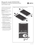 Plateau de console KMMLED185 Installation en rack du commutateur KVM Guide d’installation rapide Le plateau de console LCD à montage en rack 1U vous permet de monter un commutateur de console de serveur derrière le plateau de console LCD dans le même espace 1U. Installation du commutateur KVM du plateau de console LCD REMARQUE : l’espacement minimal des brides selon la norme EIA entre le plateau pour console et le commutateur de console est de 450 mm. 1 1. Retrait des supports existants Retirez tous les supports et entretoises accompagnant le commutateur KVM. 2. Fixation de nouveaux supports 2 Fixez un support de chaque côté du commutateur à l’aide des deux vis fournies pour chaque côté. Reportez-vous à l’image 2 pour connaître le positionnement correct du support. 3. Acheminement des câbles Faites passer les câbles fournis dans le passage de câbles prévu sur le côté du commutateur. Reportezvous à l’image 3 pour connaître le positionnement correct des câbles. 4. Installation du commutateur Depuis l’arrière du rack, poussez le commutateur derrière le plateau de console LCD et fixez-le à l’aide des vis à serrage à main fournies. ALIMENTATION VIDÉO USB 3.0 USB 3.0 USB 2.0 3 590-1567-506B 1 Installation en rack du plateau de console KMMLED185/commutateur KVM Guide d’installation rapide 5. Connexion du commutateur Raccordez le commutateur au plateau de console LCD, puis raccordez les éventuels serveurs ou équipements cibles au commutateur. Exemple de configuration du plateau de console LCD et du commutateur KVM Réseau Informations supplémentaires A translated version of this information is available in the Vertiv™ Rack Mount 18.5” LCD Console Tray for Dell Installer/ User Guide located at https://www. vertiv.com/en-us/support/avocentsupport-dell/. Une version traduite de ces informations est disponible dans le Guide d’installation et d’utilisation du plateau de console LCD 18,5” à montage en rack Vertiv™ pour Dell situé à l’adresse https://www.vertiv.com/enus/support/avocent-support-dell/. この情報の翻訳バージョンは、 「Vertiv™ ラックマウント 18.5 インチ LCD コンソールトレイ(Dell 用)インス トーラー/ユーザーガイド」を参照して ください(https://www.vertiv.com/enus/support/avocent-support-dell/)。 有关本信息的翻译版本,请参阅《适 用于 Dell 的 Vertiv™ 机架式 18.5” LCD 控制台托盘安装人员/用户指南》, 详见 https://www.vertiv.com/en-us/ support/avocent-support-dell/。 有關本資訊的翻譯版本,請參閱《適用 於 Dell 的 Vertiv™ 機架式 18.5” LCD 主控 台托盤安裝/使用指南》,詳見 https:// www.vertiv.com/en-us/support/ avocent-support-dell/。 console LCD Commutateur Dell Ein übersetztes Installations-/ Benutzerhandbuch für das Vertiv™ 18,5-Zoll-LCD-Konsolen-Tray für Dell zur Befestigung im Rack finden Sie unter https://www.vertiv.com/en-us/ support/avocent-support-dell/. Hay una versión traducida de esta información en la guía de uso e instalación de la bandeja de consola LCD con montaje en rack de 18,5 pulg. Vertiv™ para Dell, disponible en https:// www.vertiv.com/en-us/support/ avocent-support-dell/. Plateau de 5 5 Serveur ou équipement cible 이 정보에 대한 번역본은 https://www. vertiv.com/en-us/support/avocentsupport-dell/에 있는 Vertiv™ Rack Mount 18.5” LCD Dell 용 콘솔 트레이 설치자/사용자 설명서에 있습니다. Перевод данной информации доступен в руководстве по установке ЖК-консоли для монтажа в стойку Vertiv™ Rack Mount 18.5” для устройств Dell по ссылке: https:// www.vertiv.com/en-us/support/ avocent-support-dell/. Versi terjemahan informasi ini tersedia dalam Panduan Pengguna/Installer Baki Konsol LCD Rack Mount 18,5” untuk Dell Vertiv™ yang ada di https://www. vertiv.com/en-us/support/avocentsupport-dell/. Pour contacter l’équipe d’assistance technique de Vertiv, consultez le site www.Vertiv.com. © 2021 Vertiv Group Corp. Tous droits réservés. Vertiv™ et le logo Vertiv sont des marques de commerce ou des marques déposées de Vertiv Group Corp. Tous les autres noms et logos mentionnés sont des noms commerciaux, des marques de commerce ou des marques déposées de leurs détenteurs respectifs. Toutes les mesures nécessaires ont été prises afin de garantir l’exactitude et l’exhaustivité des informations contenues dans ce document. Vertiv Group Corp. rejette néanmoins toute responsabilité en cas de dommages découlant de l’utilisation de ces informations ou d’erreurs/omissions quelles qu’elles soient. Les caractéristiques techniques, les remises et autres offres promotionnelles sont susceptibles d’être modifiées à l’entière discrétion de Vertiv, sur avis préalable. 2 590-1567-506B ">