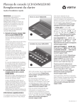 Plateau de console LCD KMMLED185 Remplacement du clavier Guide d’installation rapide REMARQUE : ces instructions concernent uniquement le remplacement des claviers du modèle de plateau de console LCD KMMLED185. Vérifiez le numéro de modèle de votre plateau LCD avant d’essayer de remplacer le clavier en suivant ces instructions. Retrait du clavier KMMLED185 この情報の翻訳バージョンは、 「Vertiv™ ラックマウント 18.5 インチ LCD コンソールトレイ(Dell 用)インス トーラー/ユーザーガイド」を参照して ください(https://www.vertiv.com/enus/support/avocent-support-dell/)。 Ouvrez l’écran de la console pour accéder au clavier du plateau de console KMMLED185. 1. Retrait de l’ancien clavier USB de la console KMMLED185 Sortez le plateau KMMLED185 au maximum et ouvrez l’écran de la console. À l’avant du clavier se trouvent deux ouvertures dans le contour du clavier. Utilisez ces ouvertures pour appuyer vers l’avant sur le bord exposé du clavier et retirez-le de son logement. Une fois le clavier décroché, soulevez son bord avant vers le haut et retirez-le, en veillant à débrancher le câble USB de l’arrière du clavier. En cas de remplacement du clavier uniquement, passez à l’étape 2. -ouEn cas de remplacement du plateau de console et des rails, reportez-vous au guide d’installation et d’utilisation du plateau de console 18,5” à montage en rack Vertiv™ pour Dell. 2. Installation du clavier USB de remplacement de la console KMMLED185 Branchez le câble USB dépassant de l’arrière du logement périphérique à l’arrière du nouveau clavier. Inclinez l’arrière du clavier dans le logement périphérique du clavier du plateau de console. Assurez-vous que le câble USB n’est pas coincé sous le clavier en repoussant l’excédent de câble USB dans l’ouverture périphérique du clavier du plateau de console. Poussez le clavier en position. Informations supplémentaires A translated version of this information is available in the Vertiv™ Rack Mount Une version traduite de ces informations est disponible dans le Guide d’installation et d’utilisation du plateau de console LCD 18,5” à montage en rack Vertiv™ pour Dell situé à l’adresse https://www.vertiv.com/enus/support/avocent-support-dell/. 1 Installation du clavier KMMLED185 有关本信息的翻译版本,请参阅《适 用于 Dell 的 Vertiv™ 机架式 18.5” LCD 控 制台托盘安装人员/用户指南》,详见 https://www.vertiv.com/en-us/support/ avocent-support-dell/。 有關本資訊的翻譯版本,請參閱《適用 於 Dell 的 Vertiv™ 機架式 18.5” LCD 主控 台托盤安裝/使用指南》,詳見 https:// www.vertiv.com/en-us/support/ avocent-support-dell/。 Câble USB 2 18.5” LCD Console Tray for Dell Installer/ User Guide located at https://www. vertiv.com/en-us/support/avocentsupport-dell/. Ein übersetztes Installations-/ Benutzerhandbuch für das Vertiv™ 18,5-Zoll-LCD-Konsolen-Tray für Dell zur Befestigung im Rack finden Sie unter https://www.vertiv.com/en-us/ support/avocent-support-dell/. 이 정보에 대한 번역본은 https://www. vertiv.com/en-us/support/avocentsupport-dell/에 있는 Vertiv™ Rack Mount 18.5” LCD Dell 용 콘솔 트레이 설치자/사용자 설명서에 있습니다. Перевод данной информации доступен в руководстве по установке ЖК-консоли для монтажа в стойку Vertiv™ Rack Mount 18.5” для устройств Dell по ссылке: https:// www.vertiv.com/en-us/support/ avocent-support-dell/. Versi terjemahan informasi ini tersedia dalam Panduan Pengguna/Installer Baki Konsol LCD Rack Mount 18,5” untuk Dell Vertiv™ yang ada di https://www. vertiv.com/en-us/support/avocentsupport-dell/. Hay una versión traducida de esta información en la guía de uso e instalación de la bandeja de consola LCD con montaje en rack de 18,5 pulg. Vertiv™ para Dell, disponible en https:// www.vertiv.com/en-us/support/ avocent-support-dell/. 590-2363-506A 1 Pour contacter l’équipe d’assistance technique de Vertiv, consultez le site www.Vertiv.com © 2021 Vertiv Group Corp. Tous droits réservés. Vertiv™ et le logo Vertiv sont des marques de commerce ou des marques déposées de Vertiv Group Corp. Tous les autres noms et logos mentionnés sont des noms commerciaux, des marques de commerce ou des marques déposées de leurs détenteurs respectifs. Toutes les mesures nécessaires ont été prises afin de garantir l’exactitude et l’exhaustivité des informations contenues dans ce document. Vertiv Group Corp. rejette néanmoins toute responsabilité en cas de dommages découlant de l’utilisation de ces informations ou d’erreurs/omissions quelles qu’elles soient. Les caractéristiques techniques, les remises et autres offres promotionnelles sont susceptibles d’être modifiées à l’entière discrétion de Vertiv, sur avis préalable. 2 590-2363-506A ">