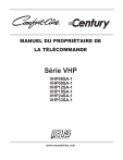 MANUEL DU PROPRIÉTAIRE DE LA TÉLÉCOMMANDE Série VHP VHP06SA-1 VHP09SA-1 VHP12SA-1 VHP18SA-1 VHP24SA-1 VHP33SA-1 www.marsdelivers.com Table des matières Spécifications de la télécommande .............................................. 02 Manipulation de la télécommande ................................................ 03 Boutons et fonctions ..................................................................... 04 Indicateurs de l’écran de la télécommande ................................. 07 Comment utiliser les fonctions de base....................................... 08 Utilisation des autres fonctions .................................................... 10 1 Caractéristiques de la télécommande Modèle RG10R(M2S)/BGEFU1,RG10R(E2S)/BGEFU1, RG10R(F2S)/BGEFU1 Tension rouge 3,0 V (piles sèches R03/LR03×2) Plage de réception du signal 8m Environnement 23–140°F (-5~ 60°C) Guide de démarrage rapide 2 1 3 CHA UFFA GE À SEC ET À INSTALLEZ LES PILES SÉLECTIONNER LE MODE 6 5 APPUYEZ SUR LE BOUTON D’ALIMENTATION POINTEZ LA TÉLÉCOMMANDE VERS L’UNITÉ SÉLECTIONNER LA TEMPÉRATURE 4 SÉLECTIONNEZ LA VITESSE DU VENTILATEUR VOUS N’ÊTES PAS SÛR DE CE QUE FAIT UNE FONCTION? Se référer aux sections utilisation des fonctions de base et utilisation les autres fonctions de ce manuel pour une description détaillée de l’utilisation de votre climatiseur. REMARQUE SPÉCIALE La conception des boutons de votre appareil peut différer légèrement de l’exemple illustré. Si l’élément intérieur n’a pas de fonction particulière, une pression sur la touche de cette fonction de la télécommande n’aura aucun effet. Lorsqu’il y a de grandes différences entre le « manuel du contrôleur à distance » et le « manuel du propriétaire » sur la description de la fonction, la description du « manuel du propriétaire » doit prévaloir. 2 Manipulation de la télécommande Insertion et remplacement des piles Votre unité de climatisation peut être équipée de deux batteries (certaines unités). Placez les piles dans la télécommande avant utilisation. 1. Faites glisser le couvercle arrière de la télécommande vers le bas pour exposer le compartiment à piles. 2. Insérez les piles en veillant à faire correspondre les extrémités (+) et (-) des piles avec les symboles figurant dans le compartiment des piles. 3. Remettez le couvercle en place en le faisant glisser. REMARQUES SUR LA BATTERIE Pour des performances optimales du produit : Ne mélangez pas des piles neuves et des piles usagées, ou des piles de types différents. Ne laissez pas de piles dans la télécommande si vous ne prévoyez pas d’utiliser l’appareil pendant plus de 2 mois. MISE AU REBUT DE LA BATTERIE Ne jetez pas les piles comme des déchets municipaux non triés. Reportez-vous à la législation locale pour la mise au rebut appropriée des batteries. CONSEILS D’UTILISATION DE LA TÉLÉCOMMANDE La télécommande doit être utilisée à moins de 8 mètres de l’appareil. L’appareil émettra un signal sonore à la réception d’un signal à distance. Les rideaux, d’autres matériaux et la lumière solaire directe peuvent interférer avec le récepteur de signal infrarouge. Retirez les piles si vous n’utilisez pas la télécommande pendant plus de 2 mois. REMARQUES SUR L’UTILISATION DE LA TÉLÉCOMMANDE L’appareil peut être conforme aux réglementations locales. • Au Canada, il doit se conformer à la NORME CAN ICES-3(B)/NMB-3(B). • Aux États-Unis, cet appareil est conforme à la partie 15 de la réglementation FCC. Le fonctionnement est soumis aux deux critères suivants : (1) Cet appareil ne doit pas provoquer d’interférences nuisibles, et (2) cet appareil doit accepter toutes les interférences reçues, y compris celles qui pourraient causer un fonctionnement indésirable. Cet équipement a été testé et déclaré conforme aux limites applicables aux appareils numériques de classe B, conformément à la partie 15 de la réglementation FCC. Ces exigences sont conçues pour fournir une protection raisonnable contre les interférences nuisibles dans une installation résidentielle. Cet équipement génère, utilise et peut émettre de l’énergie de fréquence radio et, s’il n’est pas installé et utilisé conformément aux instructions, il peut causer des interférences nuisibles aux communications radio. Cependant, il n’y en a pas de garanti qu’aucune interférence ne se produira dans une installation particulière. Si cet équipement provoque des interférences nuisibles à la réception radio ou télévision, ce qui peut être déterminé en éteignant puis en rallumant l’appareil, nous invitons l’utilisateur à essayer de corriger les interférences en prenant une ou plusieurs des mesures suivantes : Réorientez ou déplacez l’antenne de réception. Augmentez l’espace de séparation entre le matériel et le récepteur. Branchez l’équipement sur une prise d’un circuit différent de celui sur lequel le récepteur est branché. Consultez votre revendeur ou un technicien radio/TV expérimenté pour obtenir de l’aide. Les changements et modifications non approuvés par la partie responsable de la conformité pourraient annuler l’autorité de l’utilisateur pour utiliser l’équipement. 3 Boutons et fonctions Avant de commencer à utiliser votre nouveau climatiseur, assurez-vous de vous familiariser avec sa télécommande. Voici une brève introduction à la télécommande. Pour les instructions sur la manière de faire fonctionner votre climatiseur, consultez la section Utilisation des fonctions de base de ce manuel. MODE Fait défiler les modes de fonctionnement comme suit : AUTO COOL DRY HEAT FAN Remarque : Le mode CHAUFFAGE (HEAT) n’est pas supporté par un appareil qui refroidi seulement. ON/OFF (MARCHE/ARRÊT) Permet d’allumer ou d’éteindre l’appareil. TEMP (TEMPÉRATURE) Augmente la température par échelons de 1 °C (1 °F).