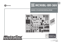 MC90BL-BR-36V MANUEL UTILISATEUR/INSTALLATEUR LED ENC ANT MENU UP CMD DW LINK PWR A B GND V+ Y R G B SEC 2 SEC 1 BAT LMP U V W MOT +12V- + R G B LO LS FO FC LE LA LB LO LS FO FC LE LA LB TS V+ v1.1 REV. 05/2025 Versions hardware compatibles: HW 0.1.0 FR 00. CONTENU 01. AVIS DE SÉCURITÉ INDEX 01. AVIS DE SÉCURITÉ DES NORMES À SUIVRE Ce produit est certifié selon les normes de sécurité de la Communauté Européenne (CE). 1B 02. CENTRALE CARACTÉRISTIQUES TECHNIQUES LÉGENDE DES CONNECTEURS BOUTONS ET LEDS Ce produit est conforme à la directive 2011/65/ UE du Parlement européen et du Conseil sur la limitation de l’utilisation de certaines substances dangereuses dans les équipements électriques et électroniques et à la directive déléguée (UE) 2015/863 de la Commission. 4A 4B 5A 03. INSTALLATION INSTALLATION DU MCONNECT LINK (OPTIONNEL) ÉTAPES ESSENTIELLES À L'INSTALLATION 5B 6A 04. PROGRAMMATION TÉLÉCOMMANDES (Applicable dans les pays avec des systèmes de recyclage). Ce marquage sur le produit, ou de la littérature indique que le produit et les accessoires électroniques (ex. Chargeur, câble USB, le matériel électronique, les télécommandes, etc.) ne doivent pas être jeté avec les autres déchets ménagers à la fin de sa vie utile. Pour éviter des éventuels dommages à l’environnement ou à la santé humaine provenant de l’élimination incontrôlée des déchets, nous vous prions de séparer ces éléments des autres types de déchets et à les recycler de façon responsable pour promouvoir la réutilisation durable des ressources matérielles. Les particuliers doivent contacter un revendeur où ils ont acheté ce produit ou une Agence de l’Environnement National, pour savoir où et comment ils peuvent prendre ces articles pour leur recyclage. Les utilisateurs professionnels doivent contacter leur fournisseur et vérifier les termes et conditions du contrat d’achat. Ce produit et ses accessoires électroniques ne doivent pas être mélangés avec d’autres déchets commerciaux. 6B 7A 7B 11A 11B FONCTIONS MENU P PROGRAMMATION P FONCTIONS MENU E PROGRAMMATION E 05. AFFICHAGE INDICATIONS D'AFFICHAGE 15 BARRIÈRE MODULE MM90-RGB MAÎTRE / ESCLAVE (OPTIONNEL) 16 17A 17B 06. SCHÉMAS DE RACCORDEMENT 07. DÉPANNAGE INSTRUCTIONS POUR LES CONSOMMATEURS FINAUX/TECHNIQUES 18 Déclaration de conformité UE simplifiée Ce marquage indique que les piles ne doivent pas être jetées comme les autres déchets ménagers à la fin de leur vie utile. Les piles doivent être remises pour recyclage à des points de collecte distincts. Le soussigné MOTORLINE ELECTROCELOS, S.A., dont le siège social est situé Travessa do Sobreiro, n.º 29, 4755-474 Rio Côvo (Santa Eugénia), Barcelos, déclare par la présente que ce type d'équipement radio - MC90BL-BR Centrale électronique - est conforme à la directive 2014/53/UE. Les différents types d’emballages (carton, plastique, etc.) doivent être collectés séparément pour être recyclés. Séparez les emballages et recyclez-les de manière responsable. Ce marquage indique que le produit et les accessoires électroniques (ex. Chargeur, câble USB, les équipements électroniques, les télécommandes, etc.), sont soumis à des décharges électriques. Soyez prudent lors de la manipulation du produit et suivre toutes les règles de sécurité indiquée dans cette notice. Le texte intégral de la déclaration de conformité est disponible à l'adresse internet suivante: https://motorline.pt/certification/mc90bl 1A FR FR 1B 01. AVIS DE SÉCURITÉ AVERTISSEMENTS GÉNÉRAUX • Ce manuel contient des informations importantes sur la sécurité et l’utilisation. Lisez attentivement toutes les instructions avant de commencer les procédures d’installation / d’utilisation et conservez ce manuel dans un endroit sûr, où vous pourrez le consulter à tout moment. • Ce produit est destiné à être utilisé uniquement comme décrit dans ce manuel. Toute autre application ou opération non prise en compte est expressément interdite car elle pourrait endommager le produit et / ou mettre les personnes en danger de causer des blessures graves. • Ce manuel s’adresse principalement aux installateurs professionnels et n’empêche pas l’utilisateur de lire la section “Normes d’utilisation” afin de garantir le fonctionnement correct du produit. • L’installation et la réparation de cet équipement doivent être effectuées que par des techniciens qualifiés et expérimentés, en veillant à ce que toutes ces procédures soient effectuées en conformité avec les lois et les réglementations en vigueur. Il est expressément interdit aux utilisateurs non professionnels et inexpérimentés de prendre des mesures sauf sur demande expresse de techniciens spécialisés. • Les installations doivent être fréquemment inspectées afin de détecter tout déséquilibre et toute trace d’usure ou de détérioration des câbles, des ressorts, des charnières, des roues, des supports ou de tout autre élément d’assemblage mécanique. • N’utilisez pas l’équipement si une réparation ou un réglage est nécessaire. • Lors de la maintenance, du nettoyage et du remplacement de pièces, le produit doit être débranché de l’alimentation électrique. Cela inclut également toute opération nécessitant l’ouverture du capot du produit. • L’utilisation, le nettoyage et la maintenance de ce produit peuvent être effectués par des personnes âgées de huit ans et plus et des personnes dont les capacités physiques, sensorielles ou mentales sont réduites, ou par des personnes ignorant le fonctionnement du produit, à condition qu’elles aient supervision ou des instructions données par des personnes expérimentées dans l’utilisation du produit de manière sûre et qui comprennent les risques et les dangers encourus. • Les enfants ne doivent pas jouer avec le produit ou des dispositifs d’ouverture afin d