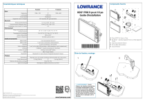 Composants fournis Caractéristiques techniques 9 pouces 10 pouces 1280 x 720 1280 x 800 Écran Résolution Luminosité >1200 nits Écran tactile Multitouch Angles de vision en degrés A B HDS® PRO 9 po et 10 po Guide d'installation 80° haut/bas, 80° gauche/droite Électricité Tension d'alimentation 12 V CC (10,8 - 18 V CC) Consommation d'énergie (max.) 40 W (2,9 A à 13,8 V CC) Ampérage recommandé du fusible 3A C D E Environnement Plage de températures de fonctionnement De -15 °C à 55 °C (de 5 °F à 131 °F) Température de stockage De -30 °C à 70 °C (de -22 °F à 158 °F) Indice d'étanchéité IPX6 et IPX7 Chocs et vibrations 100 000 cycles de 20 G A Écran HDS® Pro 9 po ou 10 po B Kit d'étrier – plastique (appareil 9 po) ou métal (appareil 10 po) C Capot de protection d'écran D Kit de câble d'alimentation E Documentation Interface/Connectivité NMEA 2000® 1 port (connecteur Micro-C) NMEA 0183 1 port (via le connecteur d'alimentation) ® Sondeur Vidéo analogique 2 ports (connecteur à 9 broches) 1 port (via le câble d'alimentation, câble adaptateur vendu séparément) Ethernet *988-13116-001* 100BASE-T, 2 ports (connecteur à 5 broches) Lecteur de carte 2 lecteurs (microSD® SDXC) Wi-Fi® 802.11b/g/n interne Bluetooth® Bluetooth® 5.2 avec prise en charge de Bluetooth® Classic Dimensions Reportez-vous à la section Schémas dimensionnels de ce document Étrier de fixation, montage Physique Poids (écran seul) 1,39 kg (3,06 lb) Distance de sécurité au compas Type de montage 1,66 kg (3,66 lb) 1 2 65 cm (2,1 ft) Montage sur tableau de bord ou sur étrier 3 Version du document : 001 ®Reg. U.S. Pat. & Tm. Off et ™ marques de droit commun. Rendez-vous sur www.navico.com/intellectual-property pour consulter les droits de marque de Navico Holding AS et des entités subsidiaires dans le monde. Copyright © 2023 Navico Holding AS www.lowrance.com ⚠AVERTISSEMENT : Portez toujours des lunettes de protection, un masque antipoussière et des protections auriculaires appropriés lors des opérations de perçage, de découpe ou de ponçage. N'oubliez pas de vérifier l'envers de toutes les surfaces lors du perçage ou de la découpe. Câblage Alimentation, NMEA 0183® et vidéo A Alimentation, NMEA 0183® et vidéo — connecteur à 10 broches B Sondeur 1 — connecteur à 9 broches (écrou bleu) C Sondeur 2/imagerie — connecteur à 9 broches (écrou noir) D Ethernet — connecteur à 5 broches E NMEA 2000® — connecteur Micro-C E D D A B 7 10 8 C 6 9 5 1 2 ¼ Remarque : Cette illustration indique des exemples NMEA 0183® L'appareil dispose d'une interface série NMEA 0183® intégrée qui fournit à la fois une entrée et une sortie. Ce type de port utilise la norme NMEA 0183® (équilibrage en série) et peut être configuré dans le logiciel avec différents débits, allant jusqu'à 38 400 bauds. 3 Émetteurs et récepteurs Un seul émetteur (périphérique de sortie) peut être connecté à une entrée de série (RX) de l'appareil, conformément au protocole NMEA 0183®. Cependant, un port de sortie (TX) sur l'appareil peut être connecté à un maximum de trois appareils récepteurs, selon la configuration matérielle du récepteur. 4 Prise de l'appareil (femelle) de branchement. Les accessoires et les appareils supplémentaires sont vendus séparément. Broche Fonction 4 9 5 2 8 1 3 7 6 1 Réveil accessoire 2 Récepteur B (Rx_B) 3 Entrée vidéo + 4 Émetteur B (Tx_B) 5 Drainage 6 Émetteur A (Tx_A) 7 +12 V CC 8 CC négatif 9 Entrée vidéo - 10 Récepteur A (Rx_A) Entrée vidéo L'appareil peut être connecté à une source vidéo composite et afficher des images vidéo sur son écran. ¼ Remarques : • Les câbles de caméra ne sont pas fournis et doivent être sélectionnés pour s'adapter : RCA sur l'appareil, et en général fiche BNC ou RCA du côté caméra. • Le partage des images vidéo n'est pas possible avec un autre appareil via le réseau. Il est uniquement possible de visualiser une vidéo sur l'unité connectée à la source vidéo. • Les formats NTSC et PAL sont tous les deux pris en charge. ¼ Remarque : Pour utiliser la fonctionnalité d'entrée vidéo, un câble adaptateur doit être utilisé : SKU 000-11010-001 (vendu séparément). Configuration de l'entrée vidéo La configuration de l'entrée vidéo s'effectue dans la fenêtre vidéo. Pour plus de détails, reportez-vous au manuel d'utilisation en ligne : www.lowrance.com/downloads/hdspro Dimensions 308.0 mm (12.13”) 13.0 mm (0.51”) 280.0 mm (11.02”) Fonction Couleur 1 +12 V DC Rouge 2 CC négatif Noir 3 Fusible - 4 Réveil de l'accessoire ou synchronisation ping Jaune 5 Émetteur NMEA 0183 A (Tx_A) Jaune 6 Émetteur NMEA 0183® B (Tx_B) Bleu 7 Récepteur NMEA 0183® A (Rx_A) Orange 8 Récepteur NMEA 0183 B (Rx_B) Vert 9 Masse NMEA 0183 (blindage) - ® ® ® Sondeur 1 - écrou bleu (B) Prend en charge les technologies et fréquences de sondeur suivantes : Sondeur 2/imagerie - écrou noir (C) Prend en charge les technologies et fréquences de sondeur suivantes : • Sondeur : CHIRP basse, moyenne et haute jusqu'à 1 kW. • Downscan : 455 kHz, 800 kHz CHIRP : 700 kHz et 1200 kHz • SideScan : 455 kHz, 800 kHz CHIRP : 455 kHz et 1075 kHz Ethernet (D) Ethernet est utilisé pour connecter des appareils tels que les radars, les écrans et les modules de sondeur tels qu'ActiveTarget®2 ou S3100. Branchez un appareil directement au port Ethernet ou utilisez un dispositif d'extension réseau pour brancher plusieurs appareils. NMEA 2000® (E) Le port NMEA 2000® prend en charge le partage de données entre les sources connectées et est adapté aux compas, aux calculateurs de moteurs, et à d'autres capteurs. 166.7 mm (6.56”) Sondeur : CHIRP basse, moyenne et haute jusqu'à 1 kW. Downscan : 455 kHz, 800 kHz CHIRP : 700 kHz et 1200 kHz 73.1 mm (2.88”) 93.7 mm (3.69”) 103.22 mm (4.06”) Appareil 10 pouces 325.44 mm (12.8”) 105.40 mm (4.2”) 294.61 mm (11.6”) 82.57 mm (3