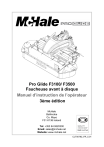 Pro Glide F3100/ F3500 Faucheuse avant à disque Manuel d’instruction de l’opérateur 3ème édition McHale Ballinrobe Co. Mayo F31 K138 Ireland Tel: +353 94 9520300 Email: [email protected] Website: www.mchale.net ISO 9001:2015 5 CLT00792_FR_5.01 ENVIRONNEMENT : Réduire la consommation de papier Réfléchissez avant d’imprimer des documents ! Est-ce qu’un PDF sur un ordinateur portable ou une tablette n’est pas suffisant ? Si une copie papier est nécessaire, sélectionnez toujours « Imprimer des deux côtés de la feuille » et essayez toujours de limiter le nombre de pages imprimées en sélectionnant un nombre de pages spécifique ou sélectionnez simplement « Page active » si cela suffit. Ceci est le manuel de l’opérateur original contenant les « instructions d’origine ». La version anglaise du manuel de l’opérateur est le document source pour toutes les traductions. En cas de conflit quant à l’exactitude ou à la teneur de toute traduction, le manuel source anglais reste le document agréé. Aucune partie de ce manuel ne peut être reproduite, distribuée ou traduite, sous quelque forme ou par quelque moyen que ce soit, sans l'autorisation écrite préalable de McHale. McHale Pro Glide F3100/ F3500 Faucheuse avant à disque Nous vous remercions d'avoir acheté cette machine McHale. Vous avez fait le meilleur choix ! Avec des soins et l’attention appropriés, cette machine vous assurera des années de service, en toute sécurité. Garantie Avertissement à l’utilisateur final ! Veuillez vous assurer que votre machine a été dûment enregistrée auprès de McHale. par votre concessionnaire, au moment de la livraison. Si le concessionnaire n’a pas enregistré la machine, votre garantie est alors nulle ! Vous pouvez contrôler l'enregistrement de votre machine en vous rendant à l'adresse www.mchale.net. Il est important de faire référence au numéro de série de la machine lors de la commande de pièces de rechange ou d’une demande d’assistance technique. Un emplacement ci-dessous est réservé pour noter les informations concernant votre machine. (Voir ‘Description de la plaque de numéro de série’) Numéro de série : Année de fabrication : Date de livraison : Si vous avez besoin d’exemplaires supplémentaires de ce manuel d’instruction, indiquez la référence suivante: CLT00792_FR En raison de sa politique de développement et d'amélioration continus des produits, McHale Engineering se réserve le droit de modifier sans préavis les caractéristiques de ses machines ainsi que le contenu du présent manuel, sans que cela n'entraîne d'obligation de modification ou de mise à niveau des machines déjà vendues. L’apparence des images et captures d’écran utilisées dans ce manuel peut différer de celle du produit réel. Il est vital de remplacer immédiatement toute pièce défectueuse et de n'utiliser que des pièces de rechange McHale d'origine car celles-ci ont été conçues et fabriquées selon la même spécification que la machine d'origine. Vous pouvez obtenir les pièces de rechanges auprès de votre concessionnaire McHale. Ce manuel contient de nombreux liens de références internes permettant d’accéder à d’autres sections pertinentes. Ils permettent au lecteur de consulter des informations complémentaires qui faciliteront sa compréhension générale d’un thème. Ces liens sont au format suivant : (texte en italique et gris). Voyez par exemple le lien ci-dessus vers la description de la plaque de numéro de série. Lorsque vous cliquez sur un de ces liens dans le document PDF, vous passez automatiquement à la section correspondante. Le logiciel Adobe Reader vous permet de revenir à la page que vous consultiez initialement en cliquant sur le bouton « Précédente » (ou en appuyant sur la combinaison de touches de votre clavier ALT + flèche vers le bas). 3 McHale Pro Glide F3100/ F3500 Faucheuse avant à disque Table des matières 4 1 Introduction 6 2 Informations sur le produit 2.1 Utilisation prévue de la machine 2.2 Vue de face 2.3 Spécifications générales 2.4 Caractéristiques du tracteur 2.5 Caractéristiques de la machine 7 7 8 9 9 9 3 Règles générales de sécurité 3.1 Soyez au courant de toutes les consignes de sécurité 3.2 Suivez toutes les consignes de sécurité 3.3 Stockez toutes les pièces soigneusement 3.4 Équipements de protection individuelle (EPI) 3.5 En cas d’urgence 3.6 Éloignez-vous des pièces en rotation 3.7 Critères relatifs aux opérateurs qualifiés 3.8 Utilisation de la machine 3.9 En cas d’incendie 3.10 Consignes générales de sécurité 10 10 10 11 11 11 11 12 12 13 13 4 Consignes de sécurité spécifiques 4.1 Consignes de sécurité relatives à l’hydraulique 4.2 Niveau sonore 4.3 Précautions contre les incendies 4.4 Dispositifs de sécurité spéciaux et consignes 4.5 Emplacement des autocollants portant des consignes de sécurité 4.6 Description des avertissements et des instructions de sécurité 4.7 Description de la plaque de numéro de série 4.8 Recommandations pour soulever la machine 18 18 18 19 19 20 21 24 25 5 Exigences et préparation concernant le tracteur 5.1 Caractéristiques requises du tracteur 5.2 Fixation à l’attelage 5.3 Fixation de la machine à un axe de prise de force de 1 000 tr/min 5.4 Raccordements au tracteur 5.5 Système d’éclairage 26 26 26 27 28 28 6 Exigences et préparation concernant la machine 6.1 Loquet de capot de protection latéral (côté gauche et côté droit) 6.2 Loquet de sécurité du capot 6.3 Remplacement des lames 6.4 Huile pour boîte vitesse 6.5 Béquilles 6.6 Réglage et entretien de l’arbre de prise de force 29 29 30 30 33 36 37 7 Sécurité et circulation sur la voie publique 7.1 Avant d’emprunter une voie publique 38 38 McHale Pro Glide F3100/ F3500 Faucheuse avant à disque 8 Mise en œuvre sur site et réglages de la machine 8.1 Hauteur de coupe 8.2 Réglage du conditionneur 8.3 Réglage d