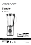 Blender GT-SF-HPB-01 ans GARANTIE SAV 01 40 82 92 26 (gratuitement) Mail : gt-support @zeitlos-vertrieb.de AN FR 200605019850 21/2025 NOTICE D’UTILISATION 21/2025 AN FR 200605019850 PO51033050 Sommaire Sommaire 2 Généralités Introduction Déclaration de conformité UE Utilisation conforme 3 3 3 3 Composants / Contenu de l’emballage Sécurité Consignes générales de sécurité Risques pour les enfants et les personnes dont les facultés sont limitées Risques liés à l’utilisation d’appareils électriques Risques liés à l’utilisation du blender Explication des symboles et autres informations 2 Installation et montage Avant la première utilisation 11 11 Utilisation Utilisation de l’appareil Préparation de « glace pilée » Délicieux cocktails faits maison 12 12 14 15 4 Pannes et solutions 18 5 5 Maintenance, nettoyage et entretien 19 Données techniques 21 Recyclage 21 Carte de garantie 23 5 6 7 10 Généralités Introduction Nous vous remercions d’avoir choisi le blender Ambiano. Vous venez d’acquérir un produit de qualité qui satisfait aux normes de performance et de sécurité les plus élevées. Afin de manipuler correctement l’appareil et de garantir sa longévité, nous vous recommandons de respecter les indications suivantes. Veuillez lire attentivement cette notice d’utilisation et notamment les consignes de sécurité avant la mise en service de l’appareil. Vous y trouverez un certain nombre de recommandations importantes et utiles qui doivent être comprises et observées par tous les utilisateurs avant la mise en service. Conservez cette notice d’utilisation et donnez-la avec l’appareil si vous le remettez à une autre personne. Déclaration de conformité UE La conformité du produit aux normes prescrites par la loi est garantie. Vous trouverez la déclaration de conformité intégrale sur Internet sous www.gt-support.de. L’appareil répond aux exigences de la loi sur la sécurité des produits. Ceci est prouvé par le sigle GS de l’institut de contrôle indépendant : Utilisation conforme L’appareil est conçu exclusivement pour mixer des fruits, des légumes, des herbes, etc. et pout la préparation de sauces ou de cocktails ou pour piler de la glace. De plus, l’appareil n’est pas destiné à une utilisation professionnelle mais uniquement à une utilisation privée. Il ne peut être utilisé par les employés de magasins, bureaux et autres établissements industriels, dans les propriétés agricoles, ou par les clients d’hôtels, motels et autres types d’hébergement comme les chambres d’hôtes. Toute autre utilisation ou modification de l’appareil n’est pas conforme et est strictement interdite. Nous ne pouvons être tenus responsables des dommages survenus à la suite d’une utilisation non conforme ou incorrecte. Éditeur de la notice : Globaltronics GmbH & Co. KG Bei den Mühren 5 20457 Hamburg Allemagne [email protected] 3 Composants / Contenu de l’emballage E D F A C B A) Unité motrice B) Régulateur de vitesse C) Position « P » pour un fonctionnement par impulsion D) Couvercle de sécurité E) Couvercle de l’orifice de remplissage avec verre doseur de « 40 ml » / « 60 ml » / « 80 ml » intégré 4 F) Bol mixeur d’une capacité de 1,75 l G) Notice d’utilisation et carte de garantie (non illustrées) Sous réserve de modifications techniques et visuelles. Sécurité Veuillez lire et respecter les consignes de ­sécurité énoncées ci-après. Le non-respect de ces consignes peut engendrer des risques d’accident et de blessures, ainsi que des dommages matériels ou des dysfonctionnements de l’appareil. Consignes générales de sécurité Risques pour les enfants et les personnes dont les facultés sont limitées - Les personnes dont les facultés physiques, sensorielles ou mentales sont réduites ou les personnes manquant d’expérience et de connaissances sont autorisées à utiliser cet appareil, à condition d’être surveillées ou d’avoir été instruites quant à son usage sûr et d’avoir compris les dangers résultant d’une utilisation incorrecte. - Cet appareil ne peut pas être utilisé par les enfants. Conservez cet appareil et son câble électrique hors de portée des enfants. - Les enfants ne doivent pas jouer avec l’appareil. Les enfants ne sont pas conscients du danger inhérent à l’utilisation d’appareils électriques. Par conséquent, utilisez et conservez l’appareil hors de portée des enfants. Ne laissez pas pendre le cordon électrique afin d’éviter que quelqu’un ne tire dessus. - Conservez l’emballage hors de portée des enfants Risque d’asphyxie ! 5 Risques liés à l’utilisation d’appareils électriques - Branchez l’appareil uniquement sur une prise secteur installée de manière conforme et dont la tension de secteur respecte la plaque signalétique. - Si le câble d‘alimentation de l’appareil est endommagé, il doit être remplacé par le fabricant ou son service après-vente ou par une personne de qualification similaire afin d’éviter toute mise en danger. - Seuls des ateliers spécialisés et habilités sont autorisés à effectuer les réparations. Les appareils réparés par un personnel non spécialisé représentent un danger pour l’utilisateur. - Éteignez toujours l’appareil et débranchez-le lorsque vous le laissez sans surveillance, lorsque vous montez ou retirez les accessoires, ou avant de le nettoyer. Pour débrancher, tirez toujours au niveau de la fiche et non au niveau du cordon ! Risque d’électrocution ! - Afin d’éviter tout accident, n’utilisez jamais la même prise secteur pour brancher simultanément plusieurs appareils ménagers (par exemple sur une triplite). - Ne plongez jamais l’appareil dans l’eau et ne l’utilisez pas en plein air, car ce dernier ne doit en aucun cas être exposé à la pluie ou à l’humidité – Risque d’électrocution ! - Si l’appareil venait à tomber dans l