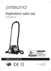 Aspirateur sans sac GT-SF-BVC-01 ans GARANTIE SAV 01 40 82 92 26 (gratuitement) Mail : gt-support @zeitlos-vertrieb.de AN FR 2006050198474 18/2025 NOTICE D’UTILISATION 18/2025 AN FR 2006050198474 PO51033043 Sommaire Sommaire 2 Généralités Introduction Déclaration de conformité UE Utilisation conforme 3 3 3 3 Composants / Contenu de l’emballage Sécurité Risques pour les enfants et les personnes dont les facultés sont limitées Risques liés à l’utilisation d’appareils électriques Risques liés à l’utilisation de l’aspirateur sans sac Explication des symboles et autres informations 2 4 7 Maintenance, nettoyage et entretien Nettoyage de l’appareil Nettoyage du suceur pour sol Vidage du réservoir à poussière Nettoyage du filtre à poussière grossière Nettoyage du filtre à poussière fine Nettoyage du filtre de sortie d’air Rangement 18 19 19 19 20 21 22 23 Données techniques 24 Recyclage 24 Carte de garantie 27 7 8 10 12 Installation et montage Avant la première utilisation Montage 13 13 13 Utilisation Quel suceur pour quelle utilisation ? Mise en service de l’appareil Utilisation de l’appareil 14 Pannes et solutions 17 14 15 15 Généralités Introduction Nous vous remercions d’avoir choisi l’aspirateur sans sac Ambiano. Vous venez d’acquérir un produit de qualité qui satisfait aux normes de performance et de sécurité les plus élevées. Afin de manipuler correctement l’appareil et de garantir sa longévité, nous vous recommandons de respecter les indications suivantes. Veuillez lire attentivement cette notice d’utilisation et notamment les consignes de sécurité avant la mise en service de l’appareil. Vous y trouverez un certain nombre de recommandations importantes et utiles qui doivent être comprises et observées par tous les utilisateurs avant la mise en service. Conservez cette notice d’utilisation et donnez-la avec l’appareil si vous le remettez à une autre personne. Déclaration de conformité UE La conformité du produit aux normes prescrites par la loi est garantie. Vous trouverez la déclaration de conformité intégrale sur Internet sous www.gt-support.de. L’appareil répond aux exigences de la loi sur la sécurité des produits. Ceci est prouvé par le sigle GS de l’institut de contrôle indépendant : Utilisation conforme L’appareil est exclusivement conçu pour aspirer de la saleté sèche dans des pièces sèches. De plus, l’appareil n’est pas destiné à une utilisation professionnelle mais uniquement à une utilisation privée. Toute autre utilisation ou modification de l’appareil n’est pas conforme et est strictement interdite. Nous ne pouvons être tenus responsables des dommages survenus à la suite d’une utilisation non conforme ou incorrecte. Cet appareil n’est pas adapté pour aspirer : - des matériaux argileux, du plâtre, du ciment, de la poussière de pierre, de la poussière de perçage, des substances toxiques ou explosives ; - des cendres incandescentes, des cigarettes ou allumettes allumées ; - des objets pointus comme des éclats de verre ; - des liquides ! Éditeur de la notice : Globaltronics GmbH & Co. KG Bei den Mühren 5 20457 Hamburg, Allemagne [email protected] 3 Composants / Contenu de l’emballage E B A C L M P R Q S F I G H O K 4 J N M P Q S R 5 A) Réservoir à poussière B) Filtre à poussière grossière C) Clapet du réservoir à poussière D) Bouton de déverrouillage du clapet du réservoir à poussière (voir p. 20) E) Poignée F) Bouton de déverrouillage du réservoir à poussière G) Bouton Marche/Arrêt H) Bouton d’enroulement du câble I) Régulateur de puissance J) Cordon électrique et prise secteur K) Orifices de sortie d’air et cache de protection pour le filtre de sortie d’air F) Orifice du tuyau d’aspiration M) Tuyau d’aspiration avec poignée N) Clapet d’air secondaire O) Position parking P) Manche télescopique, réglable Q) Suceur pour sol R) Commande au pied S) Suceur biseau/brosse T) Notice d’utilisation et carte de garantie (non illustrées) Sous réserve de modifications techniques et visuelles. 6 Sécurité Veuillez lire et respecter les consignes de ­sécurité énoncées ci-après. Le non-respect de ces consignes peut engendrer des risques d’accident et de blessures, ainsi que des dommages matériels ou des dysfonctionnements de l’appareil. Consignes générales de sécurité Risques pour les enfants et les personnes dont les facultés sont limitées - Les enfants âgés de plus de 8 ans et les personnes dont les facultés physiques, sensorielles ou mentales sont limitées ou les personnes manquant d’expérience et/ ou de connaissances sont autorisés à utiliser cet appareil, à condition qu’ils soient surveillés ou qu’ils aient été instruits quant à son usage sûr et qu’ils aient compris les dangers en résultant. - Le nettoyage et l’entretien de l’appareil ne doivent pas être effectués par des enfants de moins de 8 ans. Passé cet âge, les enfants peuvent réaliser ces opérations s’ils sont surveillés. Les enfants de moins de 8 ans doivent être tenus à distance de l’appareil et du cordon. - Les enfants ne doivent pas jouer avec l’appareil. Les enfants ne sont pas conscients du danger inhérent à l’utilisation d’appareils électriques. Par conséquent, utilisez et conservez l’appareil hors de portée des enfants de moins de 8 ans. 7 - Conservez l’emballage hors de portée des enfants – Risque d’asphyxie ! Risques liés à l’utilisation d’appareils électriques - Branchez l’appareil uniquement sur une prise secteur avec terre, installée de manière conforme et dont la tension de secteur respecte la plaque signalétique. - Si le cordon électrique est endommagé, seul un atelier spécialisé désigné par le constructeur est autorisé à le remplacer afin d’éviter tout risque de blessure, d’accident ou de dégâts à l’appareil. - Veillez à ce que la prise secteur 