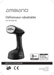 Défroisseur rabattable GT-SF-GSF-03 ans GARANTIE SAV 01 40 82 92 26 (gratuitement) Mail : gt-support @zeitlos-vertrieb.de 19/2025 N° article : 5011948 NOTICE D’UTILISATION 19/2025 AN FR 2006050119486 AN DE 2009010175027 PO51032982 Sommaire 2 Sommaire 2 Généralités Introduction Déclaration de conformité UE Utilisation conforme 3 3 3 3 Composants / Contenu de l’emballage 4 Sécurité Consignes de sécurité Risques pour les enfants et les personnes dont les facultés sont limitées Danger pour les enfants et un cercle élargi de personnes Feu, risque de brûlure et/ou d‘ébouillantage ! Risque d’endommagement ! Explication des symboles et autres informations 5 5 Installation et montage 10 Utilisation Défroissage vapeur Repassage vapeur Nettoyage et soins 11 11 14 15 Dépannage 16 Données techniques 17 Recyclage 18 Carte de garantie 19 7 7 8 8 9 Généralités Introduction Nous vous remercions d’avoir opté pour l’achat de ce défroisseur rabattable de la marque Ambiano. Vous venez d’acquérir un produit de qualité qui satisfait aux normes de performance et de sécurité les plus élevées. Afin de manipuler correctement l’appareil et de garantir sa longévité, nous vous recommandons de respecter les indications suivantes. Veuillez lire attentivement cette notice d’utilisation et notamment les consignes de sécurité avant la mise en service de l’appareil. Vous y trouverez un certain nombre de recommandations importantes et utiles qui doivent être comprises et observées par tous les utilisateurs avant la mise en service. Conservez cette notice d’utilisation et donnez-la avec l’appareil si vous le remettez à une autre personne. Déclaration de conformité UE La conformité du produit aux normes prescrites par la loi est garantie. Vous trouverez la déclaration de conformité intégrale sur Internet sous www.gt-support.de. L’appareil répond aux exigences de la loi sur la sécurité des produits. Ceci est prouvé par le sigle GS de l’institut de contrôle indépendant : Utilisation conforme Cette brosse vapeur est exclusivement conçue pour le défroissage de vêtements, de tissus et d’autres textiles adaptés. Elle est uniquement destinée à un usage privé et n’est pas adaptée à un usage professionnel et commercial. N’utilisez la brosse vapeur que conformément aux instructions du présent mode d’emploi. Toute autre utilisation est considérée comme une utilisation non conforme et risque d’entraîner des dommages matériels ou même des blessures corporelles. Cette brosse vapeur n‘est pas un jouet. Le fabricant ou le distributeur décline toute responsabilité pour les dommages résultant d’une utilisation incorrecte ou inappropriée. Une utilisation incorrecte de cette brosse vapeur peut provoquer des brûlures. Cette brosse vapeur sert à défroisser grossièrement les vêtements et à leur redonner un style naturel. En cas de faux pli persistant et pour effectuer un joli pli de pantalon, nous vous recommandons d‘utiliser un fer à repasser. Éditeur de la notice: Globaltronics GmbH & Co. KG Bei den Mühren 5 20457 Hamburg, Allemagne [email protected] 3 Composants / Contenu de l’emballage 1 9 2 8 7 3 6 5 4 1 Voyants de contrôle et de fonctionnement 2 Partie supérieure pliable 3 Poignée 4 Câble de branchement avec prise murale 5 Bouchon 6 Réservoir d’eau avec repère MAX 7 Bouton vapeur 8 Semelle avec buses de vapeur 9 Brosse textile 10 Notice d’utilisation et carte de garantie (non illustrées) Sous réserve de modifications techniques et visuelles. 4 Sécurité Lisez attentivement les instructions suivantes et conservez la notice afin de pouvoir la relire ultérieurement si nécessaire. Joignez la notice d‘utilisation si vous cédez l‘appareil à une autre personne. Consignes de sécurité Risque d’électrocution ! Une installation électrique défectueuse, une tension de réseau trop élevée et une manipulation inappropriée d’un appareil électrique peuvent provoquer des chocs électriques. • Pour produire de la vapeur, le réservoir de l’appareil doit être rempli d’eau. N’immergez jamais l’appareil ainsi que le câble et la fiche d’alimentation dans l’eau ou dans tout autre liquide pour éviter tout risque d’électrocution. • N’utilisez jamais l’appareil dans un environnement humide ou dans un environnement présentant une forte humidité de l’air. • Raccordez l’appareil à une prise installée de manière conforme dont la tension répond aux « données techniques ». • Veillez à ce que la prise de courant soit bien accessible afin de pouvoir débrancher rapidement la fiche secteur en cas de besoin. • N’utilisez pas la brosse vapeur si l’appareil, le câble de raccordement ou la fiche secteur sont endommagés ou si l’appareil est tombé, en cas de vices apparents ou de fuites. • Assurez-vous que le câble électrique n‘est pas endommagé par des arêtes vives ou des objets chauds. • Ne manipulez pas la brosse vapeur avec des mains mouillées. 5 • N’orientez pas le jet de vapeur en direction d’appareils électriques (téléviseur, four, etc.) ou d’installations électriques (interrupteurs, prises de courant, etc.). • Retirez la fiche secteur de la prise de courant si vous n’utilisez pas la brosse vapeur, avant de nettoyer l’appareil, de remplir le réservoir d’eau, de le déplacer ou de le ranger et en cas de dysfonctionnement pendant l’utilisation ou pendant un orage. Tirez toujours sur la fiche secteur pour le débrancher, pas sur le câble. • N’enroulez pas le câble d’alimentation autour de la brosse vapeur. • N’utilisez pas de rallonge électrique. • Ne modifiez pas l‘appareil ou le câble d’alimentation. Confiez les réparations exclusivement à un atelier spécialisé. Respectez les conditions de garantie. • Si la brosse vapeur, le câble d’alimentation ou la fiche secteur sont endommagés, faites-les réparer par 