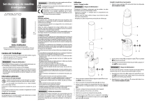 Cette mention vous met en garde contre d’éventuels dommages matériels. Set électrique de moulins à sel/poivre Ce pictogramme vous donne des informations utiles sur l’assemblage ou l’utilisation. Déclaration de conformité (voir le chapitre « Déclaration de conformité ») Les produits caractérisés par ce pictogramme répondent aux dispositions applicables au sein de l‘espace économique européen. Convient pour les aliments Sécurité Notice d’utilisation Fabriqué pour (Ce n’est pas l’adresse du SAV !) : Globaltronics GmbH & Co. KG, Bei den Mühren 5, 20457 Hambourg, Allemagne [email protected] • PO51032961 • AN: FR 2006050198498 • 20/2025 Contenu de l’emballage • Set électrique de moulins à sel/poivre GT-SPM-12 (blanc ou gris) (courant continu)) • 8 piles de type AA (1,5 V • Notice d’utilisation/Carte de garantie Risque de détérioration ! Si vous utilisez un couteau aiguisé ou d’autres objets pointus pour ouvrir l’emballage, vous risquez d’endommager l’article. ! Soyez très prudent lors de l’ouverture de l‘emballage. – Inspectez l’article et les pièces détachées pour déceler d’éventuels dommages. En cas de dommages, n’utilisez pas l’article. Contactez le service après-vente du fabricant à l’adresse indiquée sur la carte de garantie. Informations générales Lire et conserver le mode d’emploi Veuillez lire attentivement ce mode d’emploi, en particulier les consignes de sécurité, avant d’utiliser cet article. Le non-respect des instructions de ce mode d’emploi peut endommager l’article. Conservez le mode d’emploi pour pouvoir le consulter en cas de besoin. Si vous cédez cet article à un tiers, remettez-lui également le mode d’emploi qui l’accompagne. Signification des symboles Les pictogrammes et mentions suivants sont utilisés dans ce mode d’emploi, sur l’article ou sur l’emballage. Utilisation conforme Cet appareil sert à moudre des grains de sel ou de poivre. Il est conçu pour un usage privé et pour les quantités habituellement utilisées par les ménages. Il est exclusivement destiné à un usage privé et ne convient pas à un usage commercial. Utilisez cet article uniquement de la façon décrite dans ce mode d’emploi. Toute autre utilisation est considérée comme non conforme et peut entraîner des dommages matériels. Le fabricant ou le distributeur décline toute responsabilité pour les dommages résultant d’une utilisation incorrecte ou inappropriée. Consignes de sécurité Cet appareil peut être utilisé par des enfants âgés de plus de 8 ans et par des personnes présentant des capacités physiques, sensorielles ou mentales restreintes ou manquant d’expérience et/ou de connaissances s’ils sont surveillés ou s’ils ont reçu des instructions pour pouvoir utiliser l’appareil en toute sécurité et ont compris les dangers qui en découlent. Le nettoyage et la maintenance par l’utilisateur ne doivent pas être réalisés par des enfants, à moins qu’ils soient âgés de 8 ans ou plus et soient sous la surveillance d’un adulte. Les enfants ne sont pas autorisés à jouer avec cet appareil. Les enfants de moins de 8 ans doivent être tenus éloignés de l’appareil. En cas d’utilisation inappropriée des piles, il y a un danger d’explosion ou de brûlure par des liquides s’échappant des piles. – N’exposez pas les piles à une forte chaleur et ne les jetez pas dans un foyer ouvert. – Remplacez toujours toutes les piles à la fois et n’utilisez que des piles de même type. – Remplacez toutes les piles en même temps et n’utilisez pas de piles ayant des niveaux de charge différents. – Ne court-circuitez pas les piles et ne démontez pas. – N’essayez jamais de charger des piles non rechargeables. – Évitez le contact du liquide des piles avec la peau, les yeux les muqueuses. – En cas de contact avec le liquide des piles, rincez les endroits concernés immédiatement avec suffisamment d’eau claire et consultez un médecin. – Retirez et éliminez immédiatement et correctement les piles usagées. – Tenez les piles hors de la vue et de la portée des enfants. – Si les piles sont avalées ou qu’elles pénètrent dans le corps d’une manière ou d’une autre, consultez immédiatement un médecin. ! Ne laissez pas les enfants jouer avec l’article, les piles ou l’emballage. ! Utilisez l’article hors de la portée des enfants. ! Tenez l’article hors de la portée des enfants. – N’apportez aucune modification à l’article. Confiez les réparations à un atelier spécialisé pour éviter tout danger et dommage. – Ne plongez jamais l’article dans l’eau ou dans d’autres liquides. Résidus de production ! Des résidus de production impropres à la consommation peuvent être présents sur ou dans tous les composants de cet article. Les composants susceptibles d’être en contact avec des aliments, doivent être inspectés avec la première utilisation et nettoyés soigneusement. Utilisation Remplir le moulin de sel ou de poivre 1. Retirez la coque supérieure 1, comme décrit dans la rubrique Insérer/remplacer les piles. Insérer / changer les piles Risque de détérioration ! Changement de batterie uniquement par des adultes. Les piles mal insérées peuvent endommager l’article. ! Respectez la polarité +/- indiquée dans le compartiment des piles et sur les piles. ! Veillez à avoir les mains sèches lorsque vous insérez les piles dans leur compartiment. ! Remplacez les piles uniquement par des piles de même type. + 6 1 7 2 8 4 3 + – 5 – + – + 2. Tournez le bloc moteur 6 pour aligner le repère 7 sur le symbole 3 et tirez-le vers le haut. 3. Versez le sel ou le poivre dans le réservoir, par l’orifice, jusqu’au repère 8 de niveau maximal. + – Risque de détérioration ! Ne verser que des grains à moudre. N’ajoutez pas d’agent déshydratant tel que du riz. Cela pourrait endommage