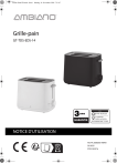 Toaster Print FR.book Seite 1 Montag, 18. November 2024 7:51 07 Grille-pain GT-TDS-EDS-14 3 SAV ans 01 40 / 82 92 26 GARANTIE gt-support@ zeitlos-vertrieb.de AN: FR 2006050198481 20/2025 NOTICE D'UTILISATION AN: FR 2006050198481 20/2025 PO51032976 Toaster Print FR.book Seite 2 Montag, 18. November 2024 7:51 07 Sommaire Consignes de sécurité . . . . . . . . . . . . . . . . . . . . . . . . . . . . . . . . . . . . . . . . . . . 3 Contenu de l'emballage . . . . . . . . . . . . . . . . . . . . . . . . . . . . . . . . . . . . . . . . . 5 Symboles . . . . . . . . . . . . . . . . . . . . . . . . . . . . . . . . . . . . . . . . . . . . . . . . . . . . . . . 6 Vue détaillée . . . . . . . . . . . . . . . . . . . . . . . . . . . . . . . . . . . . . . . . . . . . . . . . . . . . 7 Avant la première utilisation . . . . . . . . . . . . . . . . . . . . . . . . . . . . . . . . . . . . . 8 Déballage et installation . . . . . . . . . . . . . . . . . . . . . . . . . . . . . . . . . . . . . . 8 Mise en service . . . . . . . . . . . . . . . . . . . . . . . . . . . . . . . . . . . . . . . . . . . . . . . 8 Utilisation . . . . . . . . . . . . . . . . . . . . . . . . . . . . . . . . . . . . . . . . . . . . . . . . . . . . . . 9 Griller du pain . . . . . . . . . . . . . . . . . . . . . . . . . . . . . . . . . . . . . . . . . . . . . . . . 9 Réchauffer les petits pains . . . . . . . . . . . . . . . . . . . . . . . . . . . . . . . . . . .10 Réchauffer du pain . . . . . . . . . . . . . . . . . . . . . . . . . . . . . . . . . . . . . . . . . . .11 Griller du pain congelé . . . . . . . . . . . . . . . . . . . . . . . . . . . . . . . . . . . . . . .11 Déloger du pain coincé dans la chambre de grillage . . . . . . . . . .11 Conseils et instructions concernant l'utilisation . . . . . . . . . . . . . . . . .12 Nettoyage . . . . . . . . . . . . . . . . . . . . . . . . . . . . . . . . . . . . . . . . . . . . . . . . . . . . .12 Nettoyage du boîtier . . . . . . . . . . . . . . . . . . . . . . . . . . . . . . . . . . . . . . . . .13 Nettoyage du tiroir ramasse-miettes . . . . . . . . . . . . . . . . . . . . . . . . . .13 Déclaration de conformité . . . . . . . . . . . . . . . . . . . . . . . . . . . . . . . . . . . . .13 Pannes et solutions . . . . . . . . . . . . . . . . . . . . . . . . . . . . . . . . . . . . . . . . . . . .14 Données techniques . . . . . . . . . . . . . . . . . . . . . . . . . . . . . . . . . . . . . . . . . . .14 Recyclage . . . . . . . . . . . . . . . . . . . . . . . . . . . . . . . . . . . . . . . . . . . . . . . . . . . . . .15 Carte de garantie . . . . . . . . . . . . . . . . . . . . . . . . . . . . . . . . . . . . . . . . . . . . . .17 2 Toaster Print FR.book Seite 3 Montag, 18. November 2024 7:51 07 Consignes de sécurité Lire et conserver le mode d’emploi Veuillez lire attentivement les informations suivantes et en tenir compte. Prière de conserver le mode d’emploi pour toute référence future. Si vous donnez l’article à quelqu’un d’autre, veuillez remettre également le présent mode d’emploi. Instructions importantes Cet appareil peut être utilisé par des enfants à partir de 8 ans et plus et par des personnes dont les capacités physiques, sensorielles ou mentales sont réduites, ou qui sont dénuées d’expérience ou de connaissance, à condition qu‘ils bénéficient d’une surveillance ou d’instructions préalables concernant l’utilisation en toute sécurité de l’appareil et ont compris les risques encourus. Maintenir l’appareil et son cordon d’alimentation hors de portée des enfants de moins de 8 ans. Le nettoyage et l’entretien ne doivent pas être confiés à des enfants, sauf s’ils ont 8 ans ou plus et sont encadrés. Veillez à ce que les enfants ne jouent pas avec l’appareil. Veillez à ce que les enfants n’aient pas accès aux films de protection et au matériel d’emballage. Ils risquent de s’étouffer. Ne pas plonger le grille-pain ou le cordon d’alimentation dans de l’eau ou d’autres liquides. Risque d’électrocution ! Veuillez ne pas utiliser le grille-pain à proximité de sources d’humidité comme un évier. Ne pas mouiller les pièces électriques. Placez le grille-pain de manière à ce qu’aucun liquide ne puisse déborder sur les prises électriques de l’appareil. Le pain peut brûler. N’utilisez jamais le grille-pain à proximité ou sous des matériaux inflammables comme des rideaux. Si le cordon d’alimentation de cet appareil est endommagé, il doit être remplacé par le fabricant, son service atelier ou son SAV afin d’éviter tout risque éventuel. Ne pas brancher l’appareil à une minuterie externe, un interrupteur crépusculaire ou tout autre système de commande à distance. Utilisation conforme à l'usage prévu Ce grille-pain sert à faire griller des produits panifiés, tels que toasts, petits pains, tranches de pain plus épaisses et autres produits comparables. Il sert également à faire réchauffer des denrées alimentaires spécifiquement prévues à cette fin. L’appareil est exclusivement conçu pour un usage domestique. Le grille-pain n’est pas conçu pour être utilisé à des fins professionnelles ou domestiques comparables dans des cuisines réservées au personnel dans des magasins, des bureaux et 3 Toaster Print FR.book Seite 4 Montag, 18. November 2024 7:51 07 autres environnements professionnels, dans des fermes, par les clients des hôtels, motels ou autre environnement à caractère résidentiel ou dans des environnements de type chambres d’hôte. Pour savoir comment ôter les miettes de pain et nettoyer l’appareil s’il est entré en contact avec des aliments, reportez-vous au chapitre « Nettoyage ». Risque lié à l'électricité N’utilisez pas l’appareil avec les mains mouillées. N’utilisez pas l’appareil à l’extérieur. Branchez l’appareil à une prise à contact de protection dont l’installation est conforme aux normes et à la tension de
