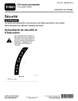 Form No. 3468-726 Rev A Kit roues pivotantes N° de modèle 161-8186 Instructions de montage Sécurité ATTENTION Les lames sont tranchantes et vous pouvez vous blesser gravement à leur contact. Portez des gants pour effectuer l'entretien des lames. Autocollants de sécurité et d'instruction Des autocollants de sécurité et des instructions bien visibles par l'opérateur sont placés près de tous les endroits potentiellement dangereux. Remplacez tout autocollant endommagé ou manquant. decal161-8170 161-8170 1. Hauteur de coupe © 2025—The Toro® Company 8111 Lyndale Avenue South Bloomington, MN 55420 Enregistrez votre produit à www.Toro.com. Traduction du texte d'origine (FR) Imprimé aux États-Unis Tous droits réservés *3468-726* Montage Pièces détachées Reportez-vous au tableau ci-dessous pour vérifier si toutes les pièces ont été expédiées. Description Procédure 1 2 3 4 5 6 7 8 Qté Utilisation Aucune pièce requise – Préparation de la machine. Aucune pièce requise – Dépose des roues existantes. Aucune pièce requise – Dépose du pare-chocs existant. Aucune pièce requise – Dépose du protège-courroie. Protège-courroie droit Protège-courroie gauche Roue pivotante avant Boulon à tête hexagonale (⅜ x 3¾ po) Rondelle Douille d’écartement Contre-écrou (⅜ po) Ressort Plaque de hauteur de coupe Boulon à tête hexagonale (5/16 x ⅞ po) Contre-écrou (5/16 po) Boulon à tête hexagonale (5/16 x ⅞ po) Contre-écrou (5/16 po) Support du déflecteur du moteur (gauche) Support du déflecteur du moteur (droit) Bras du déflecteur du moteur (gauche) Bras du déflecteur du moteur (droit) Boulon de carrosserie (5/16 x ¾ po) 1 1 1 2 2 2 2 2 1 2 2 2 6 Aucune pièce requise Procédure 2. Débranchez le fil de la bougie. 3. Levez l’avant de la machine à l’aide d’un appareil de levage approprié ou de chandelles. Montage de la plaque de hauteur de coupe. 1 1 1 1 4 Montage de la roue pivotante avant. utilisez le rebord avant du tablier pour maintenir la machine levée. Placez des cales derrière les roues arrière pour empêcher la machine de bouger. Préparation de la machine Coupez toujours le moteur, attendez l'arrêt complet de toutes les pièces en mouvement et laissez refroidir la machine. Assemblage de la roue pivotante avant. Remarque: Si vous utilisez des chandelles, 1 1. Pose du protège-courroie. 2 2 Dépose des roues existantes Aucune pièce requise Procédure Retirez les écrous qui fixent les roues avant. Retirez les roues des boulons et conservez les roues. g543346 Figure 2 1. Déflecteur du moteur 2. Boulon B. 3. Rondelle 4. Contre-écrou Retirez les boulons de carrosserie qui fixent les bras du déflecteur aux support de hauteur de coupe et au pare-chocs. Déposez et mettez au rebut les bras du déflecteur du moteur. Conservez les fixations des supports de hauteur de coupe pour le remontage. g543333 Figure 1 1. Contre-écrou (2) 3 Dépose du pare-chocs Aucune pièce requise g543678 Figure 3 Procédure 1. Déposez le déflecteur et les bras du moteur. 1. Contre-écrou A. 2. Boulon de carrosserie Déposez le déflecteur du moteur. Conservez-le ainsi que les fixations pour le remontage. 2. 3 3. Bras du déflecteur du moteur Retirez les fixations qui retiennent le pare-chocs avant sur le tablier. Conservez les fixations pour le remontage. g543361 Figure 6 Modèle Kawasaki® représenté g543721 Figure 4 3. 1. Protège-courroies 3. Pare-chocs avant 1. Contre-écrou 2. Boulon de carrosserie 2. Boulon à embase Déposez le pare-chocs avant. g543722 Figure 5 g543765 Figure 7 Modèle Kawasaki® représenté 4 Dépose du protègecourroie Aucune pièce requise Procédure Retirez les 4 boulons à embase qui fixent le protège-courroie. Dépose du protège-courroie et conservez les boulons pour le remontage. Remarque: Si la machine est équipée d’un moteur Kohler®, le boulon est remplacé par une fixation enfichable dans le dernier trou du protège-courroie. 4 5 6 Pose du protège-courroie Assemblage de la roue pivotante avant Pièces nécessaires pour cette opération: Pièces nécessaires pour cette opération: 1 Protège-courroie droit 1 Protège-courroie gauche Procédure 1. Fixez le protège-courroie droit sur le tablier à l’aide des boulons ou des fixations retirés précédemment. 1 Roue pivotante avant 2 Boulon à tête hexagonale (⅜ x 3¾ po) 2 Rondelle 2 Douille d’écartement 2 Contre-écrou (⅜ po) 2 Ressort Procédure Reposez les roues sur les fourches pivotantes à l’aide de 2 boulons à tête hexagonale (⅜ x 3¾ po), 2 rondelles et douilles d’écartement, et 2 contre-écrous (⅜ po). Serrez les contre-écrous à un couple de 37 à 44 N·m (27 à 33 pi-lb). g544004 Figure 8 1. Protège-courroie droit 3. Veiller à insérer les languettes dans le protège-courroie 2. Boulons ou fixations retirés précédemment 4. Protège-courroie gauche 2. Insérez les languettes du protège-courroie gauche dans le protège-courroie droit. Fixez le protège-courroie gauche à l’aide des fixations restantes. Remarque: Veillez à bien insérer les g542758 languettes dans le protège-courroie, et non pas par dessus. Figure 9 1. Boulon à tête hexagonale (⅜ x 3¾ po) 4. Rondelle 2. Douille d’écartement 5. Contre-écrou (⅜ po) 3. Roue 6. Roue pivotante avant Remarque: Si le boulon ne passe pas dans les trous de la fourche pivotante, fléchissez légèrement la roue afin d’aligner le boulon et les trous, puis poussez le boulon dans le trou. 5 7 Montage de la plaque de hauteur de coupe Pièces nécessaires pour cette opération: 1 Plaque de hauteur de coupe 2 Boulon à tête hexagonale (5/16 x ⅞ po) 2 Contre-écrou (5/16 po) Procédure PRUDENCE Des débris peuvent être projetés dans les yeux et causer des blessures si vous utilisez une perceuse sans protection oculaire adaptée. Portez toujours une protection oculaire pour les opérations de perçage. 1. Percez 2 trous (8 mm ou 5/16 po) dans l’avant du tablier, comme m
