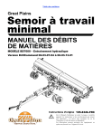 Table des matières Great Plains Semoir à travail minimal MANUEL DES DÉBITS DE MATIÈRES MODÈLE BD7600 – Entraînement hydraulique Version DrillCommand 02.03.07.04 à 02.03.13.01 Instructions d'origine 195-832b-FRC ! Lire le Manuel d’utilisateur en entier. Lorsque ce symbole apparaît, les instructions et les avertissements qui suivent sont importants – les suivre sans exception. La vie de l’opérateur et celle des autres en dépendent! Les illustrations peuvent présenter des équipements en option non fournis avec l’appareil de série. © 2024 Great Plains | Imprimé aux États-Unis d’Amérique Tous droits réservés. Il est interdit de reproduire, distribuer ou transmettre sous quelque forme ou par quelque moyen que ce soit, y compris par photocopie, par enregistrement ou par toute autre méthode électronique ou mécanique, une partie quelconque de la présente publication sans la permission écrite préalable de l’éditeur, sauf s’il s’agit d’une brève citation faisant partie d’un avis critique ou à certaines autres fins non commerciales autorisées par la législation sur les droits d’auteur. Les marques de commerce de Great Plains Manufacturing, Inc. comprennent : AccuShot, DrillCommand, Max-Chisel, Row-Pro, Singulator Plus, Short Disk, Swath Command, Terra-Tine, Ultra-Chisel et X-Press. Les marques déposées de Great Plains Manufacturing, Inc. comprennent : Air-Pro, Clear-Shot, Discovator, Great Plains, Land Pride, MeterCone, Nutri-Pro, Seed-Lok, Solid Stand, Terra-Guard, Turbo-Chisel, Turbo-Chopper, Turbo-Max, Turbo-Trill, Ultra-Till, Whirlfilter et Yield-Pro. Les noms de marques et de produits qui apparaissent et qui sont la propriété d’autres entités sont des marques déposées des propriétaires respectifs. Veuillez écrire à l’adresse ci-dessous pour toute demande de permission à l’éditeur. Great Plains Mfg. 1525 E. North St. P.O. Box 5060 Salina, KS 67402 É.-U. Le catalogue complet comprenant ce manuel et d’autres manuels est disponible sur notre site Web à l’adresse www.greatplainsag.com/en/manuals/905/product-manuals. Informations de commande : Ventes de grand volume. Des rabais particuliers sont disponibles pour les achats de grands volumes par des sociétés, des associations ou d’autres entités. Prendre contact avec l’éditeur à l’adresse ci-dessus pour de plus amples renseignements. Commandes à des fins personnelles non commerciales. Vous adresser à notre service technique par courrier ou sur notre site Web à l’adresse www.greatplainsag.com. Semoirs à travail minimal du sol BD7600 Page de couverture Table des matières Introduction. . . . . . . . . . . . . . . . . . . . . . . . . . . . . . . . . 1 Informations relatives à la sécurité . . . . . . . . . . . . . . . . 1 Modèles de semoirs . . . . . . . . . . . . . . . . . . . . . . . . . . . 1 Entraînement hydraulique . . . . . . . . . . . . . . . . . . . . . 2 Comprendre les tableaux des débits d’entraînement hydraulique . . . . . . . . . . . . . . . . . . . . . . . . . . . . . . . . . . 2 Avant de commencer . . . . . . . . . . . . . . . . . . . . . . . . . . 2 Réglages de la vanne inférieure . . . . . . . . . . . . . . 2 Étalonnage des matières . . . . . . . . . . . . . . . . . . . . 2 Réglage des plages . . . . . . . . . . . . . . . . . . . . . . . . 2 Étalonnage . . . . . . . . . . . . . . . . . . . . . . . . . . . . . . . . . . 3 Étalonnage de l’entraînement hydraulique. . . . . . . 3 Débit faible . . . . . . . . . . . . . . . . . . . . . . . . . . . . . . . 6 Débits de matières pour 3 plages . . . . . . . . . . . . . . . . . 7 Luzerne . . . . . . . . . . . . . . . . . . . . . . . . . . . . . . . . . 7 Luzerne, enduit à 34 % . . . . . . . . . . . . . . . . . . . . . 7 Orge, commun [malt] . . . . . . . . . . . . . . . . . . . . . . . 8 Orge, fourrage . . . . . . . . . . . . . . . . . . . . . . . . . . . . 8 Betteraves . . . . . . . . . . . . . . . . . . . . . . . . . . . . . . . 9 Lotier corniculé. . . . . . . . . . . . . . . . . . . . . . . . . . . . 9 Sorgho à balais . . . . . . . . . . . . . . . . . . . . . . . . . . 10 Sarrasin . . . . . . . . . . . . . . . . . . . . . . . . . . . . . . . . 10 Alpiste des Canaries . . . . . . . . . . . . . . . . . . . . . . 11 Canola/colza . . . . . . . . . . . . . . . . . . . . . . . . . . . . 11 Carottes . . . . . . . . . . . . . . . . . . . . . . . . . . . . . . . . 12 Trèfle hybride . . . . . . . . . . . . . . . . . . . . . . . . . . . . 12 Trèfle incarnat . . . . . . . . . . . . . . . . . . . . . . . . . . . 13 Trèfle rouge . . . . . . . . . . . . . . . . . . . . . . . . . . . . . 13 Trèfle des près . . . . . . . . . . . . . . . . . . . . . . . . . . . 14 Maïs . . . . . . . . . . . . . . . . . . . . . . . . . . . . . . . . . . . 14 Pois chiche. . . . . . . . . . . . . . . . . . . . . . . . . . . . . . 15 Lupin à feuilles étroites/bleu. . . . . . . . . . . . . . . . . 15 Lupin des jardins/à folioles nombreuses . . . . . . . 16 Millet. . . . . . . . . . . . . . . . . . . . . . . . . . . . . . . . . . . 16 Sorgho, faible débit . . . . . . . . . . . . . . . . . . . . . . . 17 Sorgho, débit élevé . . . . . . . . . . . . . . . . . . . . . . . 17 Moutarde . . . . . . . . . . . . . . . . . . . . . . . . . . . . . . . 18 Haricot commun . . . . . . . . . . . . . . . . . . . . . . . . . . 18 Avoine . . . . . . . . . . . . . . . . . . . . . . . . . . . . . . . . . 19 Pois . . . . . . . . . . . . . . . . . . . . . . . . . . . . . . . . . . . 19 Haricots pintos . . . . . . . . . . . . . . . . . . . . . . . . . . . 20 Pavot bleu . . . . . . . . . . . . . . . . . . . . . . . . . . . . . . 20 Agrostide blanche . . . . . . . . . . . . . . . . . . . . . . . . 21 Riz à grain long . . . . . . . . . . . . . . . . . . . . . . . . . . 21 Seigle . . . . . . . . . . . . . . . . . . . . . . . . . . . . . . . . . . 22 Safran bâtard . . . . . . . . . . . . . . . . . . . . . . . . . . . . 22 Éragrostide