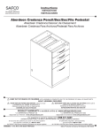 Instructions INSTRUCTIONS INSTRUCCIONES an LDI Company Minneapolis, MN 55428 www.safcoproducts.com Aberdeen Credenza Pencil/Box/Box/File Pedestal Aberdeen Crédence/Caisson de Classement Aberdeen Credenza Para Archivos/Pedestal Para Archivos ⚠ KEEP OUT OF REACH OF CHILDREN UNTIL ASSEMBLY IS COMPLETE, DUE TO THE PRESENCE OF SMALL OR SHARP PARTS. ADULT ASSEMBLY REQUIRED ⚠ TENIR HORS DE PORTÉE DES ENFANTS JUSQU’À CE QUE ⚠ MANTENER FUERA DEL ALCANCE DE LOS NIÑOS HASTA QUE SE ASSEMBLAGE ADULTE REQUIS SE REQUIERE MONTAJE DE ADULTOS L’ASSEMBLAGE SOIT TERMINÉ, EN RAISON DE LA PRÉSENCE DE PIÈCES PETITES OU TRANCHANTES. COMPLETE EL MONTAJE, DEBIDO A LA PRESENCIA DE PIEZAS PEQUEÑAS O AFILADAS. PRODUCT WARRANTY is available online at: www.safcoproducts.com • LA GARANTIE DU PRODUIT est disponible sur l’Internet : www.safcoproducts.com • LA GARANTÍA DEL PRODUCTO está disponible en la Internet: www.safcoproducts.com For questions or concerns, please call 1-888-971-6225 available Monday-Friday 7:30 AM to 5:00 PM (Central Time) (English-speaking operators) Si vous avez des questions pour poser ou les préoccupations pour exprimer, connecter au 1-888-971-6225 de 7H30 à 17H00 (Heure centrale) (Opérateurs de langue anglaise) 990000605: 1 of 3; Rev A; Rev Date 01-MAY-2025 Si usted tiene preguntas o preocupaciones, por favor llame 1-888-971-6225 de 7:30 AM a 5:00 PM (Hora Central) (Operadores que hablan inglés) Safco Products Company, Minneapolis, MN 55428 TOOLS REQUIRED: Phillips Screwdriver OUTILS REQUIS : Tournevis cruciforme HERRAMIENTAS REQUERIDAS: Destornillador Phillips A A Pedestal / Piédestal / Pedestal Hardware Pack / Paquet Matérial / Paquete Material: APEDHB B C D Screw M6 X 35MM Vis M6 X 35MM Tornillo M6 X 35MM Grommet Œillet Ojal 1 Bar w/2 Caps 1 barre avec 2 bouchons 1 barra con 2 tapas Qty. / Qté. / Cant. 5 Qty. / Qté. / Cant. 1 Qty. / Qté. / Cant. 2 E D Keys Clés Llaves Pencil Drawer Divider Séparateur de tiroir à crayons Divisor de cajón para lápices Qty. / Qté. / Cant. 1 Qty. / Qté. / Cant. 3 990000605: 2 of 3; Rev A; Rev Date 01-MAY-2025 Safco Products Company, Minneapolis, MN 55428 1 B (4) C (1) D (3) A B C Attach Pedestal to underside of Table using Screws or Slide Pedestal under worksurface and adjust levelers as appropriate. Insert Grommet in exposed side of Pedestal and install Pencil Drawer Dividers into Pencil Drawer. Fixez le piédestal sous la table à l’aide de vis ou glissez-le sous le plan de travail et ajustez les niveleurs si nécessaire. Insérez l’œillet sur le côté exposé du piédestal et installez les séparateurs du tiroir à crayons dans celui-ci. Fije el pedestal a la parte inferior de la mesa con tornillos o deslícelo bajo la superficie de trabajo y ajuste los niveladores según corresponda. Inserte el ojal en el lado expuesto del pedestal e instale los divisores del cajón para lápices en este. 990000605: 3 of 3; Rev A; Rev Date 01-MAY-2025 Safco Products Company, Minneapolis, MN 55428 ">