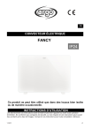 FR CONVECTEUR ÉLECTRIQUE FANCY IP24 Ce produit ne peut être utilisé que dans des locaux bien isolés ou de manière occasionnelle. INSTRUCTIONS D’UTILISATION Lire attentivement ces instructions avant de faire fonctionner l’appareil ou avant toute opération d’entretien. Se conformer aux consignes de sécurité. Le non-respect de ces instructions peut causer des accidents et/ou des dommages. Conserver ces instructions pour toute consultation ultérieure. V 06/25 27 INFORMATIONS GÉNÉRALES SUR LA SÉCURITÉ • Utiliser ce convecteur comme décrit dans cette notice d'utilisation. Tout usage autre que celui conseillé par le fabricant peut être la cause d’incendies, de chocs électriques ou d’accidents pour les personnes. • Ce convecteur doit être utilisé pour un usage domestique et non pour un usage commercial ou industriel. • S’assurer que le type d’alimentation électrique est conforme aux exigences de voltage indiquées sur la plaque signalétique du convecteur (230-240V~ 50-60 Hz). • Cet appareil peut être utilisé par des enfants de plus de 8 ans, des personnes dont les capacités physiques, sensorielles ou mentales sont réduites, ou des personnes dénuées d’expérience ou des connaissances nécessaires, à condition qu'ils soient sous surveillance ou qu'ils aient reçu des instructions concernant l’utilisation de l’appareil en toute sécurité et les dangers inhérents à ce dernier. • Les enfants ne doivent pas jouer avec l'appareil. • Les opérations de nettoyage et d'entretien incombant à l'utilisateur ne doivent pas être effectuées par des enfants sans surveillance. • Déballer le convecteur et s'assurer qu'il est en bon état avant de le mettre en service. Garder les sachets plastiques hors de portée des enfants. • Contrôler le câble et la fiche avant d’utiliser le convecteur pour s’assurer qu’ils n’ont pas été endommagés pendant le transport. • Ce produit n'est pas un jouet. • Les enfants de moins de 3 ans doivent être tenus à l'écart s'ils ne sont pas surveillés en permanence. • Les enfants âgés de 3 à 8 ans ne doivent allumer / éteindre l'appareil que tant qu'il a été placé ou installé dans sa position de fonctionnement normale et qu'ils reçoivent une surveillance ou des instructions concernant l'utilisation sûre de l'appareil et comprendre les dangers. • Les enfants entre 3 et 8 ans ne doivent pas insérer la fiche, régler ou nettoyer l'appareil ou effectuer l'entretien par l'utilisateur. • ATTENTION - Certaines parties de ce produit peuvent devenir très chaudes et causer des brûlures. Une attention particulière doit être accordée aux enfants et aux personnes vulnérables. • Afin d'éviter tout risque de modification involontaire de la protection thermique, cet appareil ne doit pas être alimenté par le biais d'un dispositif de commutation extérieur, tel qu'une minuterie, ou être V 06/25 28 connecté à un circuit qui est régulièrement allumé et éteint par une application extérieure. AVERTISSEMENT : Ne pas utiliser l'appareil avec un programmateur ou avec tout autre dispositif extérieur permettant son allumage automatique car il subsiste des risques d’incendie si l'appareil est couvert ou mal placé. • L'appareil présente un indice de protection IP24 et peut également être utilisé dans une salle de bains, dans la zone 2. Ne pas utiliser le convecteur à proximité immédiate de baignoires, douches, lavabos ou piscines • Débrancher le cordon du secteur en cas de non-utilisation ou de nettoyage. • Pour déconnecter le convecteur, placer le sélecteur sur 0 et débrancher la fiche de la prise. Tirer uniquement sur la fiche. Ne pas tirer sur le câble. • Ne pas introduire les doigts ou des objets dans les grilles d'entrée et de sortie de l’air car cela risque de provoquer des chocs électriques, un incendie ou d’endommager le convecteur. Pour prévenir les risques d’incendie, ne jamais bloquer ni manipuler de quelque manière que ce soit les grilles pendant que le convecteur est en marche. • Ne pas utiliser le convecteur si les fils ou les fiches sont endommagés. Si le câble d'alimentation est endommagé, il doit être remplacé par le fabricant ou son service d'assistance technique ou en tout cas par une personne de qualification similaire, afin d'éviter tout risque. • Ne rien poser sur le câble et ne pas le plier. Pendant le fonctionnement, il faut que le câble soit entièrement déroulé. V 06/25 29 • L'utilisation de rallonges est déconseillée car ces dernières pourraient surchauffer et impliquer un risque d'incendie. Ne jamais utiliser une seule rallonge pour faire fonctionner plusieurs convecteurs. • Ce convecteur chauffe beaucoup pendant son fonctionnement, il faut donc faire attention au risque de brûlures. Pour ne pas se blesser, éviter tout contact entre la peau et les surfaces chaudes. Utiliser les poignées pour déplacer ce convecteur. Garder les matériaux inflammables tels que les meubles, coussins, couvertures, papiers, vêtements, rideaux ou autres à au moins 1 m de distance du devant et de l’arrière de l'appareil. • Ne pas plonger le cordon, la fiche ou tout autre élément du panneau dans de l'eau ou dans d'autres liquides. • Ne pas toucher le convecteur ou la fiche avec les mains mouillées. • Ne pas utiliser le convecteur dans des endroits poussiéreux ou en présence de vapeurs inflammables (dans un atelier par exemple ou dans un garage). • Ne pas placer le convecteur sur ou à proximité d'une autre source de chaleur. AVERTISSEMENT : NE PAS COUVRIR LE CONVECTEUR POUR ÉVITER TOUTE SURCHAUFFE. C'est ce que le symbole ci-après veut dire. • Danger d'incendie si, pendant son fonctionnement, le convecteur est couvert ou se trouve en contact avec un matériau inflammable, ycompris des rideaux, draperies, couvertures, etc. GARDER LE CONVECTEUR À BONNE DISTANCE DE CES MATÉRIAUX. • Ne pas introduire d'objet