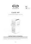 FR CLASS WF C L I MAT I S E U R M O B I LE ( LO CA L) INSTRUCTIONS D’UTILISATION Lire attentivement ces instructions avant de mettre en marche l’appareil ou avant toute opération d’entretien. Se conformer aux consignes de sécurité. Le non-respect de ces instructions peut causer des accidents et/ou des dommages. Conserver ces instructions pour toute consultation ultérieure. V 06/25 L’appareil est chargé d’un gaz inflammable R290. Avant d’installer et utiliser l’appareil, lisez le manuel de l’operateur. Avant d’installer l’appareil, lisez le manuel d’installation. Pour toute réparation, contacter toujours un centre d’assistance et suivre à la lettre à ce qui est contenu dans le manuel de service. LE RÉFRIGÉRANT R290 • A fin de remplir ses fonctions, le climatiseur a un circuit frigorifique interne où circule un liquide réfrigérant écologique R290 = 3 GWP (Potentiel de réchauffement de la planète). • C’est un réfrigérant inflammable et sans odeur, avec d’excellentes propriétés thermodynamiques qui offrent une haute efficacité énergétique. Attention: Compte tenu de l’inflammabilité de ce réfrigérant, il est recommandé de suivre scrupuleusement les consignes de sécurité indiquées dans ce manuel. Ne pas tenter d’accélérer le dégivrage et respecter les recommandations pour nettoyage de l’appareil. Respecter scrupuleusement les instructions du fabricant pour les réparations: toujours contacter un centre d’assistance authorizé. Toutes les réparations effectuées par un personnel non qualifié pourraient être dangereuses. L’appareil doit être installé et stocké dans une pièce où aucune flamme nue n’est présente en permanence (par exemple : flammes nues, un appareil à gaz en marche ou un poêle électrique en marche). Ne pas percer ou brûler l’appareil. L’appareil doit être installé, utilisé et stocké dans un local dont la surface au plancher est supérieure à 15 m2 car l’appareil contient un gaz inflammable R290. Attention, les réfrigérants n’ont aucune odeur. V 06/25 47 INFORMATIONS GÉNÉRALES SUR LE FONCTIONNEMENT ET SUR LA SÉCURITÉ • Cet appareil est un climatiseur local, conçu pour un usage exclusivement domestique • Utiliser ce climatiseur uniquement comme décrit dans cette notice d’utilisation. • S’assurer que le type d’alimentation électrique est conforme à la tension requise (220-240 V~50 Hz). • Style de Fusible T, 250V AC, l’électricité passant par le fusible ne peut pas être susdit 3.15A. • Cet appareil n’est pas prévu pour être utilisé par des enfants âgés de moins de 8 ans et par personnes dont les capacités physiques, sensorielles ou mentales sont réduites, ou des personnes dénuées d’expérience ou de connaissance, sauf si elles ont pu bénéficier d’une surveillance ou après avoir reçu des instructions concernates l’utilisation sûre de l’appareil et à la compréhension des dangers inhérents. • Les enfants ne devraient pas jouer avec l’appareil. • Le nettoyage et l’entretien destinés à être effectuée par l’utilisateur ne doit pas être effectué par des enfants sans surveillance. • Vérifier que l’installation électrique est en mesure de fournir le courant nécessaire au fonctionnement du climatiseur, en plus du courant normalement absorbé par les autres appareils du domicile (appareils électroménagers, éclairage). Se reporter aux données d’absorption maximale indiquées sur la plaque signalétique du climatiseur. • Le raccordement au réseau électrique doit être effectué conformément aux normes d’installation en vigueur. • Vérifier que les disjoncteurs automatiques et les soupapes de protection de l’installation sont en mesure de supporter un courant initial de démarrage de 6 A (normalement pendant une durée inférieure à 1 seconde). • La prise de l’installation doit toujours être équipée d’une mise à la terre efficace. • S’assurer que la fiche est bien insérée à fond dans la prise. Ne pas utiliser de prise multiple. Ne pas toucher la fiche avec les mains mouillées. S’assurer que la fiche est propre. • Ne pas utiliser la fiche d’alimentation pour allumer/éteindre le climatiseur: utiliser le bouton POWER de la télécommande ou du V 06/25 48 panneau de commande. • Éviter d’installer le climatiseur dans des pièces où il risquerait d’être aspergé par de l’eau (ex: buanderies). • Avant d’effectuer toute opération de déplacement ou de nettoyage de l’appareil, vérifier que la fiche d’alimentation est débranchée de la prise de courant. • Ne pas déplacer le climatiseur lorsque celui-ci est en marche ; éteindre tout d’abord l’appareil, puis contrôler le réservoir de collecte de la condensation et le vider éventuellement. • Pour déconnecter l’appareil, placer la télécommande sur OFF et débrancher la fiche de la prise. Tirer uniquement sur la fiche. Ne pas tirer sur le cordon. • Ne pas utiliser l’appareil si le câble ou la fiche sont endommagés. Si le câble d’alimentation est endommagé, il doit être remplacé par le fabricant ou son service d’assistance technique ou en tout cas par une personne de qualification similaire, afin d’éviter tout risque. • L’appareil doit être installé conformément aux réglementations nationales en matière de câblage. • Tenez l’unité loin du feu, des sources de feu possibles, des objets inflammables ou explosifs. • Ne laissent pas l’unité sans surveillance tandis qu’il fonctionne, éteindre l’unité et le déconnecter. • Si le tuyau de drainage est utilisé, la température ambiante ne doit pas être inférieure à 0 °C. Il peut causer la fuite d’eau au climatiseur. • Ne pas éclabousser ou verser de l’eau sur le climatiseur. PRUDENCE! • Ne pas insérer d’objets dans le climatiseur : cela peut s’avérer très dangereux à cause de la présence d’un