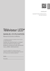 FRANÇAIS www.lg.com Copyright © 2023 LG Electronics Inc. Tous droits réservés. Téléviseur LED* MANUEL D’UTILISATION Manuel de sécurité et référence * Le téléviseur LED de LG combine un écran LCD et un rétroéclairage LED. Veuillez lire attentivement ce manuel avant de mettre en service votre produit et conservez-le afin de pouvoir vous y référer ultérieurement. Le nom du modèle et le numéro de série sont indiqués à l'arrière et sur le côté du produit. Inscrivezles ci-dessous pour référence ultérieure. Modèle Nº de série Avant de lire ce manuel •• Lisez attentivement ce manuel avant de commencer à utiliser le téléviseur et conservez-le afin de pouvoir vous y référer ultérieurement. •• Rendez-vous sur notre site Web pour télécharger ce manuel (qui comprend des informations sur l'installation, l'utilisation, le dépannage, les caractéristiques techniques, la gestion des licences, etc.) et le consulter sur votre ordinateur ou votre appareil mobile. •• Guide de l'utilisateur : Pour plus d'informations sur ce téléviseur, lisez le GUIDE DE L'UTILISATEUR fourni avec le produit. (Selon le modèle) -- Pour ouvrir le GUIDE DE L’UTILISATEUR : → [ ] → [Assistance] → [Guide de l'utilisateur] Achat séparé •• Des articles vendus séparément peuvent faire l’objet de remplacements ou de modifications sans préavis dans le but d’améliorer la qualité du produit. Contactez votre revendeur pour vous procurer ces articles. Ces périphériques fonctionnent uniquement avec certains modèles. •• Le nom ou le design du modèle peut changer en cas de mise à niveau des fonctions du produit, des conditions de diffusion ou des politiques de confidentialité du fabricant. •• Télécommande Magic Remote: Vérifiez si votre modèle de téléviseur prend en charge la fonction Bluetooth dans les spécifications du module sans fil afin de vous assurer qu’il est compatible avec la télécommande Magic Remote. •• Un câble pour connecter les antennes et les périphériques externes doit être acheté séparément. Remarque •• Les caractéristiques des produits ou le contenu de ce manuel peuvent être modifiés sans préavis en cas de mise à jour des fonctions. •• Les éléments fournis avec votre produit diffèrent en fonction du modèle choisi. •• L’image présentée peut être différente de votre téléviseur. Avertissement! Consignes de sécurité MISE EN GARDE RISQUE D'ÉLECTROCUTION. NE PAS OUVRIR. MISE EN GARDE : AFIN DE RÉDUIRE LE RISQUE D'ÉLECTROCUTION, NE RETIREZ PAS LE CAPOT (OU L'ARRIÈRE). AUCUNE PIÈCE N'EST RÉPARABLE PAR L'UTILISATEUR LUI-MÊME. CONFIEZ L'ENTRETIEN DE CET APPAREIL À UN PERSONNEL QUALIFIÉ. Ce symbole est destiné à prévenir l'utilisateur de la présence d'une « tension dangereuse » non isolée dans le boitier du produit. Cette tension peut être d'amplitude suffisante pour constituer un risque d'électrocution. Ce symbole est destiné à prévenir l'utilisateur que des instructions importantes sur le fonctionnement et l’entretien (réparation) de l'appareil se trouvent dans la documentation. AVERTISSEMENT : AFIN DE RÉDUIRE LE RISQUE D'INCENDIE ET D'ÉLECTROCUTION, N'EXPOSEZ PAS LE PRODUIT À LA PLUIE OU À L'HUMIDITÉ. •• POUR PRÉVENIR TOUT RISQUE D’INCENDIE, VEUILLEZ MAINTENIR EN PERMANENCE LES BOUGIES OU AUTRES OBJETS IMFLAMMABLES ÉLOIGNÉS DE CE PRODUIT. •• N’installez pas le TV et la télécommande dans les environnements suivants : -- Évitez d’exposer l’appareil à la lumière directe du soleil. -- Une zone fortement humide comme une salle de bain. -- À proximité d’une source de chaleur comme une cuisinière et tout autre appareil produisant de la chaleur. -- À proximité d’un plan de travail de cuisine ou d’un humidificateur où ils pourraient facilement être exposés à la vapeur ou à l’huile. -- Une zone exposée à la pluie et au vent. -- Ne pas exposer l'appareil aux gouttes ou aux éclaboussures et ne placez pas d'objets contenant du liquide (tel qu'un vase, une tasse, etc.) sur ou au-dessus de ce produit (par exemple, sur un étagère au-dessus de l'unité). 2 -- N'installez pas le téléviseur à proximité d'objets inflammables, comme de l'essence ou des bougies. N'exposez pas directement le téléviseur à la climatisation. -- N'installez pas l'appareil dans un endroit excessivement poussiéreux. Le non-respect de cette consigne peut provoquer un incendie, un choc électrique, une combustion/explosion, un dysfonctionnement ou une déformation du produit. •• Ventilation -- Installez le téléviseur dans un endroit bien aéré. Évitez les espaces fermés, tels qu'un meuble de bibliothèque. -- N’installez pas le produit sur un tapis ou un coussin. -- Évitez de bloquer ou de couvrir le produit avec un tissu ou autre matériau lorsque l'unité est branchée. •• Évitez de toucher les ouvertures de ventilation. Lors de l'utilisation prolongée du téléviseur, les ouvertures de ventilation peuvent surchauffer. •• Protégez le câble d’alimentation contre les mauvais traitements physiques ou mécaniques, tels que la torsion, la pliure, le pincement, et évitez qu’il ne puisse être pris dans une porte ou que l’on puisse marcher dessus. Vérifiez soigneusement les fiches, les prises murales et les points de sortie du cordon de l'appareil. •• Ne déplacez pas le téléviseur tant que le cordon d'alimentation est branché. •• N'utilisez pas de cordon d'alimentation endommagé ou déformé. •• Veillez à tenir le cordon d'alimentation par la fiche pour le débrancher. Ne tirez pas sur le cordon d'alimentation pour débrancher le téléviseur. •• Ne branchez pas trop d'appareils à la même prise secteur pour éviter les risques d'incendie ou de choc électrique. •• Déconnexion de l'appareil de l'alimentation principale -- La fiche d'alimentation est l'élément de déconnexion. En cas d'urgence, la f