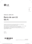 FRANÇAIS MANUEL SIMPLIFIÉ Barre de son LG Wi-Fi Veuillez lire attentivement ce manuel avant d’utiliser votre appareil et conservez-le pour vous y référer ultérieurement. Pour consulter les instructions relatives aux fonctionnalités avancées, visitez http://www.lg.com et téléchargez le manuel de l’utilisateur. Il est possible que certaines parties de ce manuel fassent référence à un appareil différent du vôtre. MODÈLE DSN11RG MFL71841358 2104_Rev01 SN11RG.DNLDLLM_SIMPLE_FRE_MFL71841358.indd 1 www.lg.com Copyright © 2021 LG Electronics Inc. Tous droits réservés. 2021-08-04 9:03:34 Panneau avant Connexion du caisson de basses Micro Placez le caisson de basses sans fil près de la barre de son et suivez les étapes ci-dessous. a Branchez le cordon d’alimentation de la barre de son et du caisson de basses sans fil dans la prise de courant. b Allumez la barre de son. • La barre de son et le caisson de basses sans fil se connectent automatiquement. Le voyant vert du caisson de basses s’allume. LED Assistant Google 1 (Power) · · · · · · · · · Allumage ou extinction de l’unité. F (Fonction) · · · · · · · · · · · · · · · · · · Sélection d’une fonction p/o (Volume) · · · · · · · · · · · · · · · · · · Réglage du volume N · · · · · · · · · · · · · · · · · · · · · · · · · · · · · · · · · · · · · Écouter/Pause > (Sourdine micro) · · · · · · · · · · · · Active et désactive la reconnaissance vocale. · · · · · · · · · · · · · · · Mise en veille et arrêt du feedback avec l’Assistant Google. Réinitialiser l’unité Maintenez enfoncé le > sur l’unité jusqu’à ce que vous entendiez le bip émis une seule fois. Connexion manuelle du caisson de basses Si le caisson de basses n’émet pas de son, essayez de le connecter manuellement. a Appuyez sur le bouton Pairing à l’arrière du caisson de basses sans fil. • La LED verte à l’avant du caisson de basses sans fil clignote rapidement. (Si la LED verte ne clignote pas, appuyez et maintenez une nouvelle fois enfoncé le bouton Pairing). b Allumez la barre de son. • Le jumelage est terminé. La LED verte à l’avant du caisson de basses sans fil s’allume. Panneau arrière Pour éviter les interférences des équipements sans fil, la barre de son et le caisson de basses doivent être à une distance d’au moins 1 m par rapport à l’appareil (comme un routeur sans fil, un four à micro-ondes, etc.). Port USB · · · · · · · · · · · · · · Connexion à un dispositif USB. OPTICAL IN · · · · · · · Connexion à un dispositif optique HDMI OUT (TV eARC/ARC) · · · · Connexion à une TV. HDMI IN (1) / HDMI IN (2) · · · · Connexion à un appareil avec HDMI OUT. !1 m Si le câble optique n’est pas connecté dans le bon sens, cela peut endommager la prise optique. SN11RG.DNLDLLM_SIMPLE_FRE_MFL71841358.indd 2 2021-08-04 9:03:35 Connexion au téléviseur Raccordez la barre de son au téléviseur via le port optique ( ) ou le port HDMI ARC ( ) Connexion au réseau a c Raccordement via le port optique a Raccordez la barre de son au téléviseur à l’aide d’un câble optique. b Configurez [Haut-parleur externe (Optique)] dans le menu des paramètres du téléviseur. accordement via le port HDMI R (TV eARC/ARC) a Raccordez la barre de son au téléviseur à l’aide d’un câble HDMI. b Configurez [Haut-parleur externe (HDMI ARC)] dans le menu des paramètres du téléviseur. b a Contrôlez l’état du réseau. Un routeur connecté au réseau doit être installé. b Connectez votre smartphone à votre réseau domestique. c Raccordez la barre de son à l’alimentation électrique. Tous les appareils doivent être connectés au même routeur. Étape 1. Installer l’application Google Home Téléchargez l’appli Google Home depuis Google Play ou App Store. Étape 2. Configurer la connexion Wi-Fi avec l’appli a Connectez votre appareil intelligent au réseau Wi-Fi que vous utiliserez pour votre haut-parleur. • La connexion HDMI est impossible si votre téléviseur ne prend pas en charge HDMI ARC. • Si l’appareil est connecté simultanément en OPTICAL et ARC, le signal ARC a la priorité. Connexion d’un périphérique supplémentaire a Connectez le périphérique externe comme ci-après. Sur des appareils iOS, le Bluetooth doit avoir été activé sur votre appareil intelligent. b Lancez l’application Google Home. c Laissez-vous guider dans l’appli par les instructions pour la connexion Wi-Fi. • Lorsque le haut-parleur aura été correctement connecté au Wi-Fi, la mention « CONNECTED » apparaîtra dans l’afficheur quand le haut-parleur émettra du son. (Décodeur, lecteur etc.) OU b Réglez la source d’entrée en appuyant plusieurs fois sur F. SN11RG.DNLDLLM_SIMPLE_FRE_MFL71841358.indd 3 2021-08-04 9:03:36 • Lorsque vous serez connecté au Wi-Fi, cette appli pourra demander à créer un compte Google. Vous aurez besoin d’un compte Google pour utiliser cette appli. • L’application Google Home est proposée par Google. Elle est susceptible d’être modifiée suite à un changement de politique de la part de Google. • Pour plus d’informations (configuration, utilisation, aide, etc.), recherchez « Aide Assistant Google » ou allez sur le site web https://support.google.com/assistant, qui est un site public destiné aux appareils utilisant l’Assistant Google. • Il n’est pas possible d’utiliser le haut-parleur pour certaines fonctions du site Aide Assistant Google. • Le haut-parleur n’est pas compatible avec l’application « Smart ThinQ ». Par conséquent, il n’est pas disponible dans la configuration et ne peut pas être contrôlé à l’aide de l’application « Smart ThinQ ». Comment utiliser l’Assistant Google Assurez-vous que le haut-parleur est bien connecté au Wi-Fi. Cas 1. Dites « Ok Google » Ok Google. L’Assistant Go