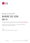 MANUEL D’UTILISATION BARRE DE SON Wi-Fi Veuillez lire attentivement ce manuel avant d’utiliser votre appareil et conservez-le pour référence ultérieure. Modèle DS90TR (DS90TR, SPT8-W, SPT85-SL, SPT85-SR) 2407_Rev02 www.lg.com Copyright © 2024-2025 LG Electronics Inc. Tous droits réservés. Guide pratique de la barre de son Installation et utilisation du produit a Connecter la barre de son à votre téléviseur via un câble optique ou HDMI. b HDMI IN (ARC) HDMI IN OPTICAL OUT a 1 a 2 B HDMI™ IN HDMI™ ▶ TV 3 A OPTICAL IN (eARC/ARC) c c b F E HDMI OUT A Barre de son B Récepteur télécommande C LED de statut (ABC) D Haut-parleurs arrière sans fil E Caisson de basses sans fil - L’installer près de la barre de son. F Périphérique externe - (Lecteur Blu-ray, console de jeu, etc.) 2 D C b En cas d’utilisation d’un périphérique externe (ex. décodeur, lecteur Blu-ray, console de jeux, etc.), le connecter à la barre de son ou au téléviseur via un câble HDMI. c Connecter à l’alimentation dans l’ordre suivant : caisson de basses sans fil [ haut-parleurs arrière sans fil [ barre de son. Puis, mettre la barre de son sous tension : Lorsque la connexion est automatiquement établie avec la barre de son, les LED du caisson de basse sans fil et des hautparleurs arrière sans fil s’allument en vert. ([ Consulter « Connexion du produit » à la page 6.) d Utilisation de la barre de son avec votre TV ([ Consulter « Connexion avec un câble optique », « Connexion avec un câble HDMI », « Connexion via Bluetooth », « Connexion d’un périphérique externe via HDMI A » à la page 32, 34, 36, 37.) A Appuyer de manière répétée sur le bouton Fonction jusqu’à ce que la LED1 s’allume en blanc. En cas d’utilisation d’un périphérique externe connecté à HDMI™ IN sur la barre de son, appuyer sur le bouton Fonction de manière répétée jusqu’à ce que la LED1 s’allume en jaune doré. B Dans les paramètres du téléviseur, ajustez la sortie du haut-parleur sur [HDMI ARC], [Optique], [LG WOWCAST], ou sur [Haut-parleur externe]. e Connexion de la barre de son à votre smartphone via Wi-Fi ([ Consulter « Connexion au produit via l’application LG ThinQ » à la page 15.) A Connecter votre smartphone au Wi-Fi. B Installer l’application LG ThinQ depuis le Google Play ou l’App Store. C Lancer l’application LG ThinQ puis suivre les instructions. D La barre de son se connectera à votre smartphone et pourra être contrôlée avec l’application LG ThinQ. f Connexion de la barre de son à votre smartphone via Bluetooth ([ Consulter « Connexion via Bluetooth » à la page 41.) A Appuyer sur le bouton Paramètres fonction Bluetooth. ( Arrêt > de votre smartphone et sélectionner Bluetooth. Activer la Marche) B Sur la barre, appuyer sur le bouton Appairer Bluetooth LED1 et LED2 clignotent en blanc. . Après un certain moment, les voyants C Sur le smartphone, cherchez et sélectionnez « LG_Speaker_DS90TR_XXXX ». D Quand le produit est connecté à votre smartphone via Bluetooth, les voyants LED1 et LED2 s’allument en blanc. 3 Connexion manuelle de la barre de son au caisson de basses sans fil ou aux haut-parleurs arrière sans fil ([ Consulter « Connexion manuelle du caisson de basses sans fil et des haut-parleurs arrière sans fil » à la page 8.) Si une LED rouge s’allume sur le caisson de basses sans fil ou sur les haut-parleurs arrière sans fil, cela signifie que la barre de son n’est pas connectée aux haut-parleurs. Dans ce cas, les connecter dans l’ordre suivant. A Appuyer sur le bouton Marche/Arrêt de la barre de son pour l'éteindre. B Appuyer sur le bouton PAIRING au dos du caisson de basses sans fil déconnecté ou des hautparleurs arrière sans fil. Vérifier que chaque LED clignote en vert. -- Si une LED est toujours en rouge sur le caisson de basses sans fil, ou les haut-parleurs arrière sans fil, maintenir de nouveau enfoncé le bouton au dos du caisson de basses ou des hautparleurs arrière sans fil. C Appuyer sur le bouton Marche/Arrêt de la barre de son pour l’activer D Une fois la connexion établie, une LED verte s’allumera sur le caisson de basses sans fil ou les haut-parleurs arrière sans fil. 4 Table des matières Guide pratique de la barre de son 2 Installation et utilisation du produit Installation Utilisation du produit comme système audio 41 Connexion via Bluetooth 44 Connexion à un périphérique USB 46 Utilisation de l’application LG ThinQ 47 Compatible avec l’Assistant Google 6 Connexion du produit 10 Configuration du son surround 48 Fonctionne avec Apple AirPlay 15 Connexion au produit via l’application LG ThinQ 49 Connecter Spotify 50 Fonctionne avec Alexa 16 Installation de l’application LG ThinQ et enregistrement du produit 51 18 Réinitialisation du produit Explorer le produit 19 Fixation murale du produit 52 Vérifier avant le montage mural 54 Fixation murale du produit Avant 24 Dos 25 Explorer la télécommande Plusieurs paramètres pratiques 28 Fonctions pratiques 29 Comment modifier les paramètres 30 Réglage du son 31 Tidal Connect Fonction de commentaire vocal Connexion au téléviseur 32 Connexion avec un câble optique 34 Connexion avec un câble HDMI 36 Connexion via Bluetooth Connexion à un périphérique externe Consignes de sécurité 56 Sécurité et réglementation 59 Prévention contre la mauvaise utilisation du produit Avant d’informer d’un dysfonctionnement du produit 63 Dépannage Annexe 69 Caractéristiques 71 Marques déposées et licences 73 Ce qu’il faut savoir à propos des services de réseau 73 Informations sur les logiciels libres 74 Manipuler le produit 37 Connexion avec un câble HDMI 40 Connexion avec un câble optique 5 Installation Connexion du produit Vous pouvez profiter d’un son plus riche en connectant la barre de son au caisson de basses sans fil et aux haut-parleurs arrière sans fil. Connexion automatique du caisson de basses sans fil