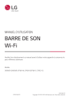 MANUEL D’UTILISATION BARRE DE SON Wi-Fi Veuillez lire attentivement ce manuel avant d’utiliser votre appareil et conservez-le pour référence ultérieure. Modèle DS80QR (DS80QR, SPQ8-W), SPQ8-S(SPQ8-S, S78S2-S) 2304_Rev03 www.lg.com Copyright © 2022-2023 LG Electronics Inc. Tous droits réservés. Guide pratique de la barre de son Installation et utilisation du produit a Connecter la barre de son à votre téléviseur via un câble optique ou HDMI. HDMI IN HDMI IN (ARC) OPTICAL OUT a a C A B HDMI IN HDMI d TV (eARC / ARC) c OPTICAL IN c b c D E C HDMI OUT A Barre de son B Récepteur télécommande / Affichage statut C Haut-parleurs arrière / Récepteur sans fil D Caisson de basses sans fil - L’installer près de la barre de son. E Périphérique externe - (Lecteur Blu-ray, console de jeu, etc.) 2 b En cas d’utilisation d’un périphérique externe (ex. Lecteur Blu-ray, console de jeu, etc.), le connecter à la barre de son via un câble HDMI. c Connecter à l’alimentation dans l’ordre suivant : caisson de basses sans fil [ récepteur sans fil [ barre de son. Puis, mettre la barre de son sous tension : Lorsque la connexion est automatiquement établie avec la barre de son, les LED du caisson de basse sans fil et du récepteur sans fil s’allument en vert. ([ Consulter « Connexion du produit » à la page 6.) d Utilisation du produit avec votre TV([ Consulter « Connexion avec un câble optique », « Connexion avec un câble HDMI », « Connexion via Bluetooth » à la page 43, 45, 47.) A Appuyer de manière répétée sur le bouton Fonction l’affichage de statut. jusqu’à ce que « OPT/HDMI ARC » apparaisse sur B Dans les paramètres du téléviseur, ajuster la sortie du haut-parleur sur [HDMI ARC], [Optique], ou sur [Hautparleur externe]. C Une fois le téléviseur correctement connecté au produit, « OPT »,, « ARC »,, ou « E-ARC », apparaît sur l’affichage de statut avec l’émission d’un son. e Connexion du produit à votre smartphone via Wi-Fi ([ Consulter « Connexion avec un Smartphone via Wi-Fi » à la page 26.) A Connecter votre smartphone au Wi-Fi. B Installer l’application LG Sound Bar depuis le Google Play ou l’App Store. C Lancer l’application LG Sound Bar puis suivre les instructions. D Le produit se connectera à votre smartphone pour vous permettre de contrôler le produit avec l’application LG Sound Bar. f Connexion du produit à votre smartphone via Bluetooth ([ Consulter « Connexion via Bluetooth » à la page 51.) A Appuyer sur le bouton Paramètres Bluetooth. ( Off > On) de votre smartphone et sélectionner B Appuyer sur le bouton Appairer Bluetooth du statut. Bluetooth. Activer la fonction . Après un moment, vous verrez « BT READY » sur l’affichage C Rechercher et appuyer sur « LG_Speaker_DS80QR_XXXX » ou sur le nom que vous avez enregistré dans l’application Google Home. D Lorsque le produit est connecté à votre smartphone via Bluetooth, vous pouvez voir l’affichage de statut passer de « PAIRED » [ « Nom de l’appareil Bluetooth connecté » [ « BT ». 3 Connexion manuelle de la barre de son au caisson de basses sans fil ou au récepteur sans fil ([ Consulter « Connexion manuelle du caisson de basses sans fil », « Connexion manuelle » à la page 8, 10.) Si une LED rouge s’allume au dos du caisson de basses sans fil ou sur le devant du récepteur sans fil, cela signifie que la barre de son n’est pas connectée aux haut-parleurs. Dans ce cas, les connecter dans l’ordre suivant. A Appuyer sur le bouton Marche/Arrêt de la barre de son pour la désactiver. B Appuyer sur le bouton PAIRING au dos du caisson de basses sans fil déconnecté ou du récepteur sans fil. Vérifier que chaque LED clignote en vert. -- Si une LED est toujours en rouge au dos du caisson de basses sans fil, maintenir de nouveau enfoncé le bouton au dos du caisson de basses sans fil. C Appuyer sur le bouton Marche/Arrêt de la barre de son pour l’activer. D Une fois la connexion établie, vous verrez une LED verte s’allumer au dos du caisson de basses sans fil ou sur le devant du récepteur sans fil. 4 Table des matières Guide pratique de la barre de son 2 Installation et utilisation du produit Installation 6 Connexion du produit 12 Profiter d’un son amélioré 26 Connexion avec un Smartphone via Wi-Fi 30 Réinitialisation du produit Explorer le produit 31 Avant 33 Dos 34 Explorer la télécommande Connexion au téléviseur Fixation murale du produit 62 Vérifier avant le montage mural 64 Fixation murale du produit Consignes de sécurité 66 Sécurité et réglementation Avant d’informer d’un dysfonctionnement du produit 69 Dépannage Annexe 75 Caractéristiques 77 Marques déposées et licences 79 Ce qu’il faut savoir à propos des services de réseau 43 Connexion avec un câble optique 45 Connexion avec un câble HDMI 79 Informations sur les logiciels libres 47 Connexion via Bluetooth 80 Manipuler le produit Connexion à un périphérique externe 48 Connexion avec un câble HDMI 50 Connexion avec un câble optique Utilisation du produit comme système audio 51 Connexion via Bluetooth 54 Connexion à un périphérique USB 56 Utilisation de l’application LG Sound Bar 57 Compatible avec l’Assistant Google 58 Fonctionne avec Apple AirPlay 59 Connecter Spotify 60 Fonctionne avec Alexa 61 Tidal Connect 5 Installation Connexion du produit Vous pouvez profiter d’un son plus riche en connectant la barre de son au caisson de basses sans fil. Connexion automatique du caisson de basses sans fil Après avoir achevé l’installation, le caisson de basses sans fil sera automatiquement connecté à la barre de son. Connecter la barre de son au caisson de basses dans l’ordre suivant. a Brancher le câble d’alimentation au caisson de basses sans fil. b Brancher le câble d’alimentation connecté au caisson de basses sans fil à une prise murale. c Brancher le câble d’alimentation à la barre de son. d Brancher le