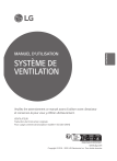 FRANÇAIS MANUEL D’UTILISATION SYSTÈME DE VENTILATION Veuillez lire attentivement ce manuel avant d'utiliser votre climatiseur et conservez-le pour vous y référer ultérieurement. VENTILATEUR Traduction de l’instruction originale Pour usage commercial (exception modèle 150/200 CMH) www.lg.com Copyright © 2018 - 2025 LG Electronics Inc. Tous droits réservés. Table des matières TABLE DES MATIÈRES 3 CONSIGNES DE SÉCURITÉ 8 FONCTIONS SMART 8 Utilisation de l'Application LG ThinQ 10 CONSIGNES AVANT UTILISATION 10 Avant de faire fonctionner votre ventilateur 10 Utilisation 10 Nettoyage et entretien 10 Entretien 11 INTRODUCTION 11 Symboles utilisés dans le manuel 11 Caractéristiques 15 MODE D'EMPLOI (ACCESSOIRES) 15 Nom et fonction – Commande à distance 17 Méthode de fonctionnent et Sélectionnez- Fonctionnement Interconnecté avec ventilation 18 Méthode de fonctionnent et Sélectionnez- Fonctionnement unique de ventilation 19 Mode Ventilation rapide/économie d'énergie 20 Utiliser des modules complémentaires 21 CARACTÉRISTIQUES 21 Ventilation via l’échangeur de chaleur total 21 Ventilation normale 22 MAINTENANCE ET ENTRETIEN 22 Manipulation et nettoyage 22 Démontage 24 Nettoyage et remontage 25 Montage et vérification après maintenance 27 VÉRIFICATIONS À EFFECTUER AVANT DE SIGNALER UN DYSFONCTIONNEMENT 2 Ventilateur Consignes de sécurité Consignes de sécurité Pour éviter tout risque de blessure pour l'utilisateur ou des tiers, ainsi que tout dégât matériel, respectez les consignes ci-dessous. Toute utilisation incorrecte de l’appareil, découlant d'un non-respect des instructions, peut entraîner des risques de blessures corporelles ou d’endommagement matériel. Leur niveau de gravité est indiqué par les libellés ci-dessous. ! AVERTISSEMENT Ce symbole indique un danger de mort ou de blessure grave. ! ATTENTION Ce signe indique un risque de blessure corporelle ou de dégât matériel. Les symboles ci-dessous utilisés dans ce manuel ont la signification suivante : À ne pas faire ! AVERTISSEMENT Installation • Évitez d'utiliser un disjoncteur défectueux ou de capacité insuffisante. Utilisez cet appareil sur un circuit dédié. - Il existe un risque d’incendie ou d’électrocution. • Pour toute réparation électrique, contactez le concessionnaire, le revendeur, un électricien qualifié ou un service après-vente agréé. - Ne tentez pas de démonter ou de réparer vous-même l'appareil. Il existe un risque d’incendie ou d’électrocution. • Raccordez systématiquement l'appareil à la terre. - Il existe un risque d’incendie ou d’électrocution. • Installez le coffret électrique et fixez soigneusement le cache. - Il existe un risque d’incendie ou d’électrocution. • Installez dans tous les cas un circuit dédié et un disjoncteur. - Tout câblage ou installation incorrect peut être à l’origine d’un incendie ou d’une décharge électrique. • Utilisez un disjoncteur ou un fusible de puissance adéquate. - Il existe un risque d’incendie ou d’électrocution. • Ne changez pas le câble d'alimentation et n'utilisez pas de rallonge. - Il existe un risque d’incendie ou d’électrocution. • Ne tentez pas d’installer, de déplacer ou de ré-installer l’unité vous-même. - Il existe un risque d’incendie, d'électrocution, d’explosion ou de blessure. • Déballez et installez le produit avec prudence. - Il comporte des arêtes vives présentant un risque de coupure. Soyez très prudent, en particulier avec les rebords et les ailettes du condensateur et de l'évaporateur. Manuel d'utilisation 3 FRANÇAIS Instructions à respecter Consignes de sécurité • Pour effectuer l'installation, contactez le revendeur ou un service après-vente agréé. - Il existe un risque d’incendie, d'électrocution, d’explosion ou de blessure. • N'installez pas l’appareil sur un support défectueux. - Vous risquez sinon de vous blesser, de provoquer un accident ou d’endommager l’appareil. • Ne laissez pas le ventilateur fonctionner longtemps dans un environnement très humide ou lorsqu’une porte ou une fenêtre est ouverte. - L'humidité risque alors de se condenser et de mouiller ou d'endommager le mobilier. • Si vous souhaitez modifier l'installation de l'appareil, contactez votre revendeur ou un service après-vente agréé. - Il existe un risque d'incendie, d’électrocution, d'explosion ou de blessures. • N’ouvrez pas le capot d’entretien de l’unité principale lorsque le ventilateur est en marche. - Sinon, il existe un risque d’électrocution. • Disposez un filet sur la bouche d’aspiration de l’unité extérieure afin d’éviter que des oiseaux ne viennent s’y nicher. - Retirez tous les éléments étrangers tels que des nids d’oiseaux. Sinon, cela peut provoquer un manque d’oxygène dans l’unité. • Installez une prise d’air lorsque l’air pollué ne peut être directement aspiré. - Cela peut provoquer des accidents tels que la suffocation, à cause de l’aspiration de gaz nocifs (monoxyde de carbone, etc.). • Installez le ventilateur à un endroit suffisamment solide pour supporter le poids de l’appareil. - Sinon, l'appareil risque de tomber et entraîner un accident. • Les précautions doivent être prises pour éviter le reflux de gaz dans la pièce via le conduit de gaz ouvert ou d'autres appareils à combustion. • Lors du montage, de l’entretien ou de la réparation de la UV LED, les modules fournis par LG Electronics doivent être utilisés. Si nécessaire, veuillez contacter un centre de service LG Electronics. - Module d’information UV LED : LTPL-G35U275GS -TWA Fonctionnement • Veillez à ce qu’il soit impossible de tirer sur le câble d’alimentation ou de l’endommager pendant le fonctionnement de l’appareil. - Il existe un risque d’incendie ou d’électrocution. • Ne placez AUCUN objet sur le câble d’alimentation. - Il existe 