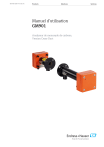 8030485/AE00/V4-0/2022-06 Products Solutions Manuel d’utilisation GM901 Analyseur de monoxyde de carbone, Version Cross-Duct Services GM901 Produit décrit Nom du produit : GM901 Variante : Version Cross-Duct Fabricant Endress+Hauser SICK GmbH+Co. KG Bergener Ring 27 01458 Ottendorf-Okrilla Allemagne Informations légales Ce document est protégé par des droits d'auteur. Les droits ainsi obtenus restent acquis à la société Endress+Hauser SICK GmbH+Co. KG. La reproduction complète ou partielle de ce document n'est autorisée que dans les limites des dispositions légales de la loi sur les droits d'auteur. Toute modification, résumé ou traduction de ce document est interdit sans autorisation expresse écrite de la société Endress+Hauser SICK GmbH+Co. KG. Toutes les marques citées dans ce document sont la propriété de leurs propriétaires respectifs. © Endress+Hauser SICK GmbH+Co. KG. Tous droits réservés. Document original Ce document est un document original de la société Endress+Hauser SICK GmbH+Co. KG. 2 MA NU EL D’ U T ILI SAT I O N 8030485/AE00/V4-0/2022-06 Endress+Hauser CONTENU Contenu 1 A propos de ce document......................................................................... 7 1.1 1.2 1.3 1.4 1.5 1.6 2 Pour votre sécurité ..................................................................................10 2.1 2.2 2.3 2.4 2.5 2.6 2.7 2.8 3 3.3 3.4 3.5 3.6 Identification du produit ...............................................................................14 Caractéristiques du produit ..........................................................................14 3.2.1 Sensibilités transversales ............................................................14 Versions d'appareil........................................................................................17 Synoptique.....................................................................................................18 Livraison standard ........................................................................................19 3.5.1 Unité de commande .....................................................................19 3.5.2 Interface PROFIBUS (si existant)..................................................19 Accessoires optionnels .................................................................................20 Transport et stockage .............................................................................21 4.1 Endress+Hauser Utilisation conforme......................................................................................10 Responsabilité de l'utilisateur ......................................................................10 Précautions pour le traitement des défauts ................................................11 Mesures préventives de protection fondamentales contre les dommages aux personnes et aux biens..........................................................................11 Respect de l'environnement.........................................................................11 Responsabilité de la sécurité du système ...................................................11 Protection contre les dangers dus aux gaz..................................................12 2.7.1 Mesures de protection contre les gaz libérés .............................12 2.7.2 Gaz dangereux pour la santé dans l'appareil/le module ..........12 2.7.3 Gaz chauds dans un environnement en surpression .................12 2.7.4 Comportement en cas de panne d'air de ventilation ..................12 Sécurité électrique........................................................................................13 2.8.1 Protection contre les dangers dus aux courants électriques .....13 2.8.2 Sécurité électrique grâce à un sectionneur/disjoncteur correctement installé ...................................................................13 2.8.3 Dimension correcte des câbles pour assurer la sécurité électrique ......................................................................................13 2.8.4 Mise à la terre des appareils ......................................................13 Description du produit.............................................................................14 3.1 3.2 4 Fonction de ce document ............................................................................... 7 Champ d'application ....................................................................................... 7 Utilisateurs prévus .......................................................................................... 7 Informations supplémentaires ....................................................................... 7 Symboles et conventions................................................................................ 8 1.5.1 Symboles d'avertissement ............................................................ 8 1.5.2 Degrés d'avertissement/Glossaire de signalisation ..................... 8 1.5.3 Symboles des remarques ............................................................... 8 Intégrité des données ..................................................................................... 8 Stockage........................................................................................................21 M A NU EL D’ U TI LISA T IO N 8030485/AE00/V4-0/2022-06 3 CONTENU 5 Montage .................................................................................................... 22 5.1 5.2 5.3 5.4 5.5 5.6 5.7 6 Installation électrique ............................................................................. 32 6.1 6.2 6.3 6.4 6.5 6.6 6.7 7 7.3 7.4 MA NU EL D’ U T ILI SAT I O N 8030485/AE00/V4-0/2022-06 Conditions pour la mise en service.............................................................. 38 Calibrage ....................................................................................................... 39 7.2.1 Préalable au réglage du point zéro ........