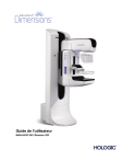 Guide de l'utilisateur MAN-04197-901 Révision 003 Selenia Dimensions ® Système de mammographie numérique Système de tomosynthèse numérique Guide de l'utilisateur pour la version logicielle 1.8 avec C-View Référence MAN-04197-901 Révision 003 Juillet 2021 ® Service technique États-Unis: +1.877.371.4372 Europe: +32 2 711 4690 Asie: +852 37487700 Australie: +1 800 264 073 Autres pays: +1 781 999 7750 Courriel: [email protected] © 2015-2021 Hologic, Inc. Imprimé aux États-Unis. La version originale du présent guide est rédigée en anglais. Hologic, C-View, Dimensions, FAST Paddle, Hologic Connect, HTC, I-View, SecurView et les logos associés sont des marques commerciales et/ou déposées de Hologic, Inc. et/ou de ses filiales aux États-Unis et/ou dans d'autres pays. Tous les autres noms de produits, marques commerciales et marques déposées sont la propriété de leurs détenteurs respectifs. Ce produit peut être protégé par un ou plusieurs brevets américains ou étrangers, comme indiqué sur le site www.Hologic.com/patent-information. Guide de l’utilisateur du système Selenia Dimensions Table des matières Table des matières Liste des figures ___________________________________________________________ xi Liste des tableaux __________________________________________________________ xv 1: Introduction______________________________________________________________ 1 1.1 1.2 1.3 1.4 1.5 1.6 1.7 1.8 1.9 1.10 1.11 1.12 1.13 1.14 1.15 1.16 1.17 1.18 1.19 Utilisation prévue...........................................................................................................................................................1 Effets indésirables possibles des systèmes de mammographie sur la santé...................................................... 1 Contre-indications ..........................................................................................................................................................2 Utilisation prévue de ce manuel de l’utilisateur...................................................................................................... 2 Capacités du système.....................................................................................................................................................2 Pour plus d'informations sur la tomosynthèse........................................................................................................ 2 À propos de C-View ......................................................................................................................................................4 1.7.1 Logiciel C-View..................................................................................................................................................4 1.7.2 Avertissements ...................................................................................................................................................4 1.7.3 Principes de fonctionnement du logiciel C-View ....................................................................................... 5 Plaintes concernant le produit.....................................................................................................................................5 Assistance technique......................................................................................................................................................5 Déclaration de garantie .................................................................................................................................................6 Déclaration de cybersécurité Hologic ........................................................................................................................ 6 Critères de contrôle qualité ..........................................................................................................................................6 Où se trouvent les instructions relatives à l'installation ........................................................................................ 6 Profils des utilisateurs ...................................................................................................................................................7 1.14.1 Technicien en mammographie........................................................................................................................ 7 1.14.2 Radiologue ..........................................................................................................................................................7 1.14.3 Physicien médical ..............................................................................................................................................7 Formation requise...........................................................................................................................................................7 Termes et définitions .....................................................................................................................................................8 Symboles.........................................................................................................................................................................10 Descriptions des avertissements, mises en garde et remarques.........................................................................11 Conventions des documents ......................................................................................................................................11 2: Informations générales____________________________________________________ 13 2.1 2.2 2.3 2.4 2.5 2.6 2.7 Description du système...............................................................................................................................................13 2.1.1 Porte-tube .............................................................................................