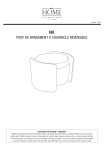 Janvier, 2025 SBL POUF DE RANGEMENT À COUVERCLE RÉVERSIBLE Instructions de montage – Important: Déballez soigneusement le colis et identifiez chaque composant avant de tenter un montage. Référez-vous à la liste des pièces jointe. Veuillez prendre soin lors du montage de l’unité et posez toujours les pièces sur une surface propre et lisse. Si vous avez besoin d’assistance en ce qui concerne le montage, les pièces ou si vous souhaitez recevoir des informations sur d’autres produits, veuillez visiter notre site Web: www.officestar.net, ou écrivez-nous par courriel ou par la poste. 1. Ne pas utiliser ce produit à moins que toutes les vis et tous les boulons soient resserrés. 2. Vérifier à tous les trois mois ou au besoin que toutes les vis et tous les boulons sont resserrés.. 3. Éliminer les matériaux de conditionnement d’une manière convenable. Ne pas utiliser la couverture en plastique pour couvrir la tête à cause du risque d’étouffement. 4. Ne pas utiliser ce produit comme un escabeau. 5. Ce produit ne doit servir qu’à l’usage pour lequel il a été conçu. 6. POUR USAGE INTÉRIEUR ET RÉSIDENTIEL SEULEMENT. GARANTIE LIMITÉE OSP Home Furnishings® garantit à l’acheteur original que ce produit sera exempt de tout défaut de pièces et de main d’oeuvre tel que décrit ci-dessous. OSP Home Furnishings® réparera ou remplacera, à sa discrétion, sans frais à l’acheteur original seulement, les produits ou les pièces défectueux/défectueuses durant une période d’un (1) an à compter de la date d’achat. Les pièces de rechange ne peuvent être fournies que lorsque celles-ci sont disponibles. Les pièces d’articles discontinués peuvent ne pas être disponibles. Cette garantie est effective pour la période de temps applicable à compter de la date d’achat indiquée sur votre reçu de vente original. Cette garantie est votre seul recours pour les défauts de produits et exclut les défauts liés à ou découlant d’un abus ou d’une mauvaise utilisation d’un produit, à l’utilisation d’une modification, ou d’accessoires, d’un produit, et aux produits ou pièces utilisés, entretenus ou installés contrairement aux directives d’installation, d’entretien ou autres applicables de l’entreprise. Il n’existe aucune autre garantie, expresse ou implicite, autre que celle expressément décrite, y compris, mais sans s’y limiter, toute garantie implicite de qualité marchande ou d’adéquation à un usage particulier. OSP Home Furnishings® ne sera pas tenue responsable des dommages directs ou indirects. Certaines Provinces ne permettent pas l’exclusion ou la limitation des dommages accidentels ou consécutifs, et donc les limitations ou exclusions susmentionnées peuvent ne pas s’appliquer à vous. Cette garantie vous donne des droits légaux spécifiques comme vous pouvez également avoir d’autres droits qui peuvent varier d’une Province à l’autre. Nos normes de qualité sont parmi les meilleures de l’industrie. Parfois, et malgré toutes nos tentatives, il existe des moments où les pièces peuvent être endommagées ou manquantes. Notre service des pièces de rechange fera tout son possible pour remédier rapidement à ce problème. Contactez-nous par courriel [email protected], par télécopieur 905-761-1296 ou par téléphone au numéro sans frais du service des pièces 866-382-9998, du lundi au vendredi de 8h00 à 15h30, heure de l’Est. Pour faire une réclamation de garantie, contacter le service des pièces. Fournir le numéro de modèle, preuve de paiement, et une description du problème. À sa discrétion, OSP Home Furnishings®: (a) fournira des pièces compatibles de produits courants (b) réparera la pièce du client. Le client doit payer d’avance les frais de transport de toute pièce retournée à l’usine. Les frais de transport de retour pour des pièces encore sous garantie seront payés par OSP Home Furnishings®. ">
