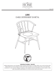 Août, 2024 LCNC CHAISE ENTIÈREMENT EN MÉTAL Instructions de montage – Important: Déballez soigneusement le colis et identifiez chaque composant avant de tenter un montage. Référez-vous à la liste des pièces jointe. Veuillez prendre soin lors du montage de l’unité et posez toujours les pièces sur une surface propre et lisse. Si vous avez besoin d’assistance en ce qui concerne le montage, les pièces ou si vous souhaitez recevoir des informations sur d’autres produits, veuillez visiter notre site Web: www.officestar.net, ou écrivez-nous par courriel ou par la poste. 1. Ne pas utiliser ce produit à moins que toutes les vis et tous les boulons soient resserrés. 2. Vérifier à tous les trois mois ou au besoin que toutes les vis et tous les boulons sont resserrés. 3. Éliminer les matériaux de conditionnement d’une manière convenable. Ne pas utiliser la couverture en plastique pour couvrir la tête à cause du risque d’étouffement. 4. Ne pas utiliser ce produit comme un escabeau. 5. Ce produit ne doit servir qu’à l’usage pour lequel il a été conçu. 6. POUR USAGE INTÉRIEUR ET RÉSIDENTIEL SEULEMENT. GARANTIE LIMITÉE OSP Home Furnishings® garantit à l’acheteur original que ce produit sera exempt de tout défaut de pièces et de main d’oeuvre tel que décrit ci-dessous. OSP Home Furnishings® réparera ou remplacera, à sa discrétion, sans frais à l’acheteur original seulement, les produits ou les pièces défectueux/défectueuses durant une période d’un (1) an à compter de la date d’achat. Les pièces de rechange ne peuvent être fournies que lorsque celles-ci sont disponibles. Les pièces d’articles discontinués peuvent ne pas être disponibles. Cette garantie est effective pour la période de temps applicable à compter de la date d’achat indiquée sur votre reçu de vente original. Cette garantie est votre seul recours pour les défauts de produits et exclut les défauts liés à ou découlant d’un abus ou d’une mauvaise utilisation d’un produit, à l’utilisation d’une modification, ou d’accessoires, d’un produit, et aux produits ou pièces utilisés, entretenus ou installés contrairement aux directives d’installation, d’entretien ou autres applicables de l’entreprise. Il n’existe aucune autre garantie, expresse ou implicite, autre que celle expressément décrite, y compris, mais sans s’y limiter, toute garantie implicite de qualité marchande ou d’adéquation à un usage particulier. OSP Home Furnishings® ne sera pas tenue responsable des dommages directs ou indirects. Certaines Provinces ne permettent pas l’exclusion ou la limitation des dommages accidentels ou consécutifs, et donc les limitations ou exclusions susmentionnées peuvent ne pas s’appliquer à vous. Cette garantie vous donne des droits légaux spécifiques comme vous pouvez également avoir d’autres droits qui peuvent varier d’une Province à l’autre. Nos normes de qualité sont parmi les meilleures de l’industrie. Parfois, et malgré toutes nos tentatives, il existe des moments où les pièces peuvent être endommagées ou manquantes. Notre service des pièces de rechange fera tout son possible pour remédier rapidement à ce problème. Contactez-nous par courriel [email protected], par télécopieur 905-761-1296 ou par téléphone au numéro sans frais du service des pièces 866-382-9998, du lundi au vendredi de 8h00 à 15h30, heure de l’Est. Pour faire une réclamation de garantie, contacter le service des pièces. Fournir le numéro de modèle, preuve de paiement, et une description du problème. À sa discrétion, OSP Home Furnishings®: (a) fournira des pièces compatibles de produits courants (b) réparera la pièce du client. Le client doit payer d’avance les frais de transport de toute pièce retournée à l’usine. Les frais de transport de retour pour des pièces encore sous garantie seront payés par OSP Home Furnishings®. PIÈCES (A) Cadre de Dossier (1 Pc) (B) Cadre de Jambe (1 Pc) MATÉRIEL ÉT. DESSIN DESCRIPTION TAILLE QUANTITÉ 1 Boulon Allen 1/4" x 20mm 5 Pcs + 1 suppl. 2 Clé Allen 4mm 1 Pc ÉTAPE 1 1 A B 1 1 TOURNEZ SOIGNEUSEMENT À LA POSITION VERTICALE. APPLIQUEZ UNE PRESSION FERME POUR ALIGNER ET SERREZ COMPLÈTEMENT TOUS LES BOULONS. x5 ">