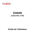 Z2464N (nubia Neo 3 5G) Guide de l'utilisateur À propos de ce guide Nous vous remercions d’avoir choisi cet appareil mobile nubia. Afin de conserver votre appareil en parfait état, lisez attentivement ce guide et conservez-le pour le consulter ultérieurement. Copyright Copyright © 2025 ZTE CORPORATION. Tous droits réservés. Aucune partie de ce guide ne peut être extraite, reproduite, traduite, ni utilisée sous quelque forme ou par quelque moyen que ce soit, électronique ou mécanique, y compris par photocopie ou microfilm, sans l’accord préalable écrit de ZTE Corporation. Avis ZTE Corporation se réserve le droit d’apporter des modifications aux erreurs d’impression ou de mettre à jour la fiche technique de ce guide sans notification préalable. Ce guide a été conçu avec le plus grand soin pour garantir la précision de son contenu. Cependant, toutes les déclarations, informations et recommandations qu'il contient ne constituent en aucun cas une quelconque garantie, ni expresse ni tacite. Veuillez lire attentivement la section Pour votre sécurité afin de vous assurer que vous utilisez votre téléphone portable correctement et en toute sécurité. Nous proposons un service d’assistance autonome à nos utilisateurs d’appareils intelligents. Veuillez visiter le site web officiel de ZTE (à l’adresse https://ztedevices.com) pour plus d’informations sur le service d’assistance autonome et les modèles pris en charge. Les informations disponibles sur le site web prévalent sur les autres sources d’informations. Limitation de responsabilité ZTE Corporation décline toute responsabilité pour tout problème ou dommage résultant d’une modification non autorisée du logiciel. 2 Les images et captures d'écran utilisées dans ce guide peuvent différer du produit final. Le contenu de ce guide peut différer du produit ou logiciel final. Marques commerciales ZTE et les logos ZTE sont des marques commerciales de ZTE Corporation. nubia et les logos nubia sont des marques commerciales de Nubia Technology Co., Ltd. Android™ est une marque commerciale de Google LLC. La marque commerciale et les logos Bluetooth® sont la propriété de Bluetooth SIG, Inc. et sont utilisés sous licence par ZTE Corporation. Le logo microSDXC est une marque commerciale de SD-3C, LLC. POUR LES BREVETS LIÉS À DTS, CONSULTEZ LE SITE WEB HTTP://XPERI.COM/DTS-PATENTS/. FABRIQUÉ SOUS LICENCE DE DTS, INC. ET DE SES SOCIÉTÉS AFFILIÉES. DTS, DTS:X, LE LOGO DTS:X ET DTS:X ULTRA SONT DES MARQUES DÉPOSÉES OU DES MARQUES COMMERCIALES DE DTS, INC. ET DE SES SOCIÉTÉS AFFILIÉES AUX ÉTATS-UNIS ET/OU DANS D’AUTRES PAYS. © DTS, INC. ET SES SOCIÉTÉS AFFILIÉES. TOUS DROITS RÉSERVÉS. Les autres marques commerciales et noms de marque appartiennent à leurs propriétaires respectifs. 3 Icônes pédagogiques Informations, instructions REMARQUE supplémentaires ou astuces supplémentaires pour le fonctionnement du produit. Informations relatives à la sécurité qui, si ATTENTION elles sont ignorées, peuvent causer des dommages mineurs à l'équipement ou entraîner une interruption de service. Informations relatives à la sécurité qui, si elles sont ignorées, peuvent causer des AVERTISSEMENT dommages graves à l'équipement ou présenter un danger pour la sécurité personnelle. Numéro de version : R1.0 Date d'édition :20 février 2025 4 Table des matières Nouvelles fonctionnalités passionnantes ........... 12 Taux d’actualisation réglable de l’écran............................. 12 Adapté à la 5G .................................................................. 12 Live Island ......................................................................... 12 Z-SmartCast ...................................................................... 12 Traduction/sous-titre de l’appel en temps réel................... 13 Traduction de dialogues .................................................... 13 Reconnaissance faciale .................................................... 13 Identification des empreintes digitales .............................. 13 Espace privé ..................................................................... 13 WeShare ........................................................................... 14 RAM étendue .................................................................... 14 Espace de jeux.................................................................. 14 Déclencheurs bandoulière ................................................ 14 Mise en route.......................................................... 15 Faites connaissance avec votre téléphone ....................... 15 Explication des touches .................................................... 17 Configuration de votre téléphone ...................................... 17 Charge du téléphone......................................................... 19 Vérification des informations sur la batterie ...................... 21 Conseils d’entretien de la batterie ..................................... 21 Mise sous tension/Mise hors tension ................................ 23 Configuration initiale.......................................................... 23 Verrouillage/déverrouillage de l'écran et des touches ....... 23 5 Prise en main de l'écran d'accueil ..................................... 24 Personnalisation .................................................... 26 Sélection du mode d’écran d’accueil ................................. 26 Définition du style de navigation ....................................... 27 Modification de la langue du système ............................... 28 Activation du mode Vibreur ou du mode Silencieux .......... 29 Utilisation du mode Ne pas déranger ................................ 29 Choix de votre fond d'écran .............................................. 31 Changement de thème...................................................... 31 Réglage du t