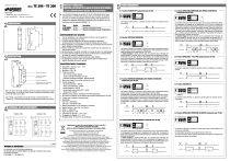 Mod. TE 200 - TE 300 MKIS00905-011-202311-FR Vemer S.p.A. I - 32032 Feltre (BL) • Via Camp Lonc, 16 e-mail : [email protected] - Web site : www.vemer.it 2 Les minuteries d'éclairage des escaliers TE 200 et TE 300 gèrent dans le temps la permanence des lumières dans des locaux tels que les couloirs, les escaliers, les caves, afin d'éviter les gaspillages d'énergie inutiles. Elles appartiennent à la catégorie des dispositifs électroniques d'interruption avec une distance micro (μ) d'ouverture entre les contacts (EN 60669-2-1). DIMENSIONS 18 1 Manuel d’utilisation MINUTERIE AUTOMATIQUE D'ÉCLAIRAGE D’ESCALIER ÉLECTRONIQUE Lire attentivement toutes les instructions Code VJ79720000 VE766700 65 Modèle TE 200 TE 300 5 FONCTIONNEMENT 5.1 Fonction TOUJOURS OFF (uniquement pour TE 300) Les lumières restent éteintes : la pression du bouton externe ne provoque aucune commutation. Description Minuterie d’éclairage d’escalier Minuterie d’éclairage d'escalier multifonctions AVERTISSEMENTS DE SÉCURITÉ 91 Lors de l’installation et du fonctionnement du produit, il est nécessaire de respecter les prescriptions suivantes : 1) Le produit doit être installé par une personne qualifiée en respectant scrupuleusement les schémas de raccordement indiqués dans ce manuel 2) Après l’installation, l'inaccessibilité aux bornes de raccordement doit être garantie sans l’utilisation d'outils spéciaux 3) Avant d'accéder aux bornes de raccordement, s'assurer que les conducteurs ne sont pas sous tension 4) Ne pas alimenter ni connecter le produit si une partie de celui-ci est endommagée 5) Le produit doit être installé et mis en service conformément à la réglementation en vigueur en matière d'installations électriques 6) Ne pas utiliser le produit à des fins autres que celles indiquées 7) Un dispositif de protection contre les surintensités doit être installé dans le système électrique en amont du produit 3 DESCRIPTION 5.2 Fonction TEMPORISÉE RÉARMABLE Les lumières s'allument à la pression du bouton externe pour la temporisation définie. Chaque pression ultérieure provoque le redémarrage de la temporisation. La temporisation est signalée par le clignotement de la LED verte. La longue pression du bouton (pendant plus de 5 secondes) force l’allumage des lumières pendant 60 minutes. Dans ce cas, la temporisation est signalée par le clignotement lent de la LED verte. Pendant la temporisation, une nouvelle pression longue sur le bouton provoque le redémarrage de la temporisation pendant 60 minutes supplémentaires, tandis qu'une pression courte (moins de 5 secondes) provoque le redémarrage de la temporisation pendant le temps défini par le trimmer. 5.5 Fonction IMPULSIONS TEMPORISÉE AVEC PRÉAVIS D'EXTINCTION (uniquement pour TE 300) Les lumières s'allument à la pression du bouton externe pour la temporisation définie. La temporisation est signalée par le clignotement de la LED verte. La pression du bouton externe pendant la temporisation provoque la fin anticipée de la temporisation (extinction des lumières). Une fois la temporisation terminée, la phase de préavis commence (d'une durée totale d'environ 20 secondes) : les lumières s'éteignent pendant 1 seconde, puis se rallument pendant 10 secondes. Cette séquence est répétée deux fois. La pression du bouton externe (à la fois pendant la temporisation et la phase de préavis) provoque l'extinction des lumières. La pression longue du bouton (pendant plus de 5 secondes) force l’allumage des lumières pendant 60 minutes. Dans ce cas, la temporisation est signalée par le clignotement lent de la LED verte. Pendant la temporisation, une nouvelle pression sur le bouton provoque la fin anticipée de la temporisation (extinction des lumières). 5.6 Fonction IMPULSIONS – PAS À PAS (uniquement pour TE 300) CARACTÉRISTIQUES TECHNIQUES • • • • Sélecteur de fonctions Trimmer pour réglage temporisation T Diodes de signalisation Dip-switch par choix de fonctions (uniquement pour TE300) Avec le TE 300, il est possible d'effectuer toutes les fonctions décrites dans l’encadré « Fonctionnement » de ce manuel. Choisir la fonction souhaitée en positionnant le sélecteur et le dip-switch comme décrit. Avec le TE 200, il est possible d'exécuter les fonctions « Temporisé réarmable » et « Toujours ON ». Choisir la fonction souhaitée en positionnant le sélecteur comme décrit. 4 • • • • • • • • • • • SCHÉMAS DE RACCORDEMENT Schéma 3 fils • • Schéma 4 fils Alimentation : 230 Vca (-15 % ÷ 10 %) Fréquence : 50/60 Hz Absorption : 6 VA (1 W) Portée des contacts : - 16 A / 250 Vac (charge résistive) - tension maximale commutable : 400 Vca - puissance maximale commutable : 4000 VA (résistif) Bornier pour câbles d'une section maximale de 4 mm2 Type de chargement : - lampes fluorescentes : 1000 VA - lampes à incandescence : 2000 W - lampes halogènes : 2000 W - lampes basse consommation (CFL) : 200 W - lampes à LED : 200 W Sélecteur à deux positions : ON (allumée fixe), PRG (temporisée) Dip-switch à 4 positions pour la sélection de la fonction (uniquement pour TE 300) Trimmer pour le réglage de la temporisation Signalisation : LED verte = alimentation LED rouge = intervention relais Plage de temporisation : de 30 secondes à 20 minutes Boutons lumineux : max 50 de 1 mA chacun Boîtier : 1 module DIN Degré de protection : IP20 Température de stockage : -10°C ÷ 60°C Température d'utilisation : 0°C ÷ 50°C Humidité relative : 20 % à 90 % non condensant Les lumières s'allument à la pression du bouton externe et s'éteignent à la pression suivante. 5.3 Fonction TEMPORISÉE RÉARMABLE AVEC PRÉAVIS D'EXTINCTION (uniquement pour TE 300) 5.7 Fonction TOUJOURS ON Les lumières s'allument à la pression du bouton externe pour la temporisation définie. Chaque pression ultérieure provoque le redémarrage de la temporisation. La temporisation e