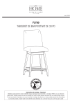 août, 2023 FLY30 TABOURET DE BAR PIVOTANT DE 30 PO Instructions de montage – Important: Déballez soigneusement le colis et identifiez chaque composant avant de tenter un montage. Référez-vous à la liste des pièces jointe. Veuillez prendre soin lors du montage de l’unité et posez toujours les pièces sur une surface propre et lisse. Si vous avez besoin d’assistance en ce qui concerne le montage, les pièces ou si vous souhaitez recevoir des informations sur d’autres produits, veuillez visiter notre site Web: www.officestar.net, ou écrivez-nous par courriel ou par la poste. 1. Ne pas utiliser ce produit à moins que toutes les vis et tous les boulons soient resserrés. 2. Vérifier à tous les trois mois ou au besoin que toutes les vis et tous les boulons sont resserrés.. 3. Éliminer les matériaux de conditionnement d’une manière convenable. Ne pas utiliser la couverture en plastique pour couvrir la tête à cause du risque d’étouffement. 4. Ne pas utiliser ce produit comme un escabeau. 5. Ce produit ne doit servir qu’à l’usage pour lequel il a été conçu. 6. POUR USAGE INTÉRIEUR ET RÉSIDENTIEL SEULEMENT. GARANTIE LIMITÉE OSP Home Furnishings® garantit à l’acheteur original que ce produit sera exempt de tout défaut de pièces et de main d’oeuvre tel que décrit ci-dessous. OSP Home Furnishings® réparera ou remplacera, à sa discrétion, sans frais à l’acheteur original seulement, les produits ou les pièces défectueux/défectueuses durant une période d’un (1) an à compter de la date d’achat. Les pièces de rechange ne peuvent être fournies que lorsque celles-ci sont disponibles. Les pièces d’articles discontinués peuvent ne pas être disponibles. Cette garantie est effective pour la période de temps applicable à compter de la date d’achat indiquée sur votre reçu de vente original. Cette garantie est votre seul recours pour les défauts de produits et exclut les défauts liés à ou découlant d’un abus ou d’une mauvaise utilisation d’un produit, à l’utilisation d’une modification, ou d’accessoires, d’un produit, et aux produits ou pièces utilisés, entretenus ou installés contrairement aux directives d’installation, d’entretien ou autres applicables de l’entreprise. Il n’existe aucune autre garantie, expresse ou implicite, autre que celle expressément décrite, y compris, mais sans s’y limiter, toute garantie implicite de qualité marchande ou d’adéquation à un usage particulier. OSP Home Furnishings® ne sera pas tenue responsable des dommages directs ou indirects. Certains États ne permettent pas l’exclusion ou la limitation des dommages accidentels ou consécutifs, et donc les limitations ou exclusions susmentionnées peuvent ne pas s’appliquer à vous. Cette garantie vous donne des droits légaux spécifiques comme vous pouvez également avoir d’autres droits qui peuvent varier d’un État à un autre. Nos normes de qualité sont parmi les meilleures de l’industrie. Parfois, et malgré toutes nos tentatives, il existe des moments où les pièces peuvent être endommagées ou manquantes. Notre service des pièces de rechange fera tout son possible pour remédier rapidement à ce problème. Contactez-nous par courriel [email protected], par télécopieur 1-909-930-5629 ou par téléphone au numéro sans frais du service des pièces 1-800-950-7262, du lundi au vendredi de 8h00 à 15h30, heure du Pacifique. Pour faire une réclamation de garantie, contacter le service des pièces. Fournir le numéro de modèle, preuve de paiement, et une description du problème. À sa discrétion, OSP Home Furnishings®: (a) fournira des pièces compatibles de produits courants (b) réparera la pièce du client. Le client doit payer d’avance les frais de transport de toute pièce retournée à l’usine. Les frais de transport de retour pour des pièces encore sous garantie seront payés par OSP Home Furnishings®. LISTE DES PIÈCES (A) Coussin de Siège (1 PC) (B) Jambe Droite (2 PCS) (C) Jambe Gauche (2 PCS) (D) Barre Arrière(1 PC) (E) Barre Avant (1 PC) (F) Barre Latérale (2 PCS) LISTE DE MATÉRIEL ÉT. DESSIN DESCRIPTION TAILLE QUANTITÉ 1 Boulon Allen 5/16" x 60mm +1 Supplémentaire 2 Rondelle Plate 5/16" x 19mm 3 Rondelle Élastique 5/16" x 13mm 4 Vis #8 x 32mm 5 Clé Allen 5mm Un tournevis cruciforme est également nécessaire pour l'assemblage (non fourni) 8 PCS 8 PCS +1 Supplémentaire 8 PCS +1 Supplémentaire 8 PCS +1 Supplémentaire 1 PC ÉTAPE 1 C B 4 D 4 SERREZ COMPLÈTEMENT TOUS LES VIS ÉTAPE 2 B 4 C E 4 SERREZ COMPLÈTEMENT TOUS LES VIS ÉTAPE 3 5 1 3 2 A C B D SERREZ COMPLÈTEMENT TOUS LES BOULONS ÉTAPE 4 F F ÉTAPE 5 B E C F F 2 3 1 5 SERREZ COMPLÈTEMENT TOUS LES BOULONS ÉTAPE 6 4 4 4 4 SERREZ COMPLÈTEMENT TOUS LES VIS ">