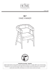 Janvier, 2025 KLY CHAISE À MANGER Instructions de montage – Important: Déballez soigneusement le colis et identifiez chaque composant avant de tenter un montage. Référez-vous à la liste des pièces. Veuillez prendre soin lors du montage de l’unité et posez toujours les pièces sur une surface propre et lisse. Si vous avez besoin d’assistance en ce qui concerne le montage, les pièces ou si vous souhaitez recevoir des informations sur d’autres produits, veuillez visiter notre site Web: www.officestar.net, ou écrivez-nous par courriel ou par la poste. 1. Ne pas utiliser ce produit à moins que toutes les vis et tous les boulons soient resserrés. 2. Vérifier à tous les trois mois ou au besoin que toutes les vis et tous les boulons sont resserrés. 3. Éliminer les matériaux de conditionnement d’une manière convenable. Ne pas utiliser la couverture en plastique pour couvrir la tête à cause du risque d’étouffement. 4. Ne pas utiliser ce produit comme un escabeau. 5. Ce produit ne doit servir qu’à l’usage pour lequel il a été conçu. 6. POUR USAGE INTÉRIEUR ET RÉSIDENTIEL SEULEMENT. GARANTIE LIMITÉE OSP Home Furnishings® garantit à l’acheteur original que ce produit sera exempt de tout défaut de pièces et de main d’oeuvre tel que décrit ci-dessous. OSP Home Furnishings® réparera ou remplacera, à sa discrétion, sans frais à l’acheteur original seulement, les produits ou les pièces défectueux/défectueuses durant une période d’un (1) an à compter de la date d’achat. Les pièces de rechange ne peuvent être fournies que lorsque celles-ci sont disponibles. Les pièces d’articles discontinués peuvent ne pas être disponibles. Cette garantie est effective pour la période de temps applicable à compter de la date d’achat indiquée sur votre reçu de vente original. Cette garantie est votre seul recours pour les défauts de produits et exclut les défauts liés à ou découlant d’un abus ou d’une mauvaise utilisation d’un produit, à l’utilisation d’une modification, ou d’accessoires, d’un produit, et aux produits ou pièces utilisés, entretenus ou installés contrairement aux directives d’installation, d’entretien ou autres applicables de l’entreprise. Il n’existe aucune autre garantie, expresse ou implicite, autre que celle expressément décrite, y compris, mais sans s’y limiter, toute garantie implicite de qualité marchande ou d’adéquation à un usage particulier. OSP Home Furnishings® ne sera pas tenue responsable des dommages directs ou indirects. Certaines Provinces ne permettent pas l’exclusion ou la limitation des dommages accidentels ou consécutifs, et donc les limitations ou exclusions susmentionnées peuvent ne pas s’appliquer à vous. Cette garantie vous donne des droits légaux spécifiques comme vous pouvez également avoir d’autres droits qui peuvent varier d’une Province à l’autre. Nos normes de qualité sont parmi les meilleures de l’industrie. Parfois, et malgré toutes nos tentatives, il existe des moments où les pièces peuvent être endommagées ou manquantes. Notre service des pièces de rechange fera tout son possible pour remédier rapidement à ce problème. Contactez-nous par courriel [email protected], par télécopieur 905-761-1296 ou par téléphone au numéro sans frais du service des pièces 866-382-9998, du lundi au vendredi de 8h00 à 15h30, heure de l’Est. Pour faire une réclamation de garantie, contacter le service des pièces. Fournir le numéro de modèle, preuve de paiement, et une description du problème. À sa discrétion, OSP Home Furnishings®: (a) fournira des pièces compatibles de produits courants (b) réparera la pièce du client. Le client doit payer d’avance les frais de transport de toute pièce retournée à l’usine. Les frais de transport de retour pour des pièces encore sous garantie seront payés par OSP Home Furnishings®. PIÈCES (A) Siège (1 Pc) (B) Dossier (1 Pc) (C) Jambe Gauche (1 Pc) (D) Jambe Droite (1 Pc) MATÉRIEL ÉT. DESSIN DESCRIPTION TAILLE QUANTITÉ 1 Boulon Allen 5/16" x 45mm 8 Pcs 2 Boulon Allen 5/16" x 60mm 4 Pcs 3 Rondelle Élastique 5/16" 12 Pcs 4 Rondelle Plate 5/16" 12 Pcs 5 Goujon Ø10 x 30mm 2 Pcs 6 Clé Allen M5 1 Pc ÉTAPE 1 ÉTAPE 2 A 6 6 1 3 4 1 3 4 D C NE SERREZ PAS COMPLÈTEMENT LES BOULONS. NE SERREZ PAS COMPLÈTEMENT LES BOULONS. ÉTAPE 3 B 5 C D 4 3 2 6 TOURNEZ SOIGNEUSEMENT À LA POSITION VERTICALE. APPLIQUEZ UNE PRESSION FERME POUR ALIGNER ET SERREZ COMPLÈTEMENT TOUS LES BOULONS DANS ÉTAPES 1–3. AJUSTEZ LES NIVELEURS DE PLANCHER AU BESOIN. ">